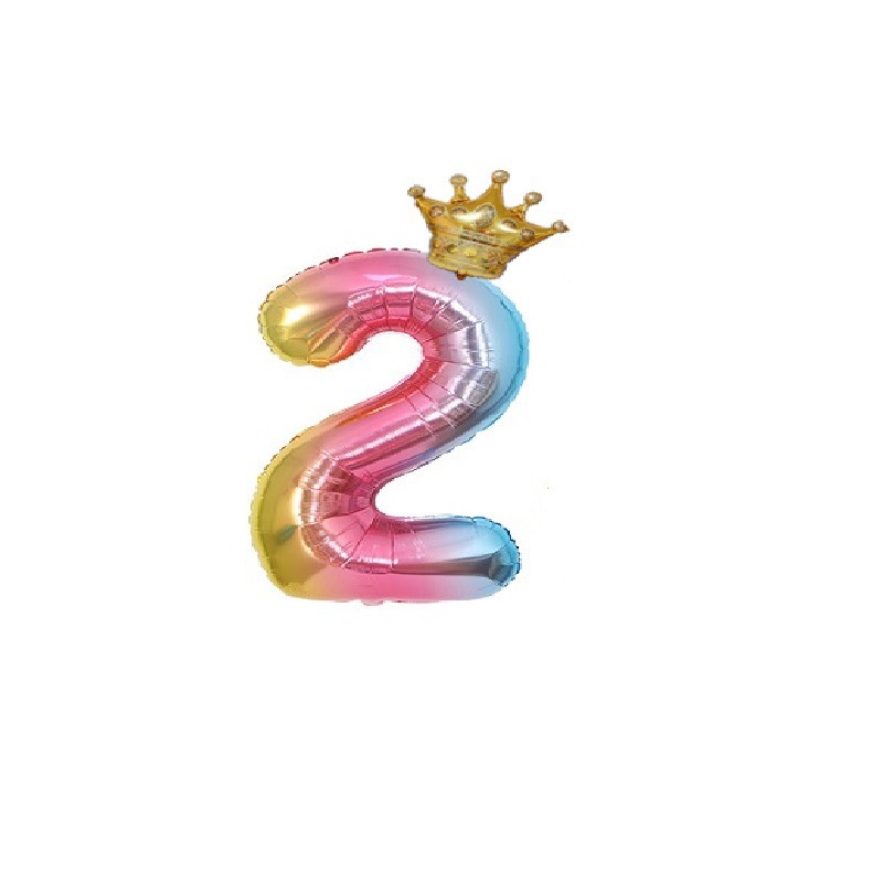 국경 간 32inch 그라디언트 색상 크라운 디지털 풍선 어린이 생일 장식 풍선 디지털 크라운 알루미늄 필름 풍선