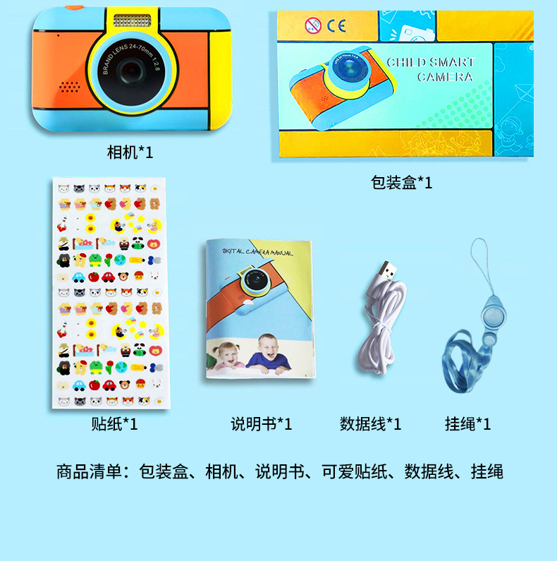 국경 간 어린이 카메라 전면 및 후면 더블 셀프 타이머 2.4 인치 HD 디스플레이 폭발 미니 카메라 인증스토어 가기