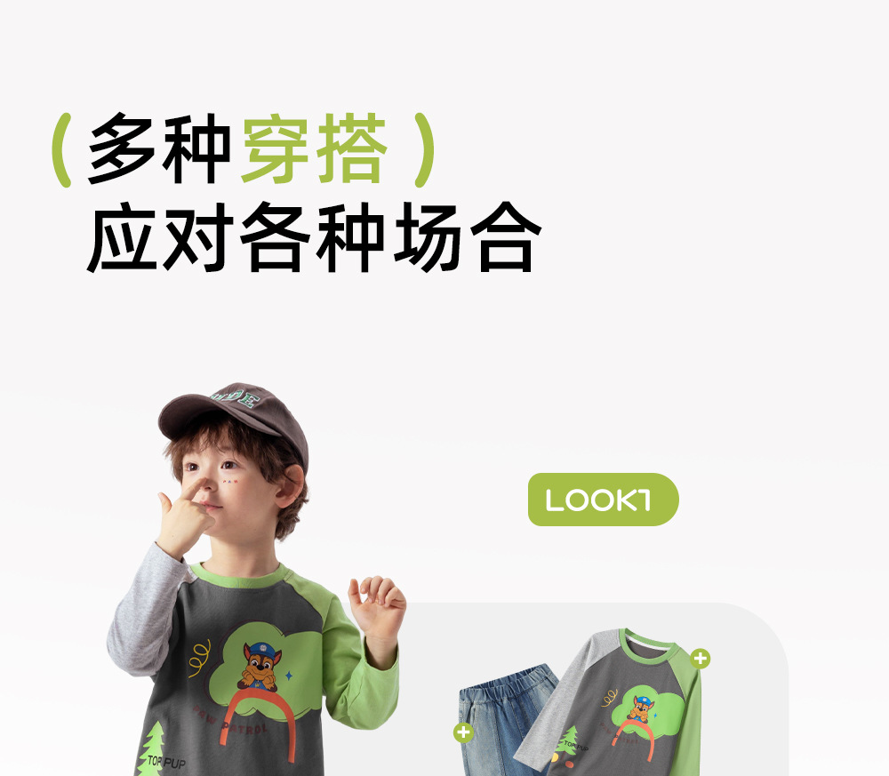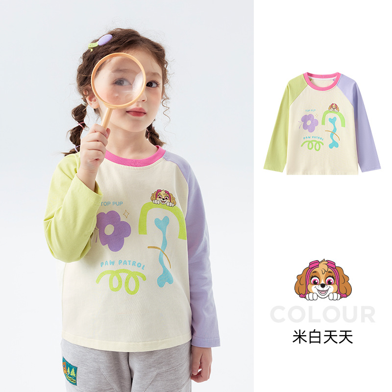 Wang Wang 팀 어린이 긴팔 티셔츠 봄과 가을 2025 새로운 어린이 면화 탑 봄 아기 옷스토어 가기