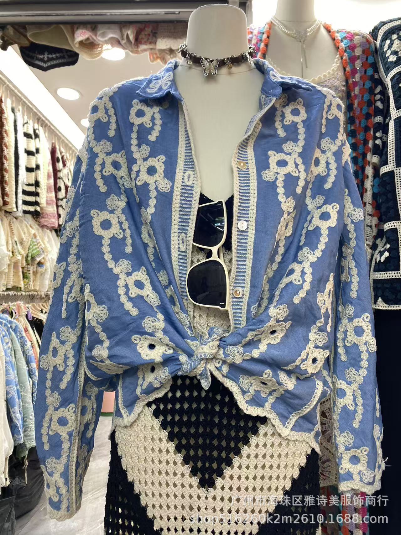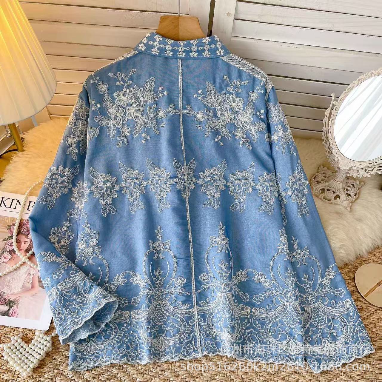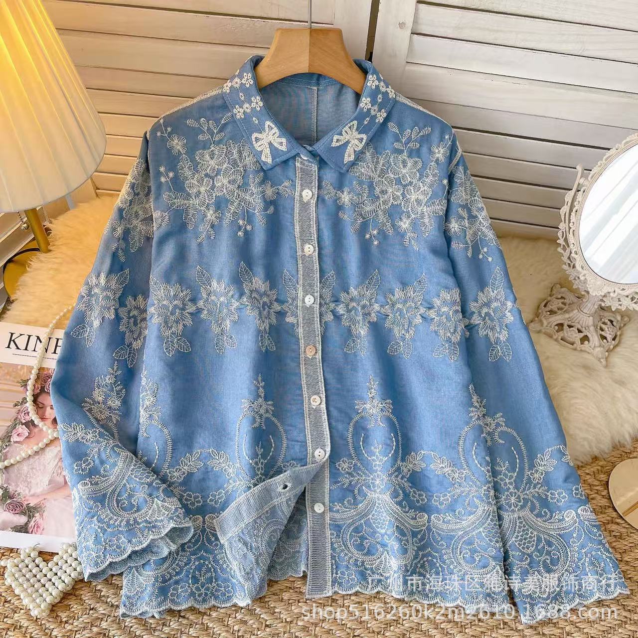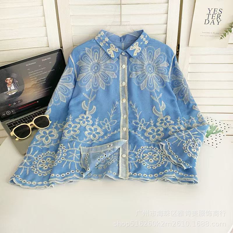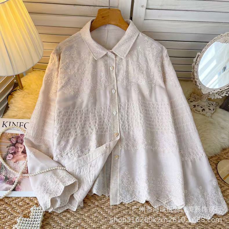 겨울 무거운 자수 할로우 크로 셰 뜨개질 긴팔 셔츠 여성의 새로운 스타일 올 매치 유행 루즈 싱글 브레스트 탑스토어 가기
