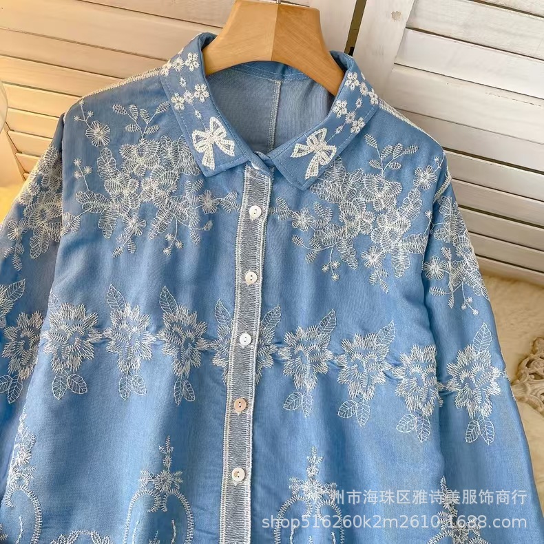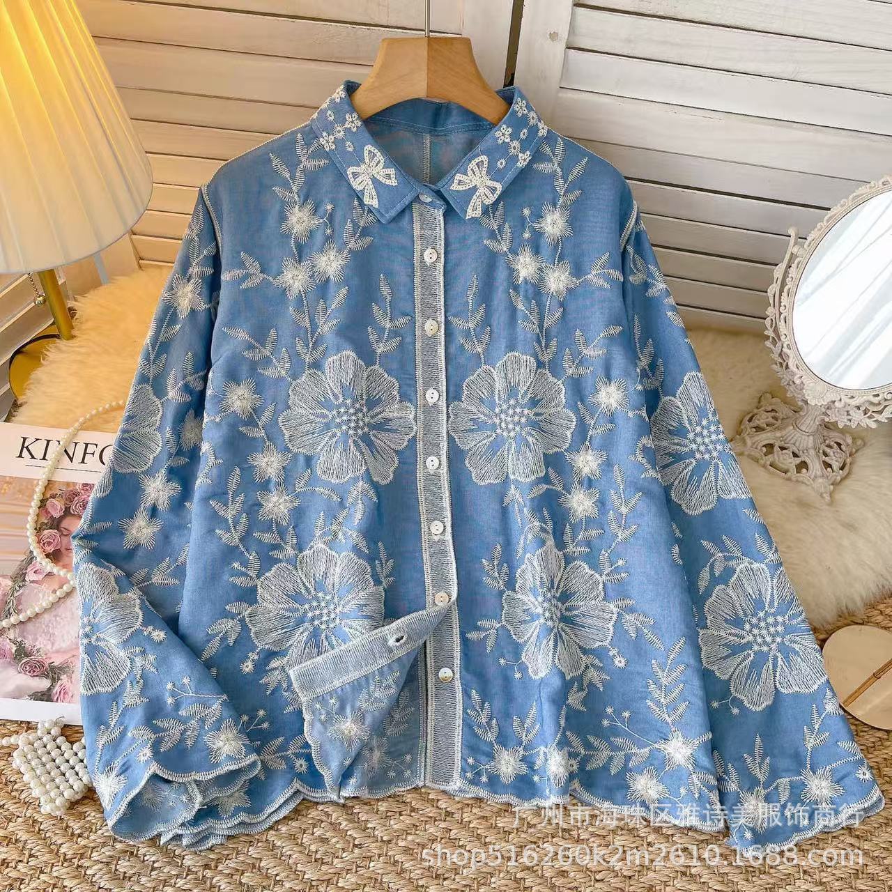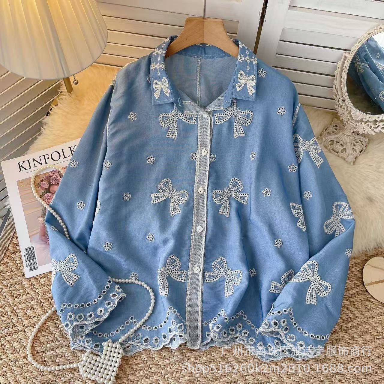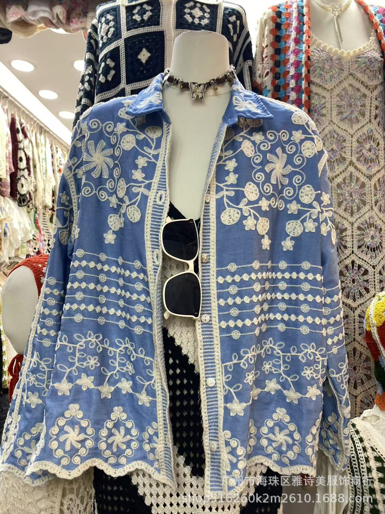 겨울 무거운 자수 할로우 크로 셰 뜨개질 긴팔 셔츠 여성의 새로운 스타일 올 매치 유행 루즈 싱글 브레스트 탑스토어 가기