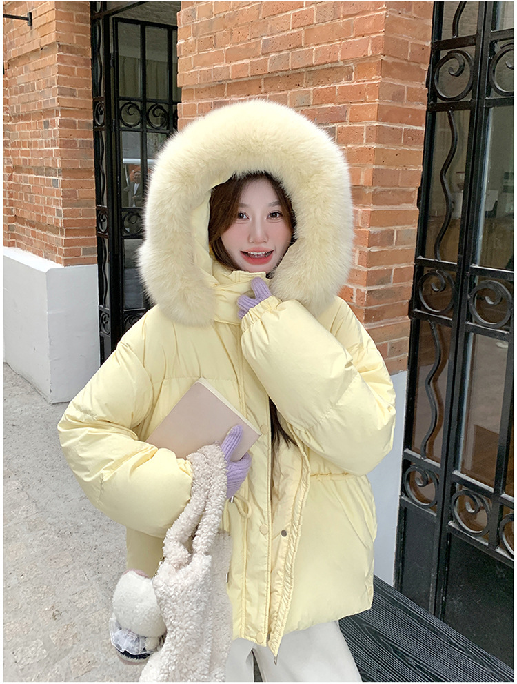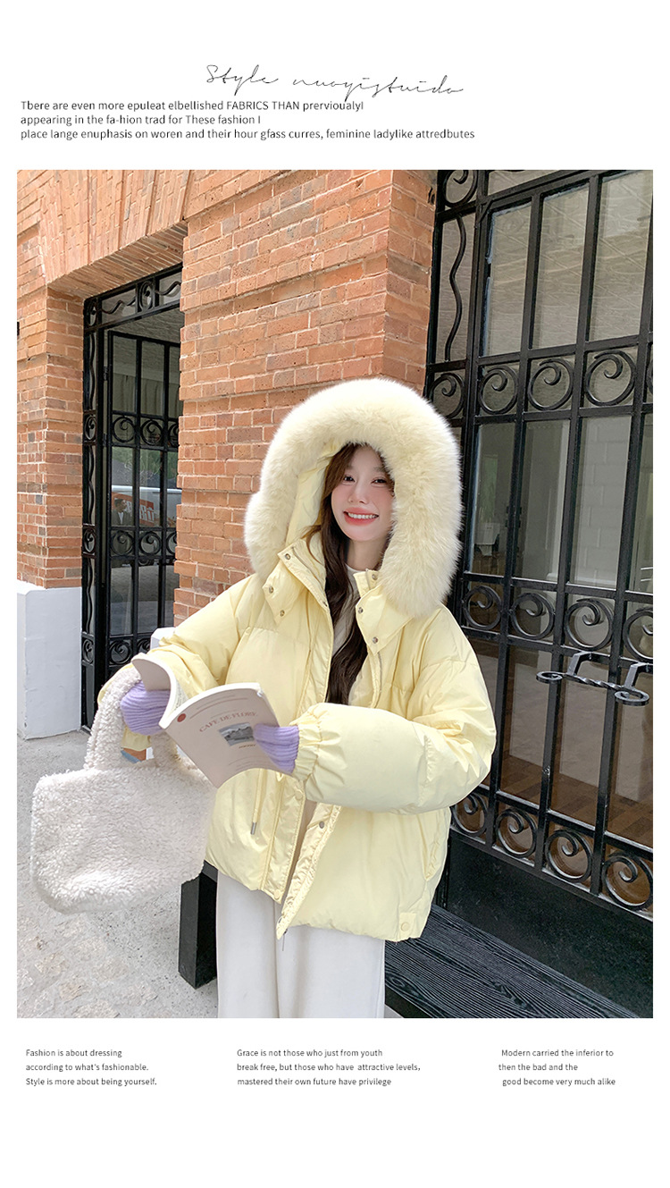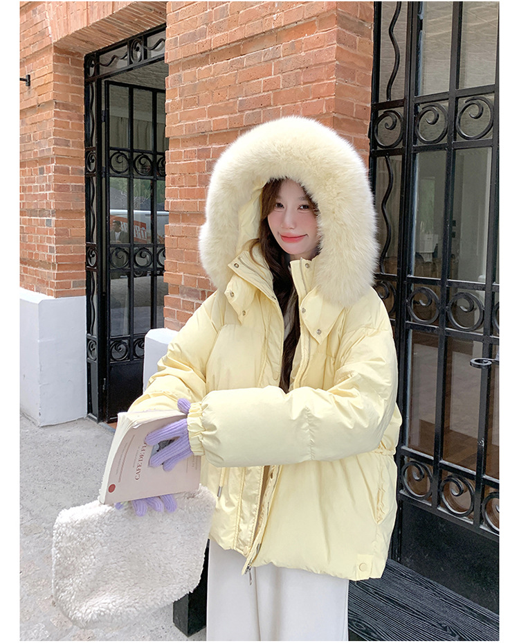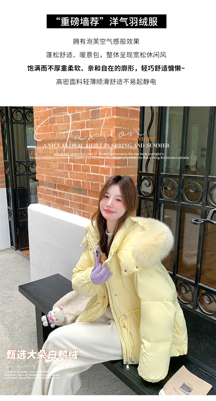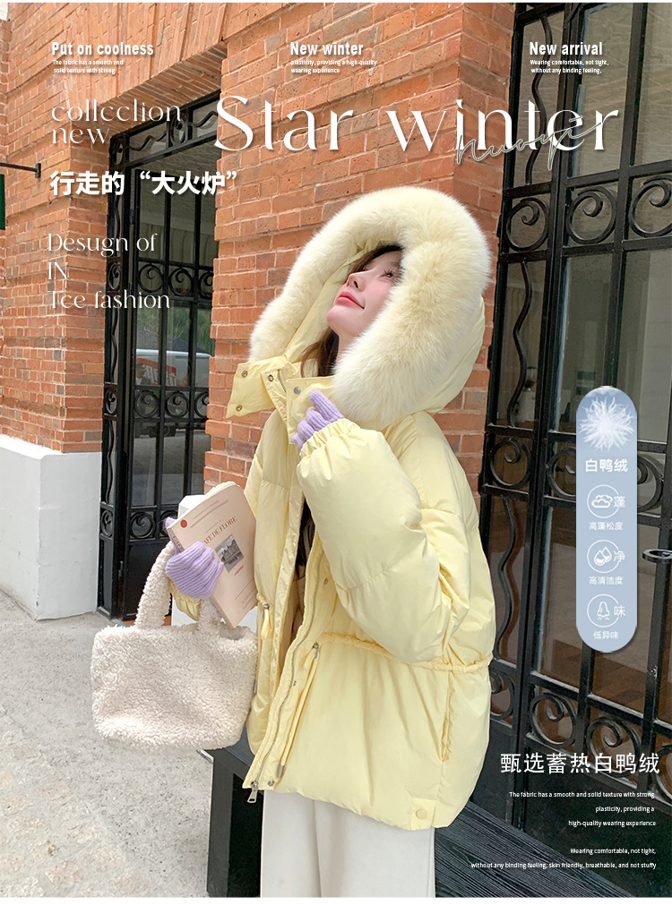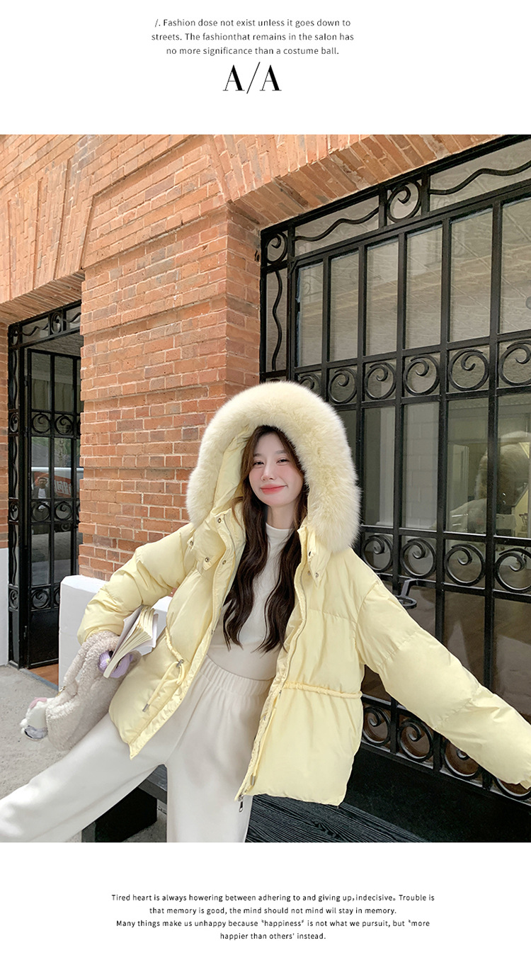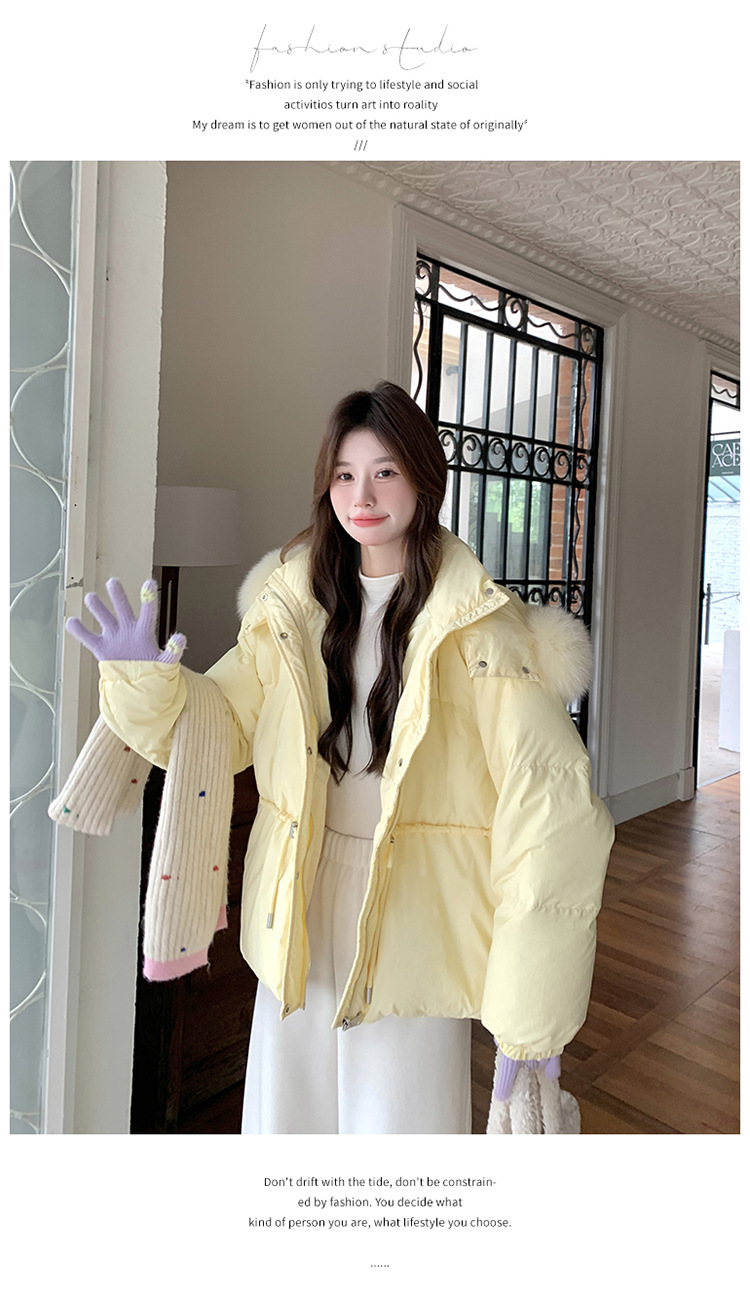 ! 구매자 쇼가 있습니다! 폭스 모피 우유 노란색 드로스트링 후드 다운 재킷 D810-P340K428스토어 가기
