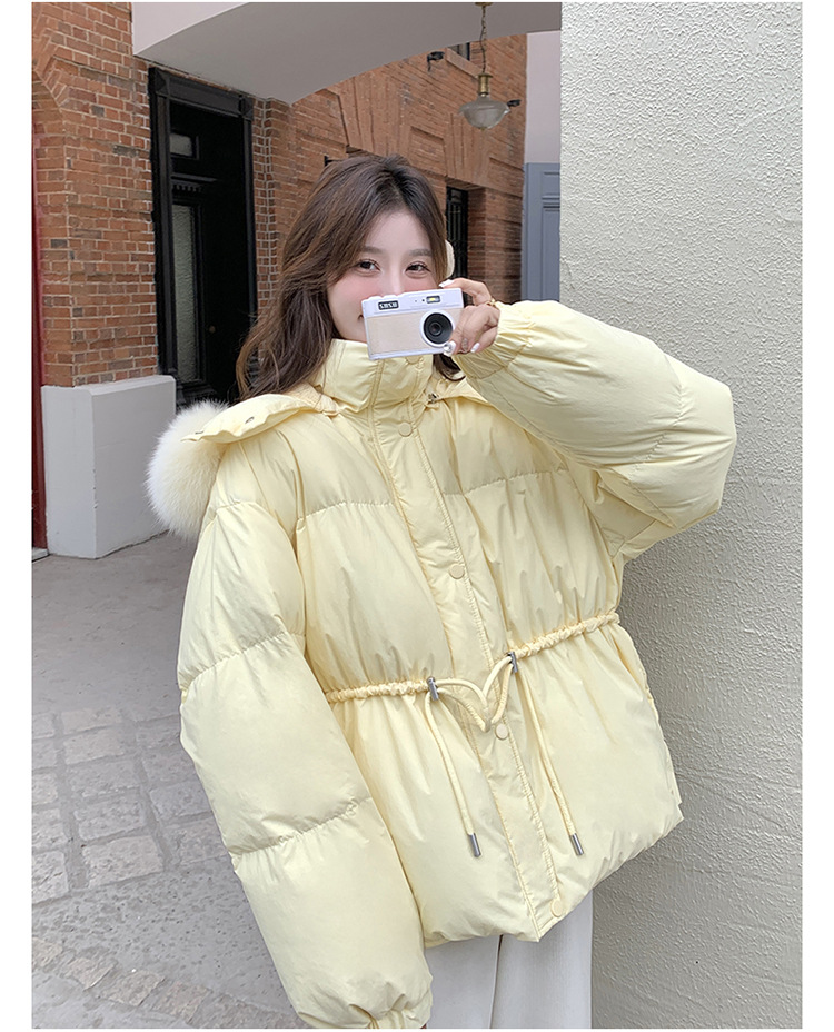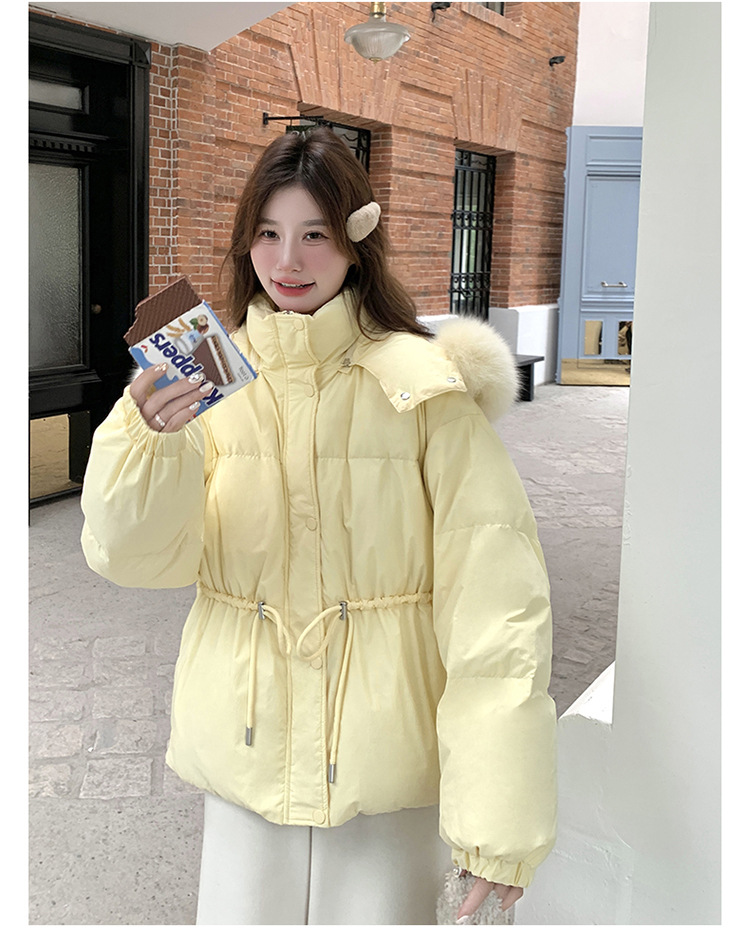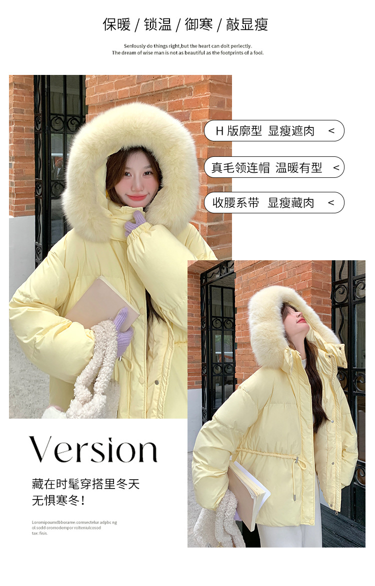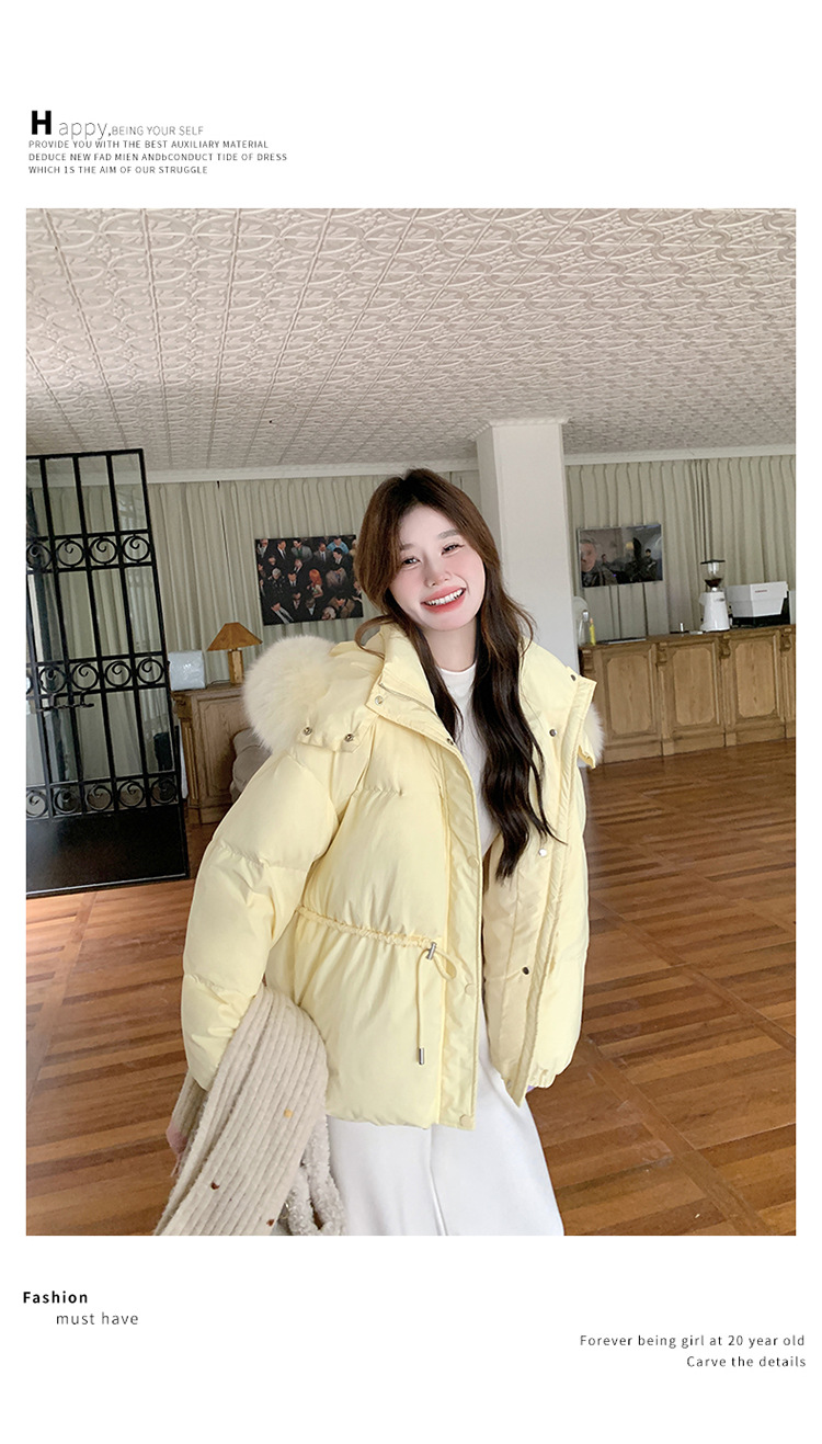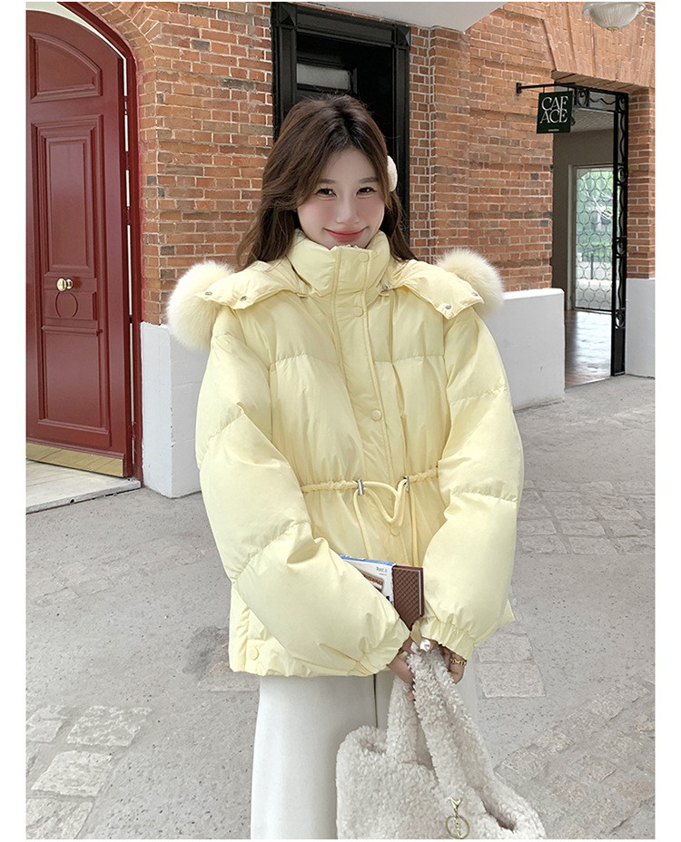 ! 구매자 쇼가 있습니다! 폭스 모피 우유 노란색 드로스트링 후드 다운 재킷 D810-P340K428