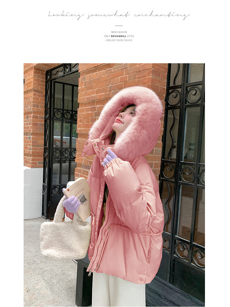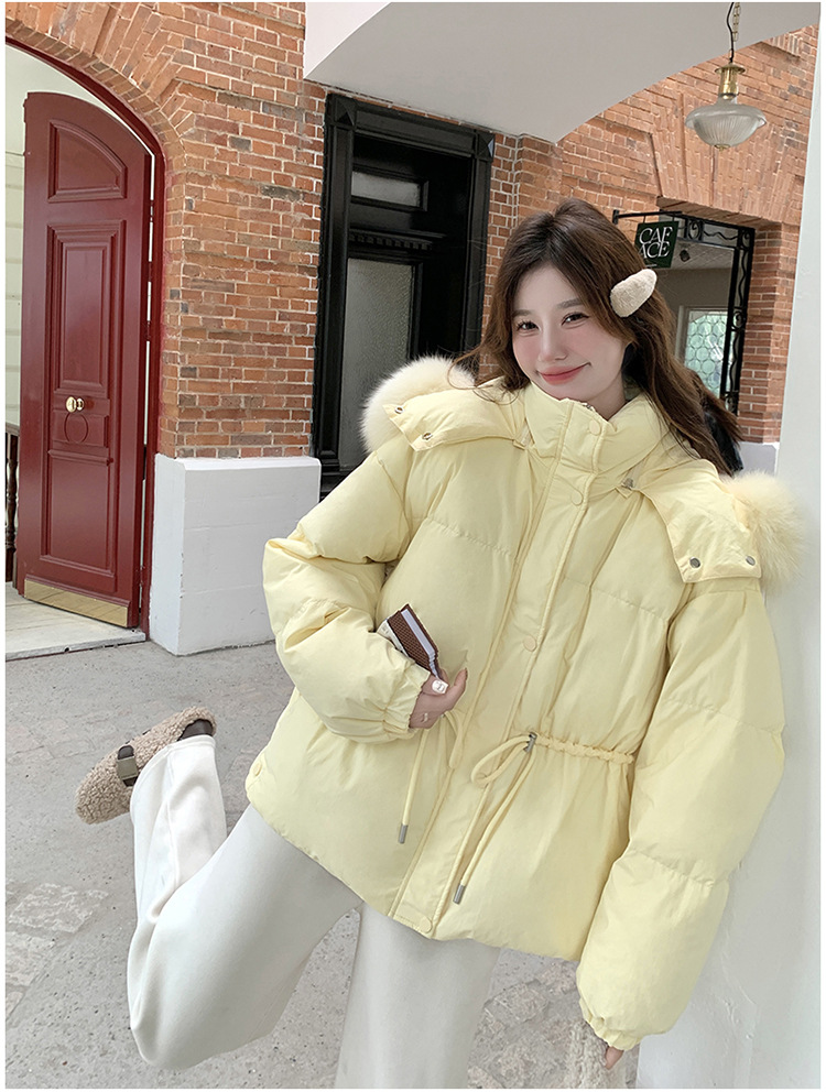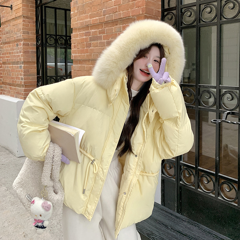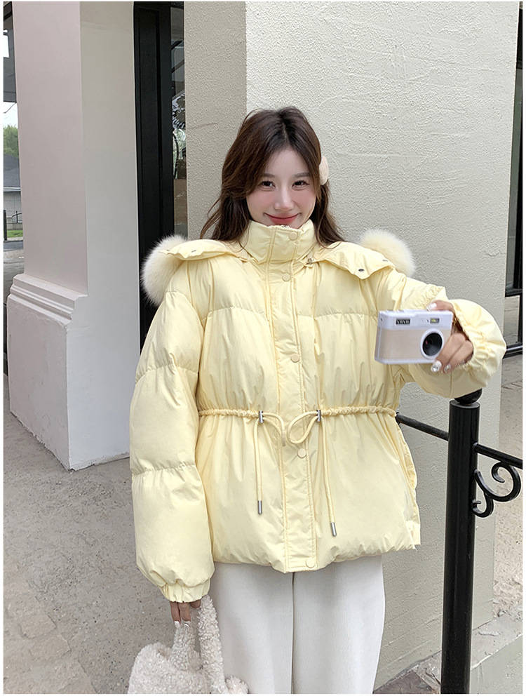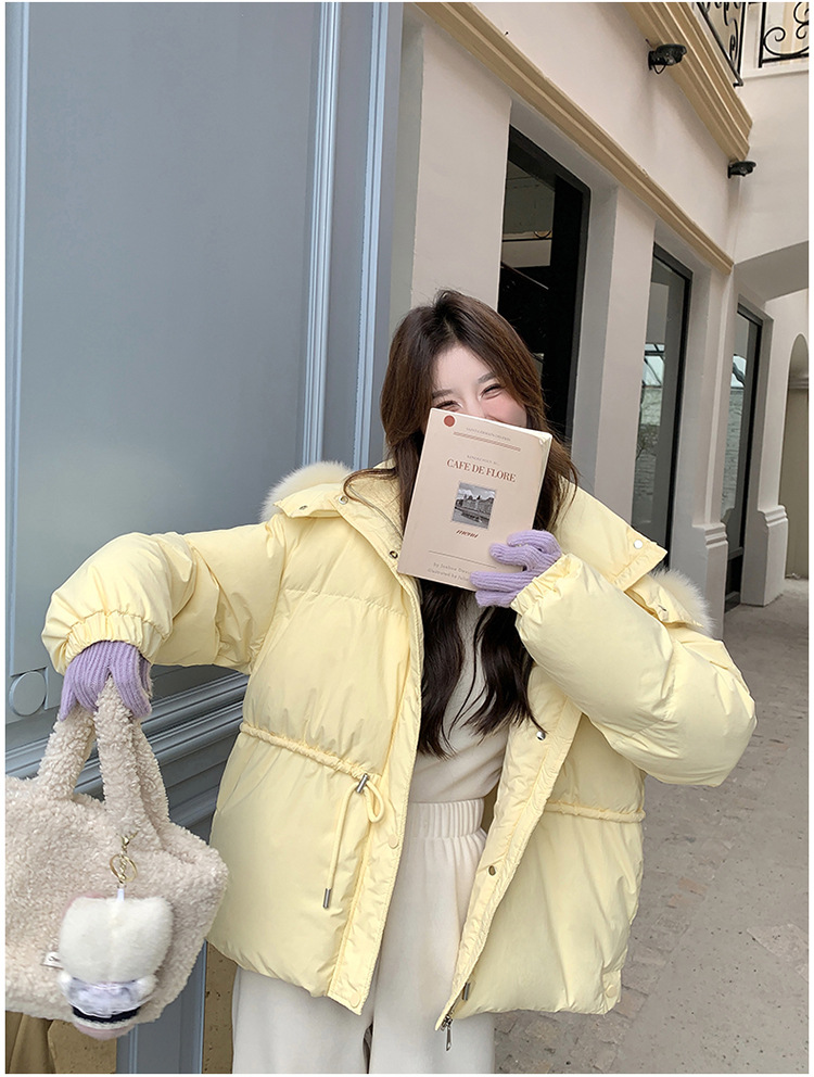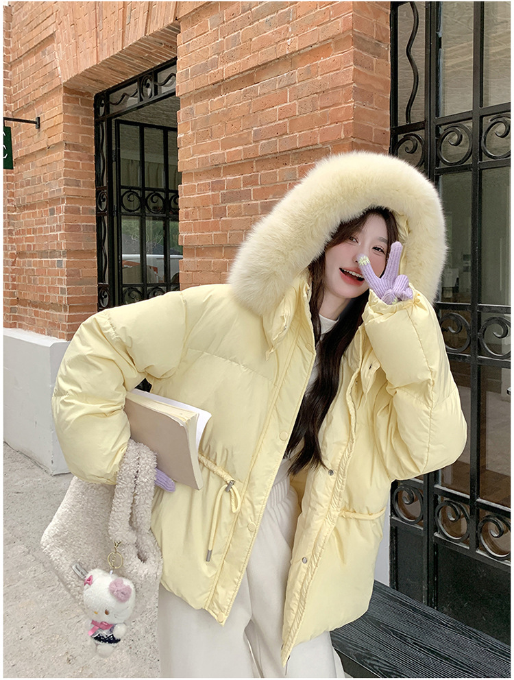! 구매자 쇼가 있습니다! 폭스 모피 우유 노란색 드로스트링 후드 다운 재킷 D810-P340K428