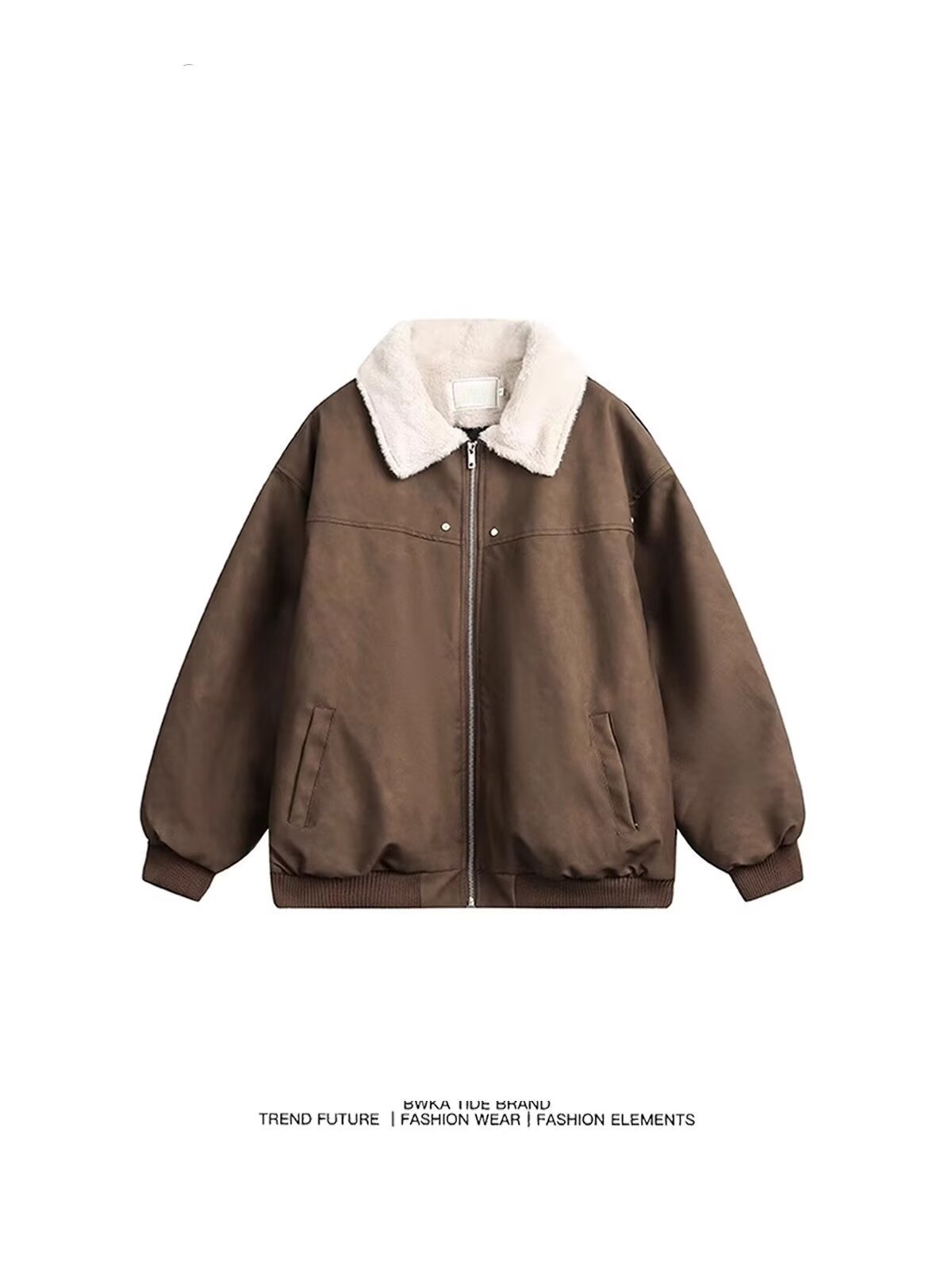 2024 아메리칸 타이-염료 코튼 코트 남자 겨울 기모 두꺼운 옷깃 레트로 패셔너블 느슨한 코튼 코트 재킷스토어 가기
