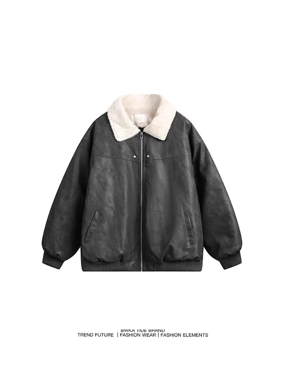 2024 아메리칸 타이-염료 코튼 코트 남자 겨울 기모 두꺼운 옷깃 레트로 패셔너블 느슨한 코튼 코트 재킷