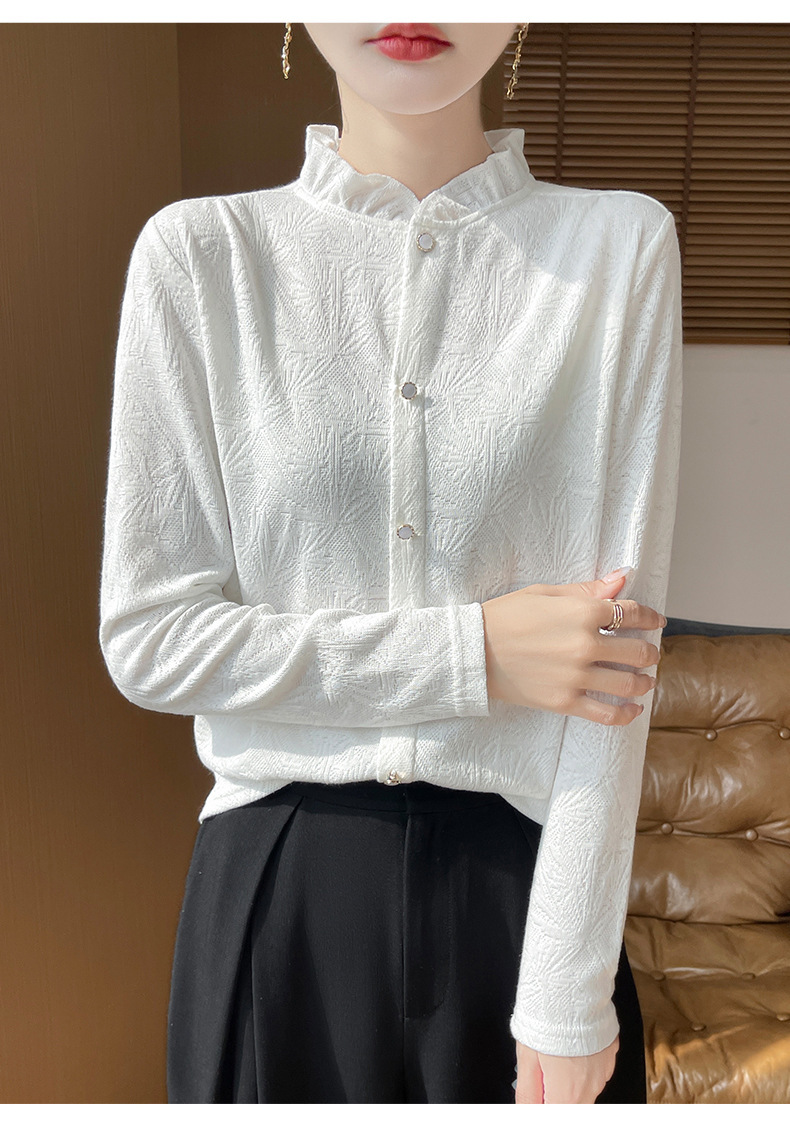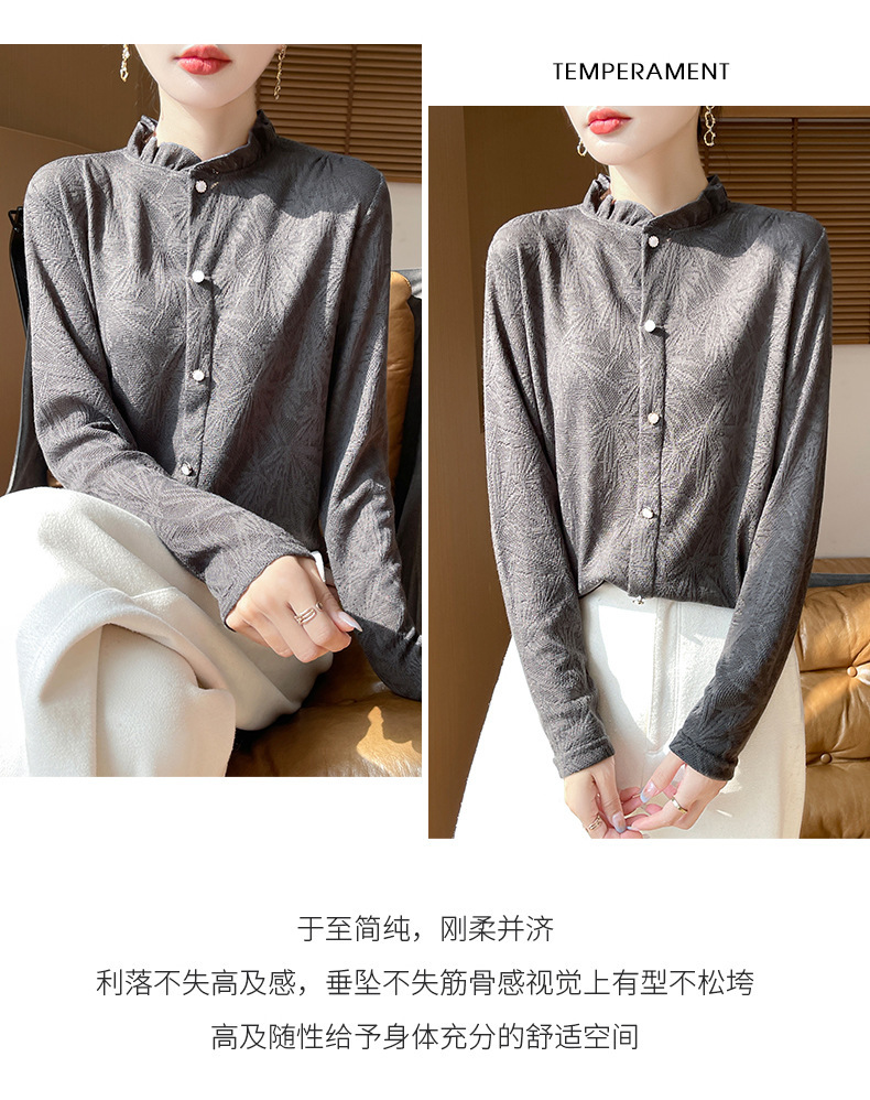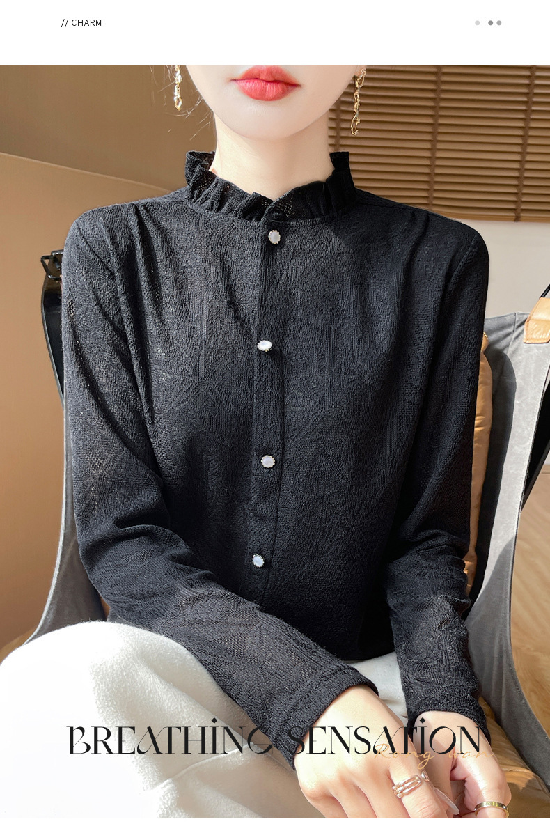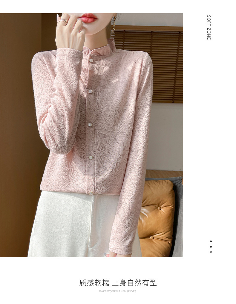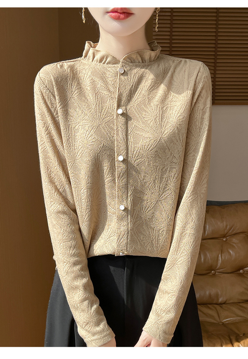 도매 새로운 프랑스 레이스 탑 여성의 기질 나무 칼라 스웨터 긴 소매 기본 셔츠 반 높은 칼라스토어 가기