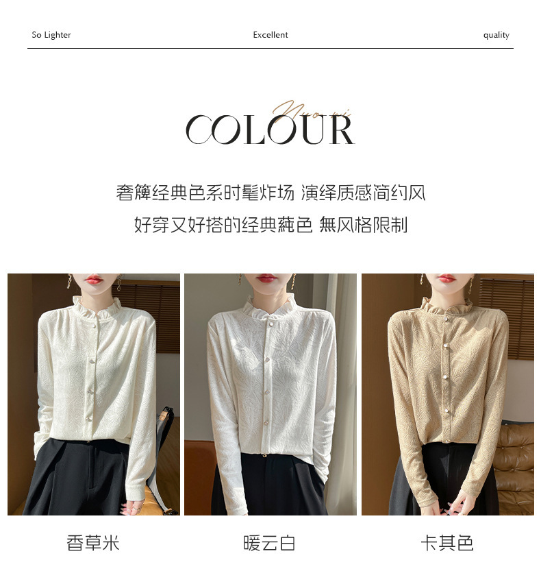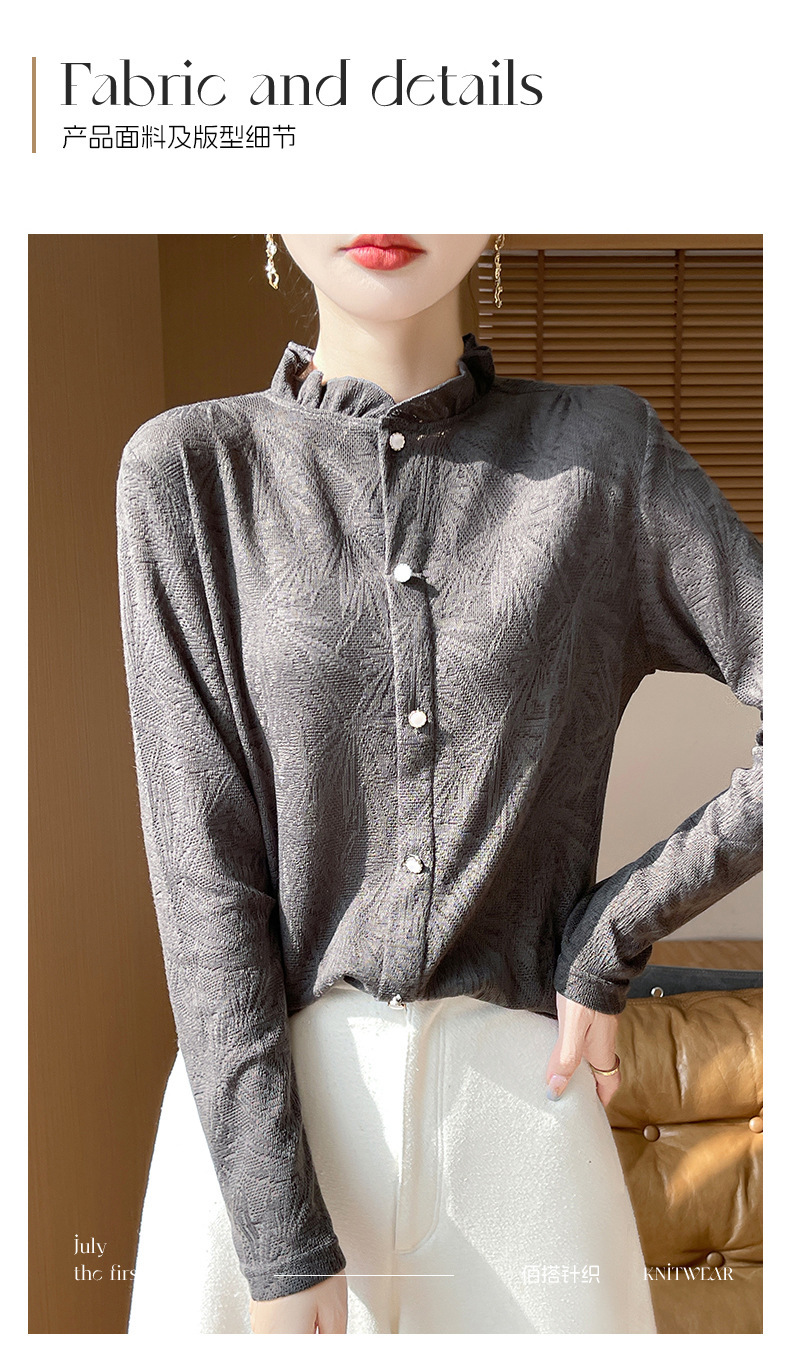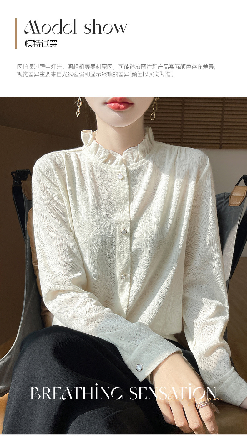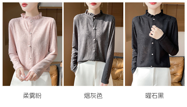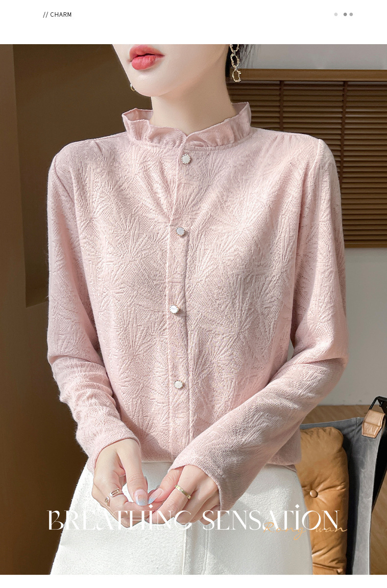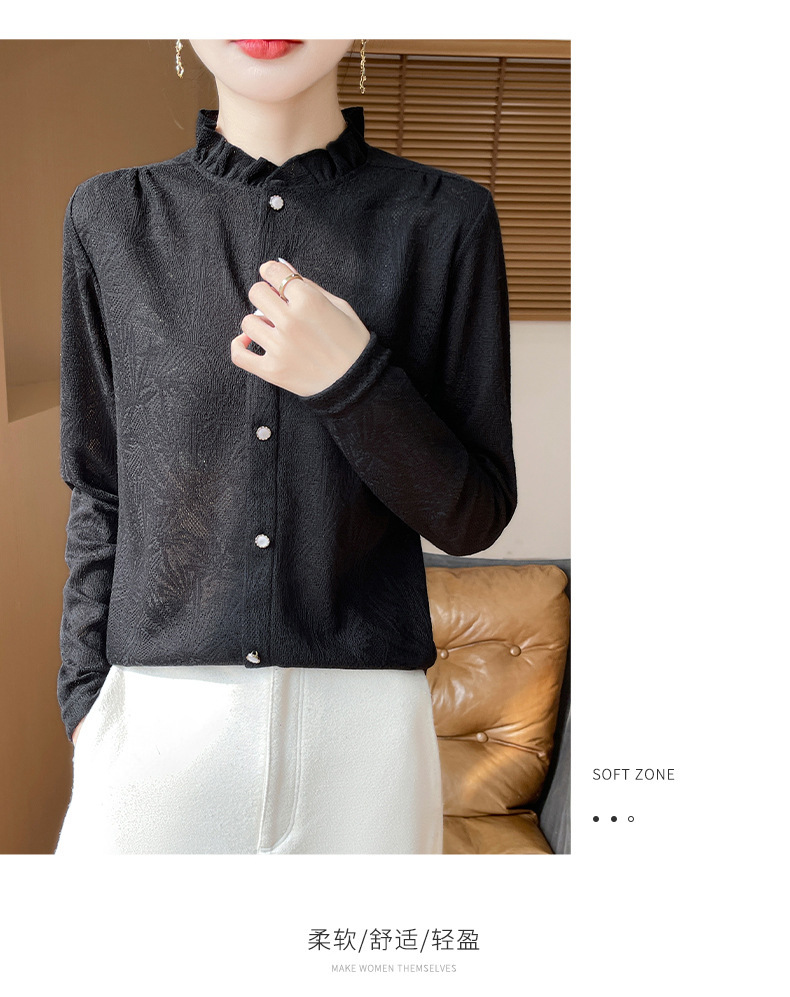 도매 새로운 프랑스 레이스 탑 여성의 기질 나무 칼라 스웨터 긴 소매 기본 셔츠 반 높은 칼라스토어 가기