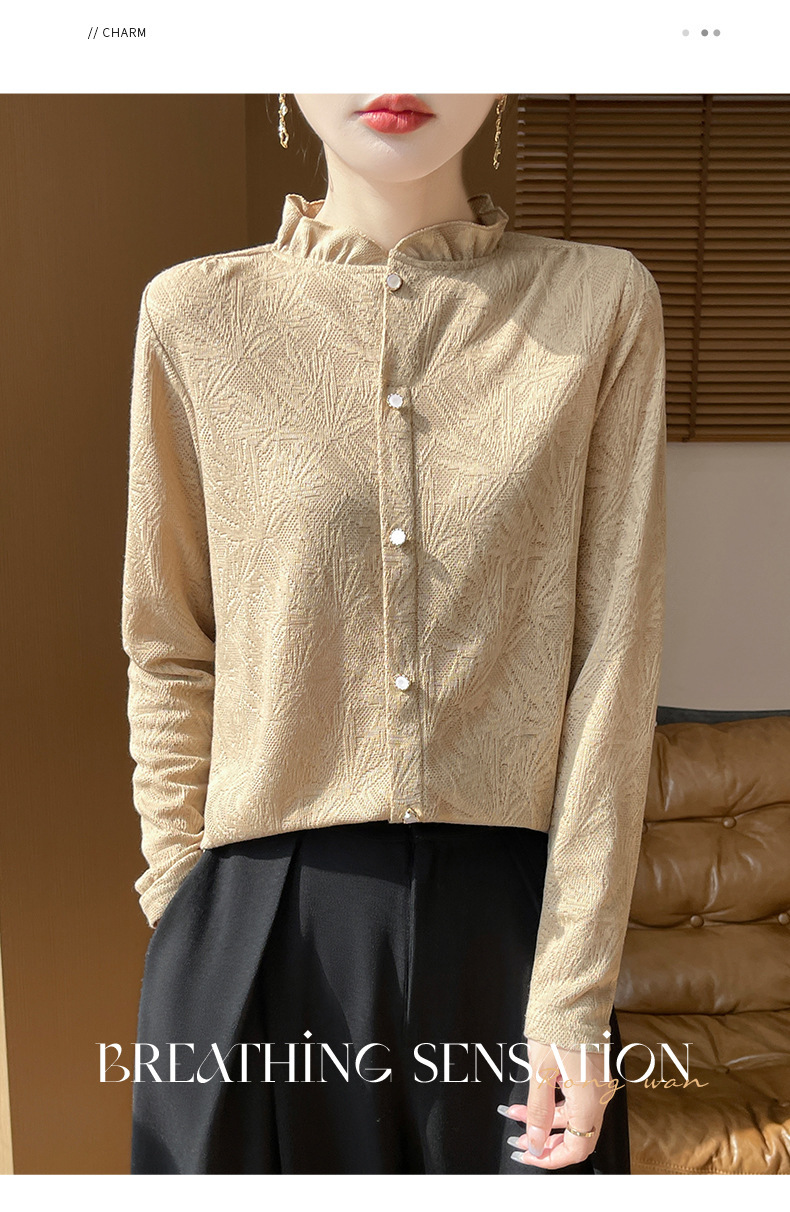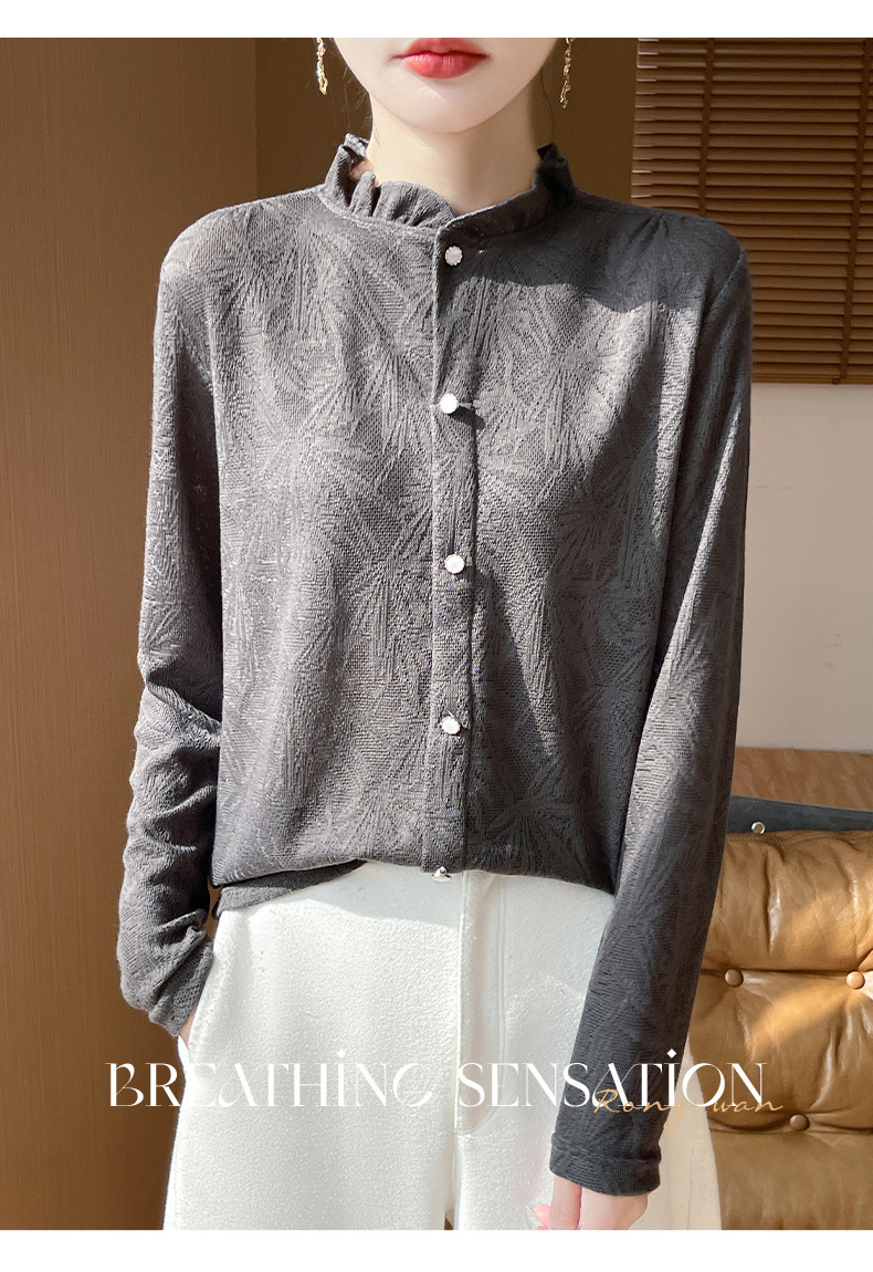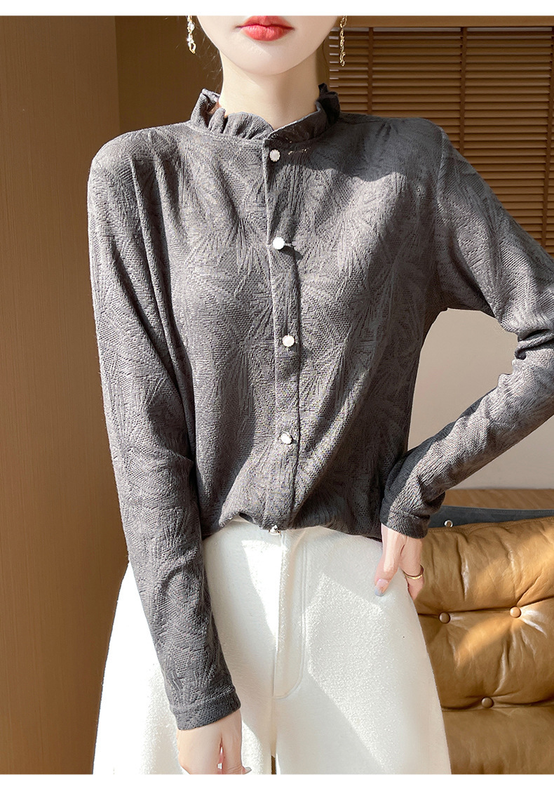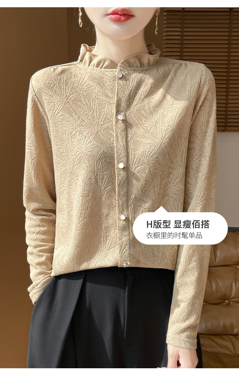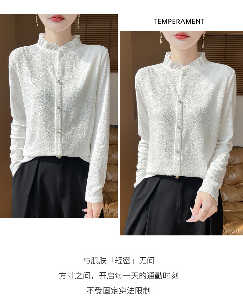 도매 새로운 프랑스 레이스 탑 여성의 기질 나무 칼라 스웨터 긴 소매 기본 셔츠 반 높은 칼라스토어 가기