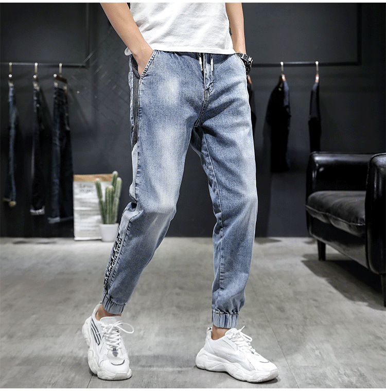 봄과 가을 청바지 남자 캐주얼 다리 2025 소년을위한 새로운 유행 올 매치 슬림 핏 발목 길이 바지스토어 가기
