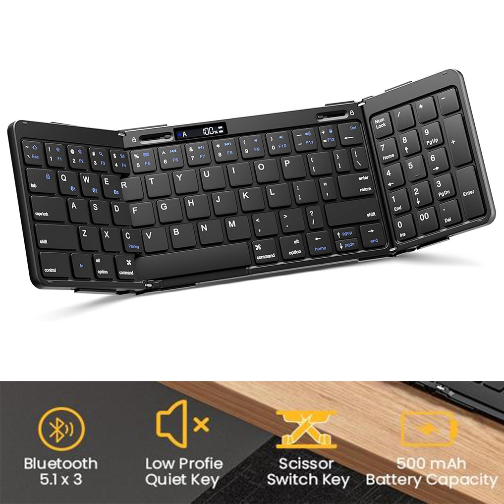 신제품 3 배 블루투스 터치 & 숫자 키보드 전원 디스플레이 알루미늄 합금 블루투스 키보드 음소거 사무실