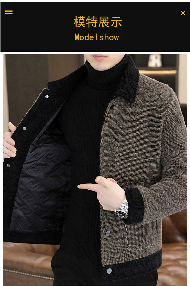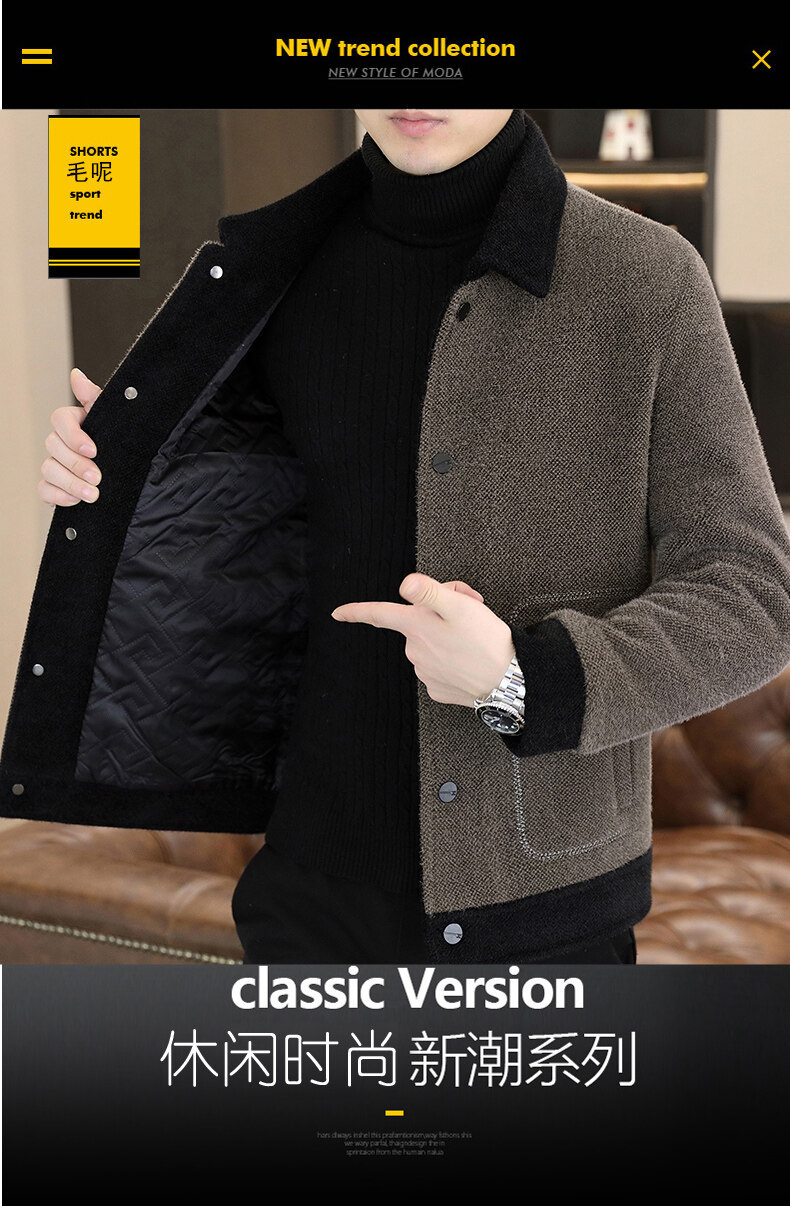 남성용 숏 코트 2025 가을 겨울 신상 트렌디한 플리스 안감 두꺼운 캐주얼 따뜻한 모직 재킷 남성복스토어 가기