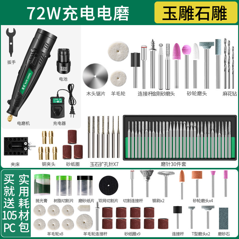 • 72W [충전 5단 속도 조절]: 목각 및 코어 조각 + 105 액세서리