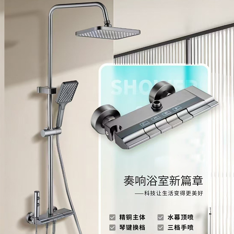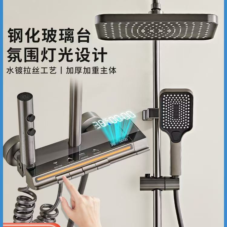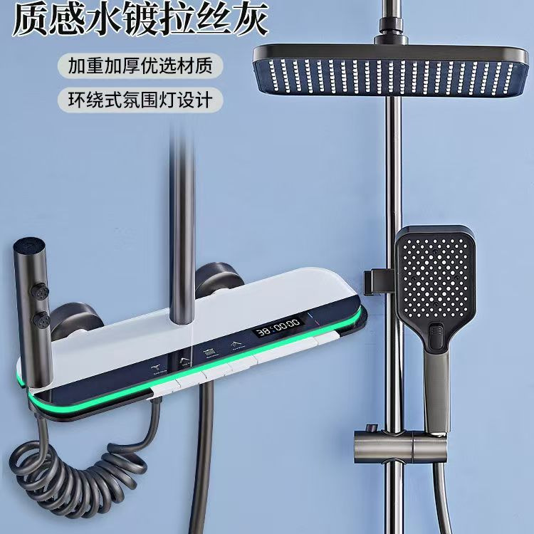 디지털 디스플레이 샤워 샤워 세트 라이트 건 그레이 샤워 가구 일정한 온도 압력 샤워 헤드 욕실 비