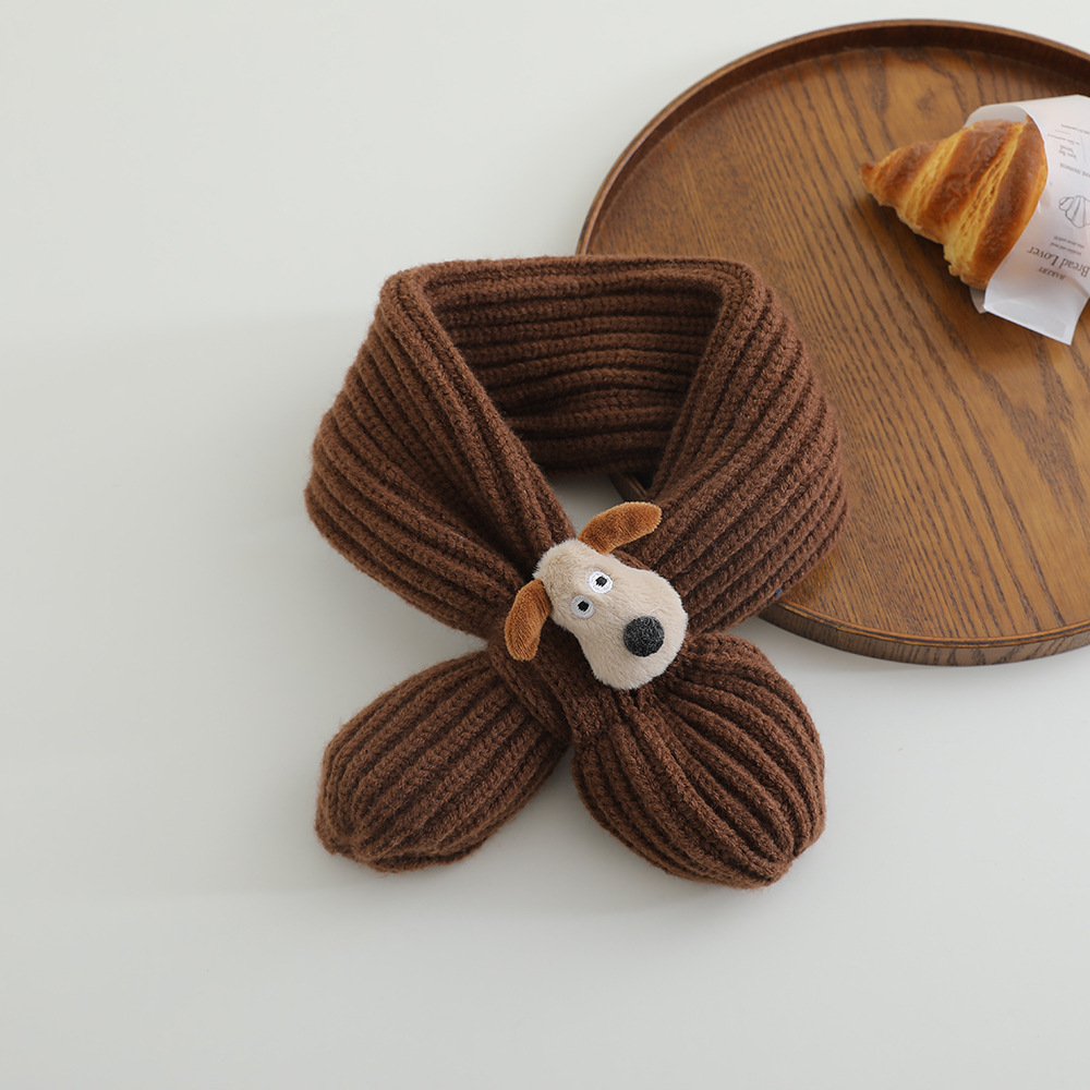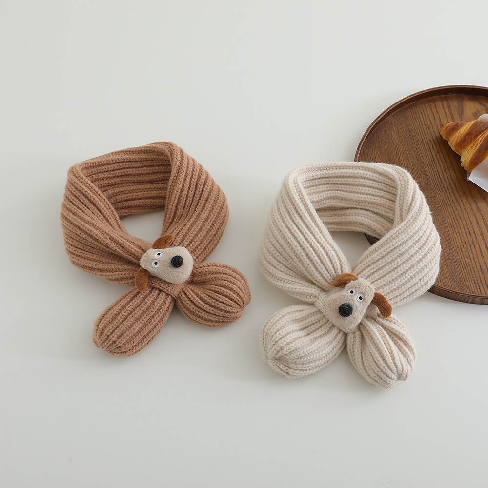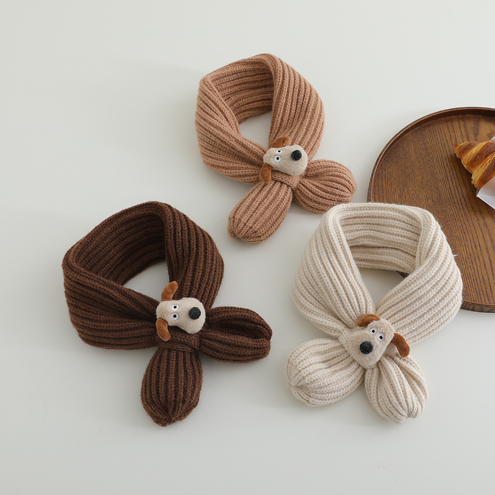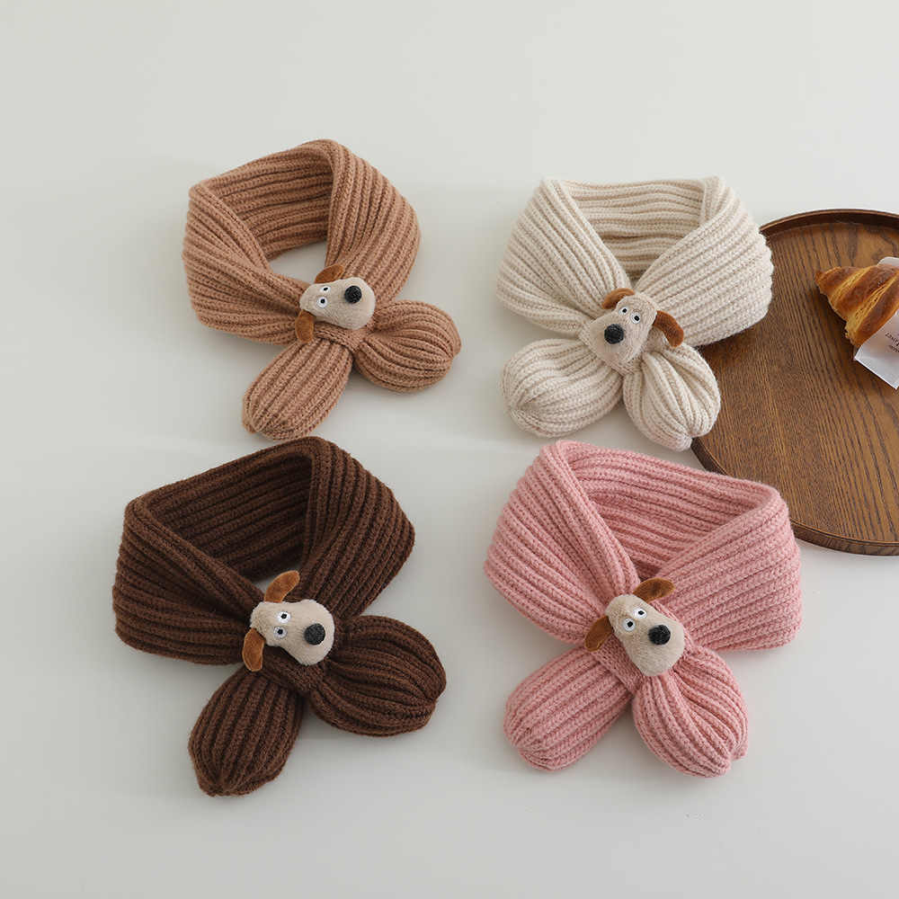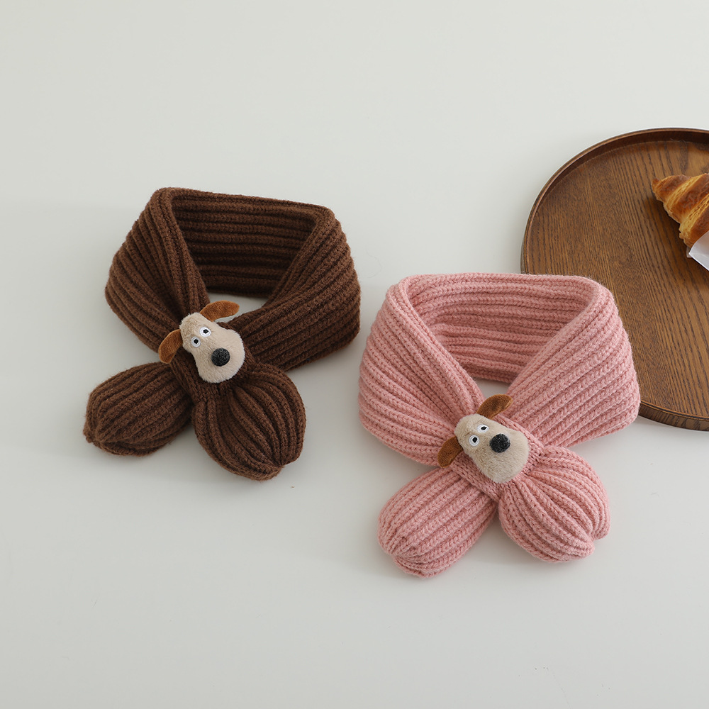 어린이 스카프 겨울 귀여운 만화 강아지 목 따뜻한 니트 목 아기 크로스 울 목 소매스토어 가기