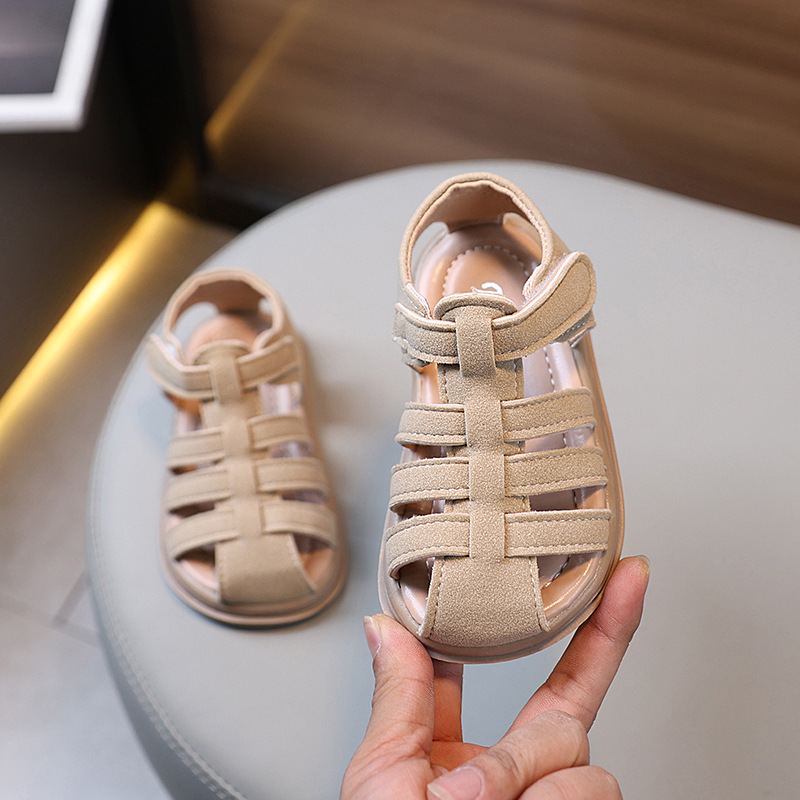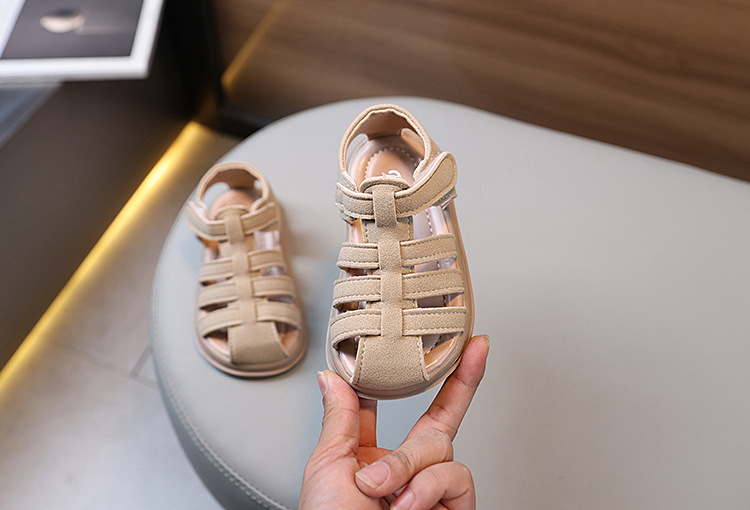 어린이 샌들 여름 2024 새로운 2-6 세 아기 소년과 소녀 Baotou 소프트 하단 미끄럼 방지 샌들 비치 슈즈