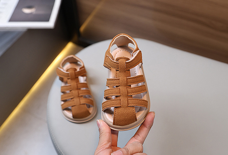 어린이 샌들 여름 2024 새로운 2-6 세 아기 소년과 소녀 Baotou 소프트 하단 미끄럼 방지 샌들 비치 슈즈스토어 가기