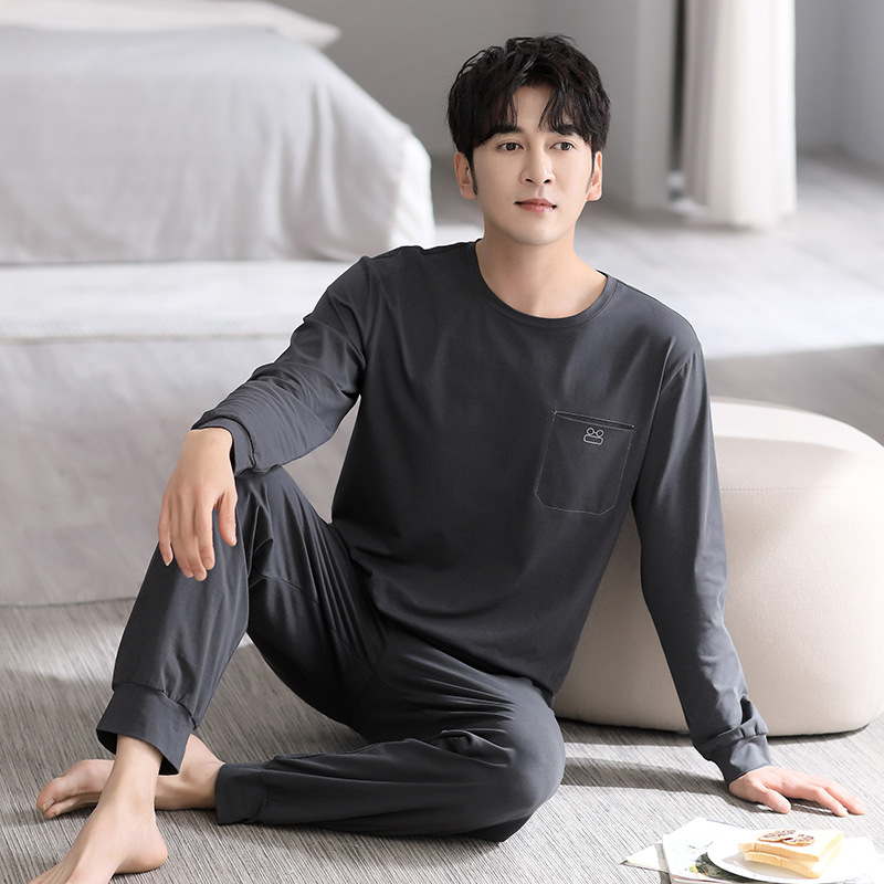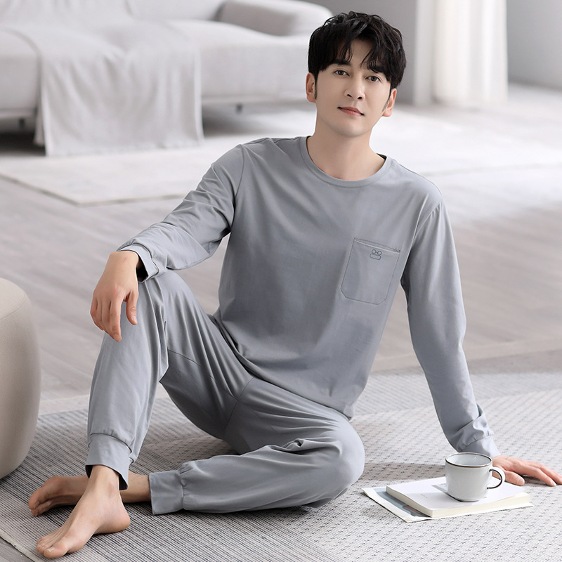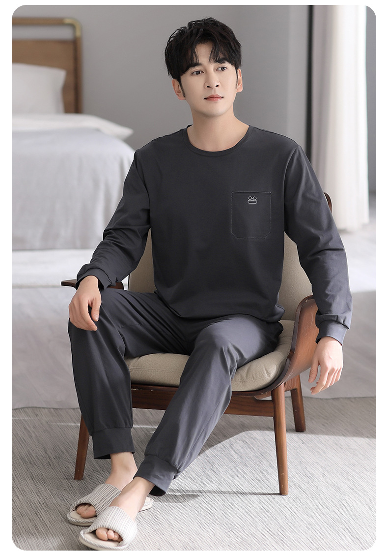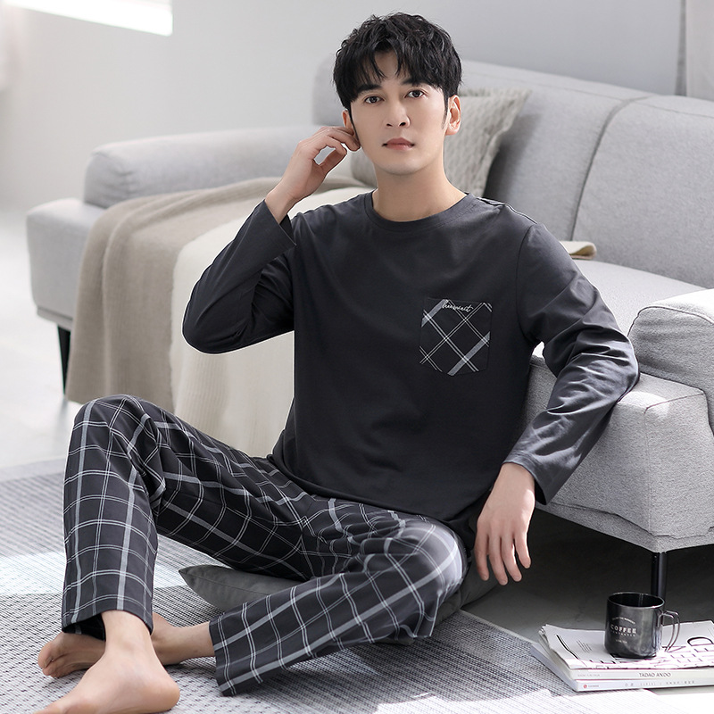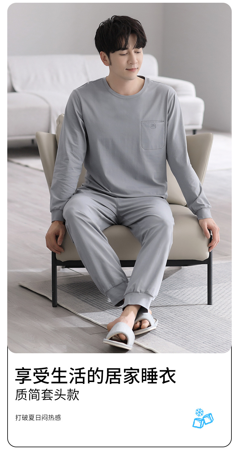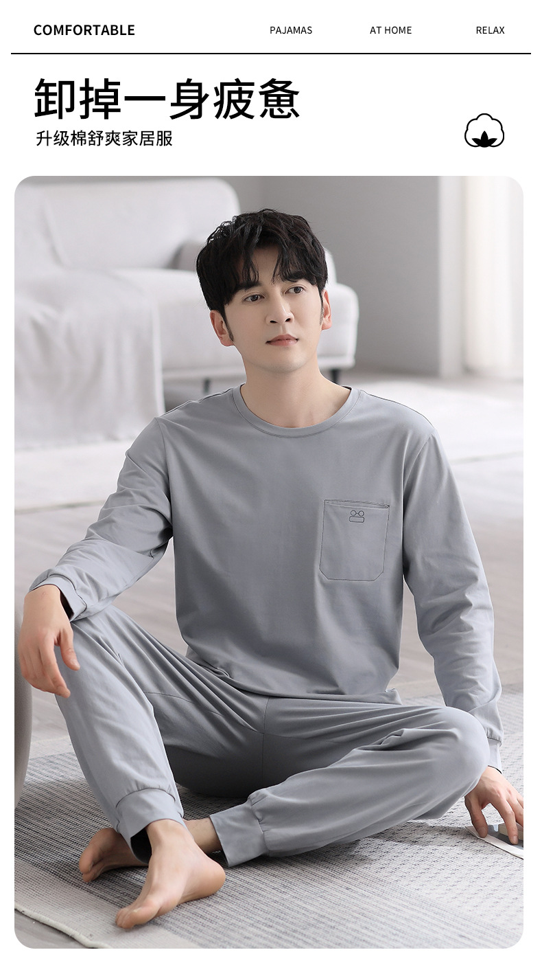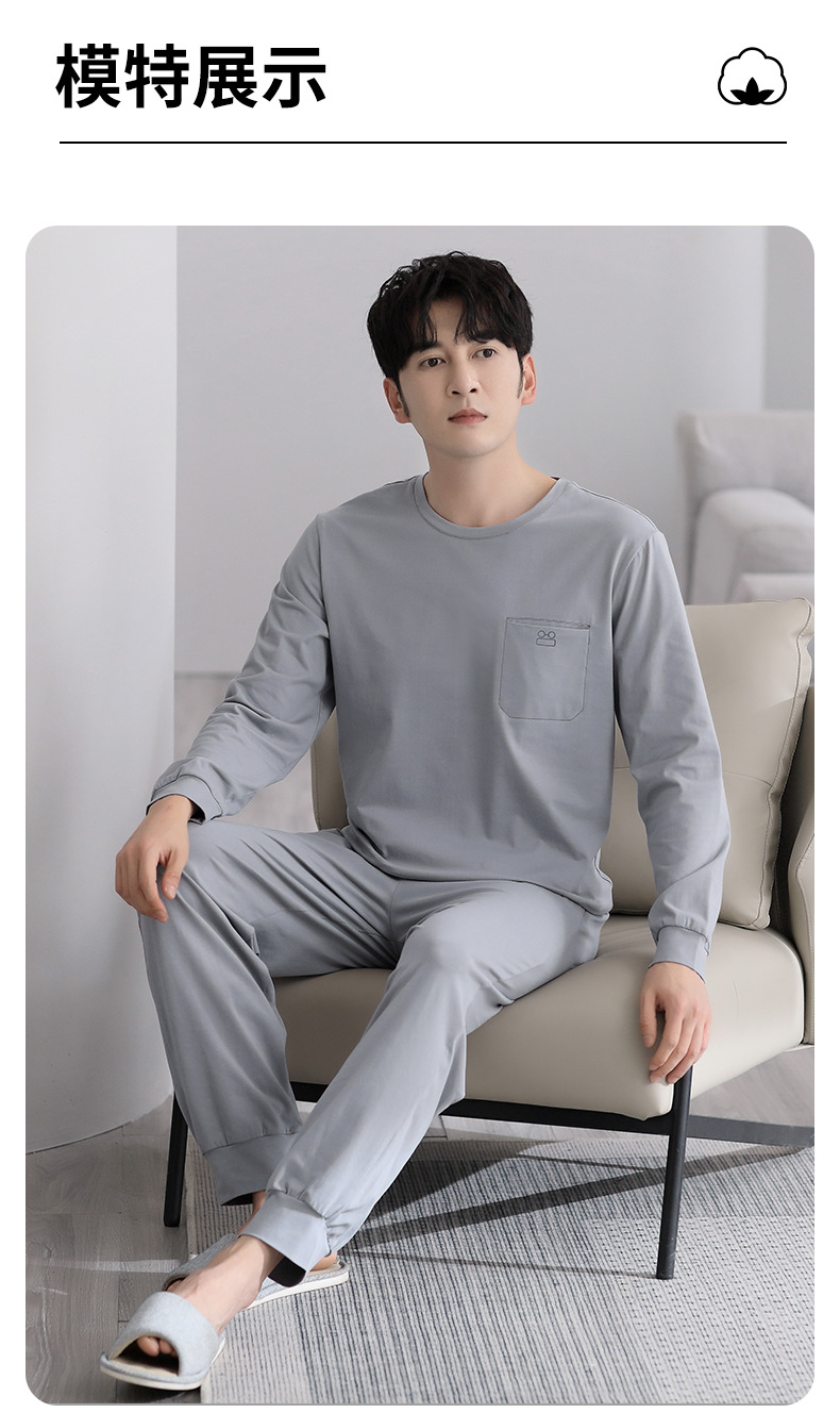 잠옷 남성용 순면 홈 의류 남성용 캐주얼 잠옷 세트 순수한면 단순 캐주얼 봄과 가을 고급 잠옷스토어 가기