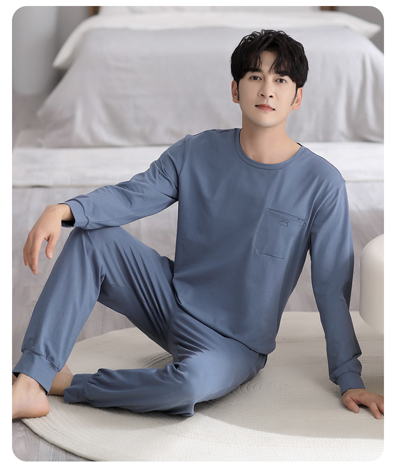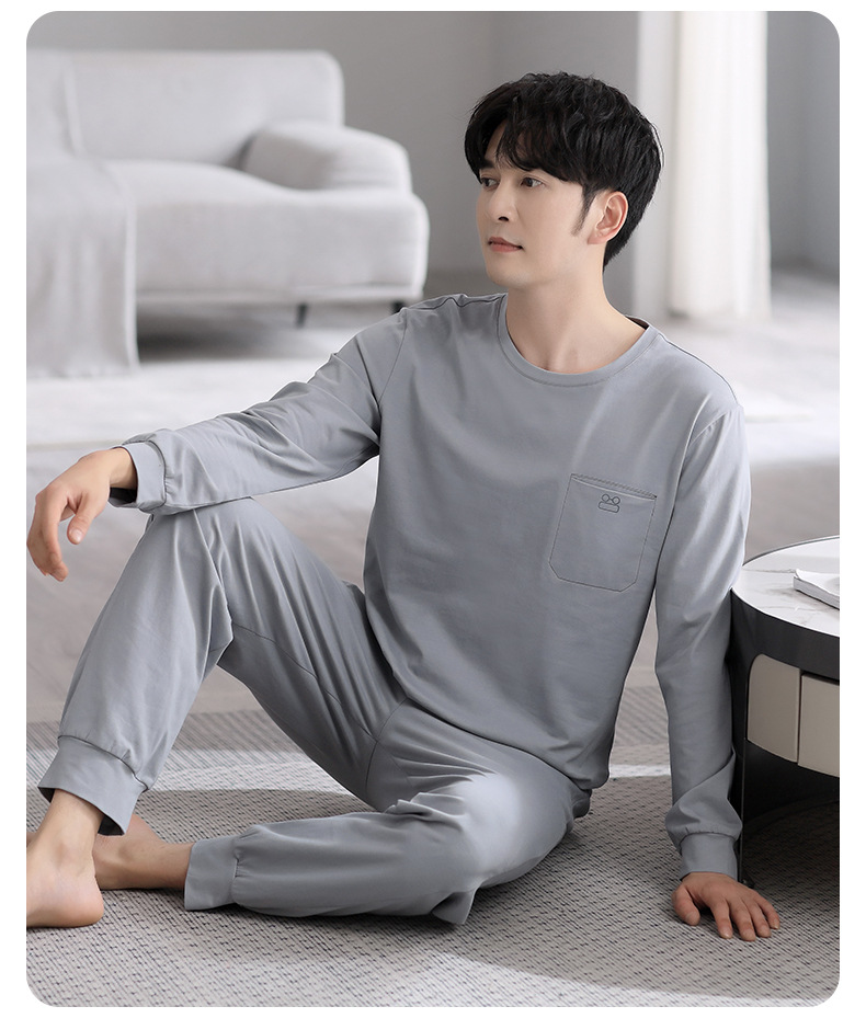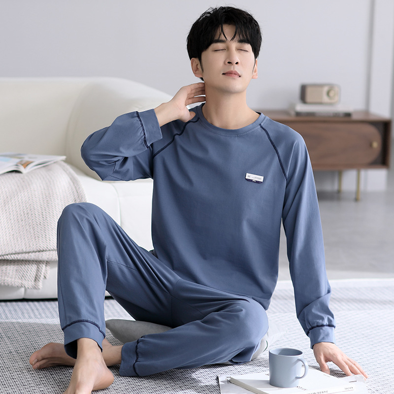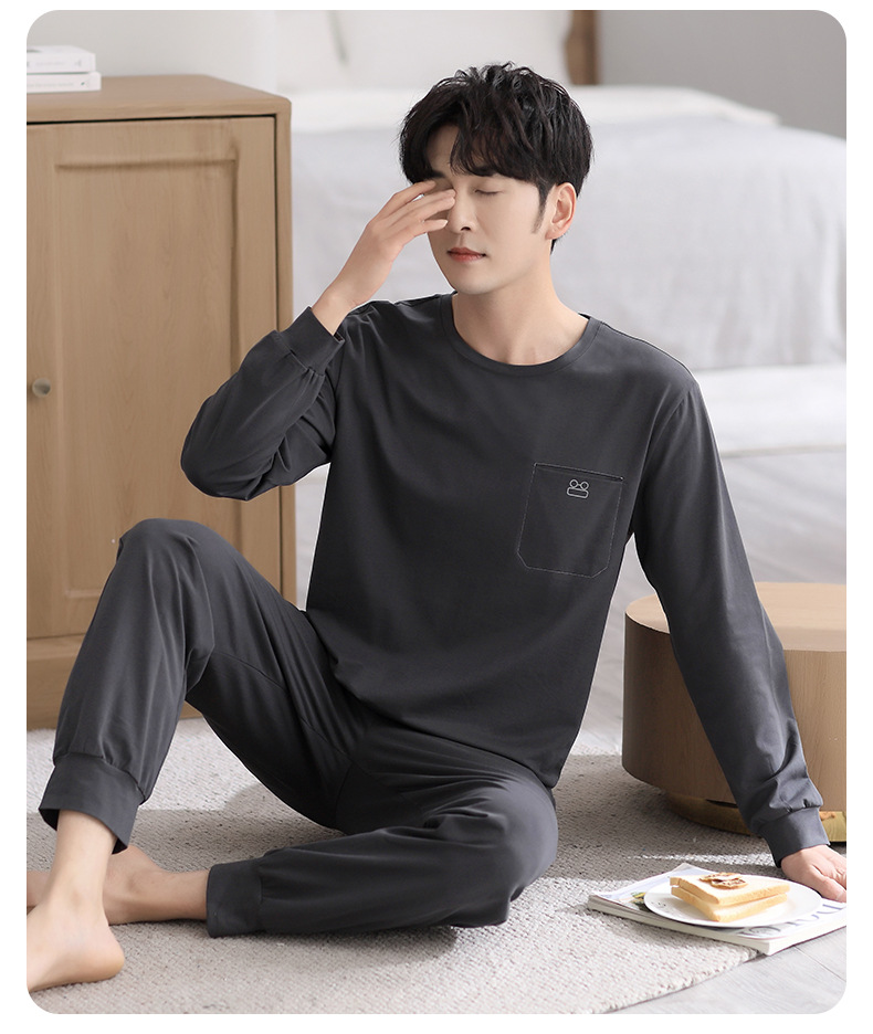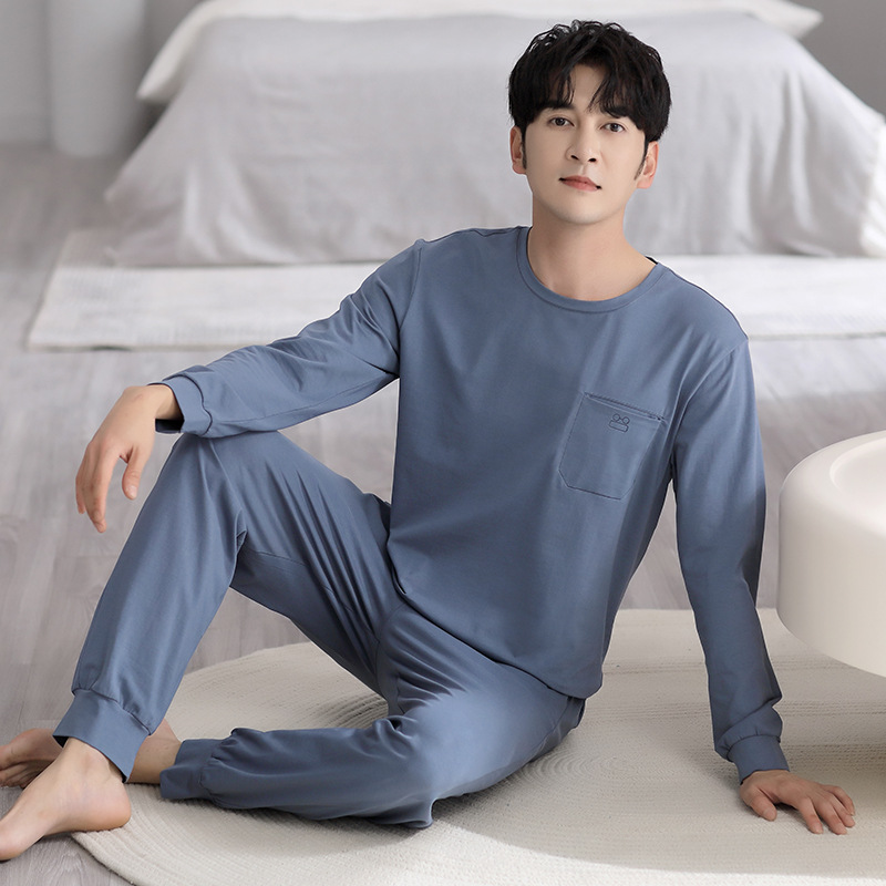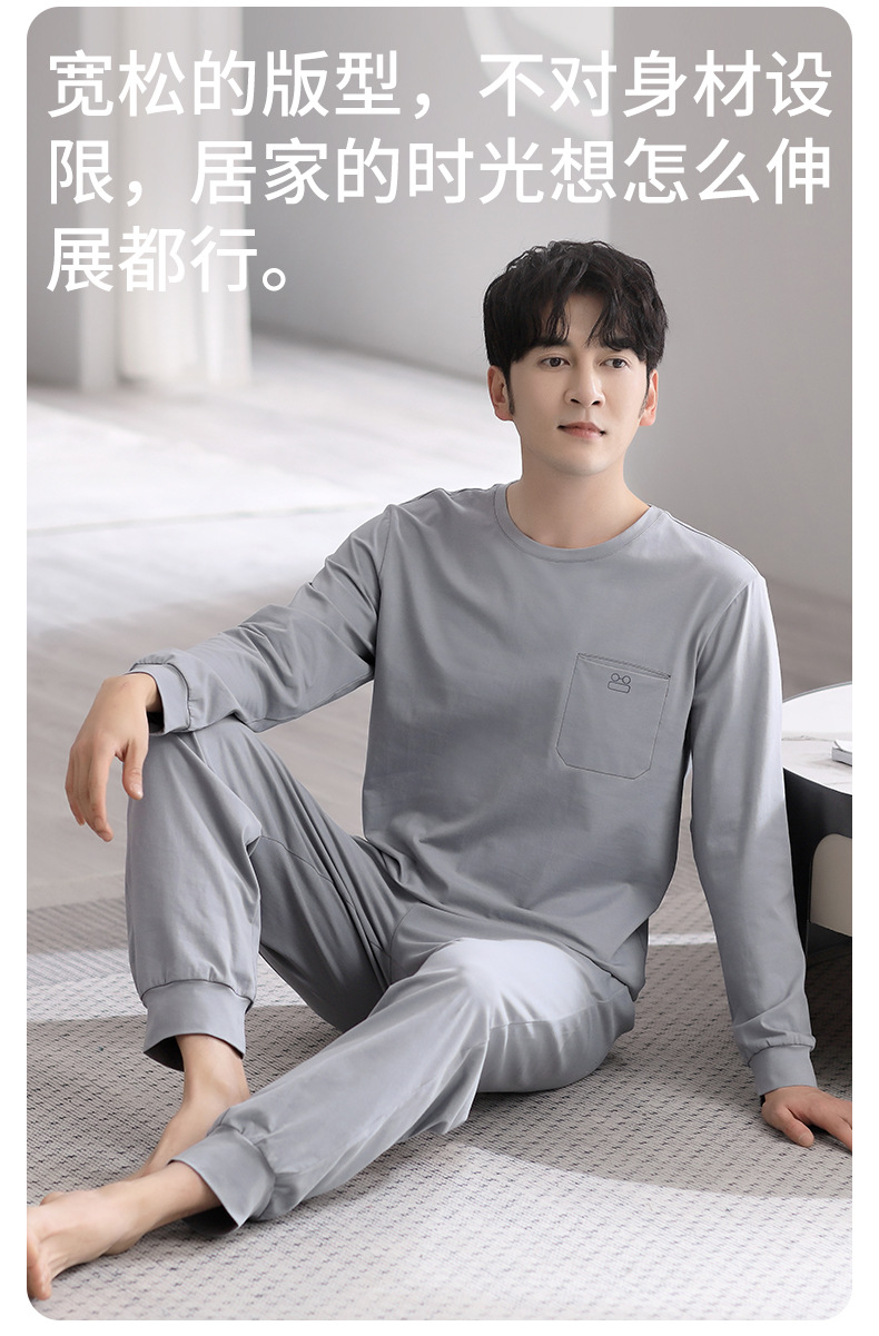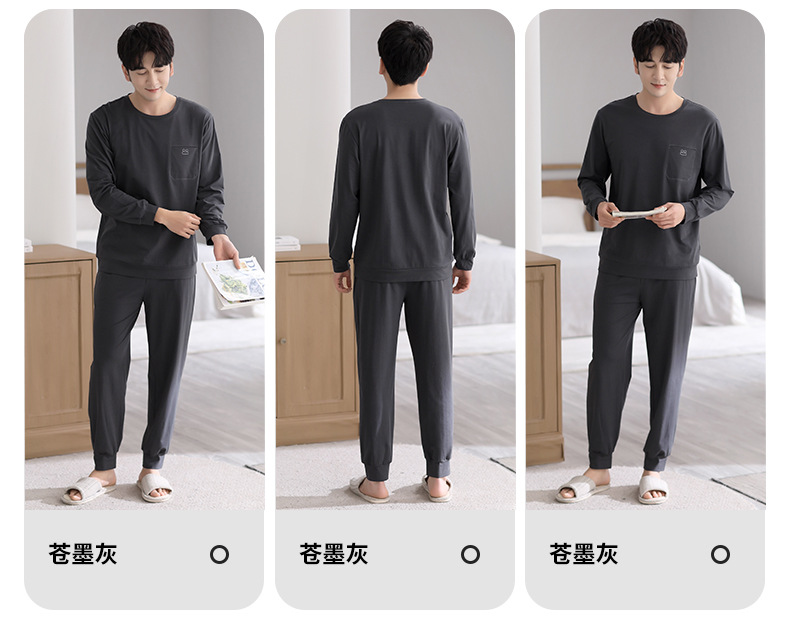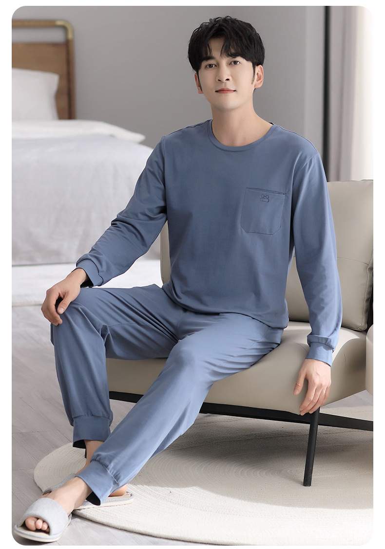잠옷 남성용 순면 홈 의류 남성용 캐주얼 잠옷 세트 순수한면 단순 캐주얼 봄과 가을 고급 잠옷스토어 가기
