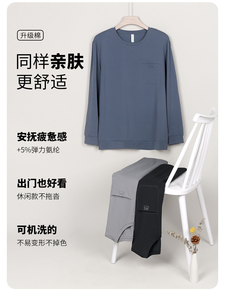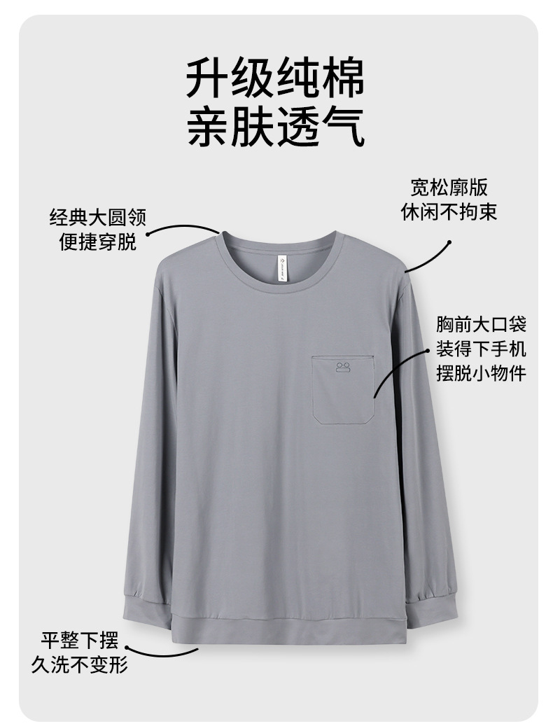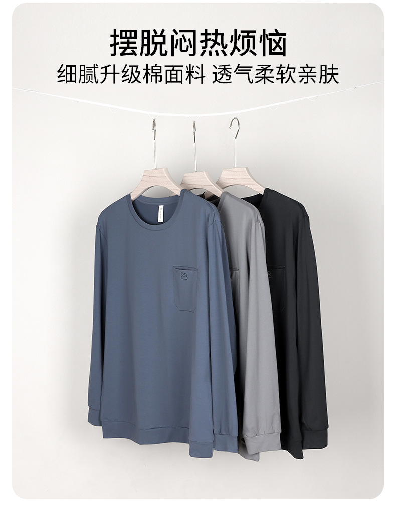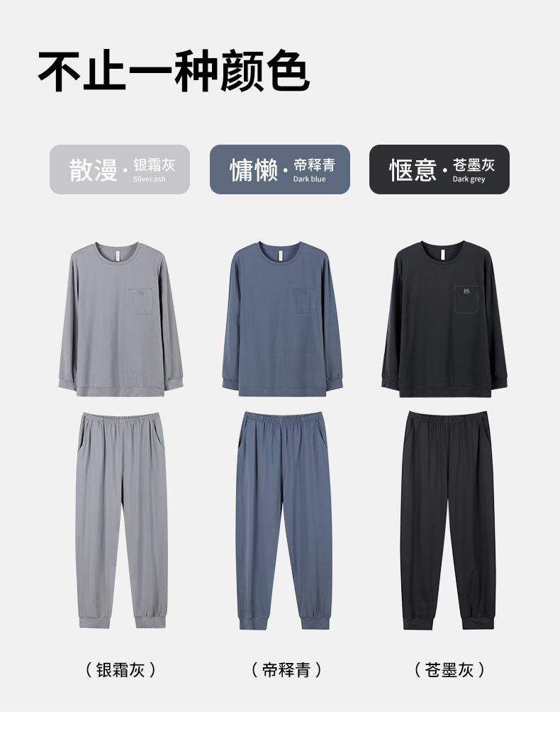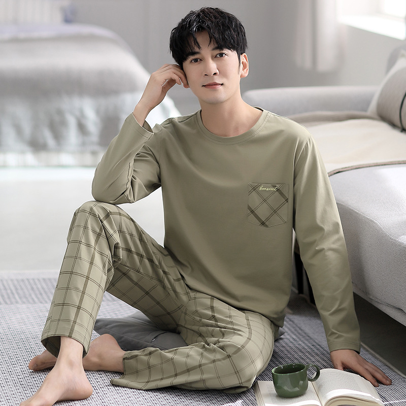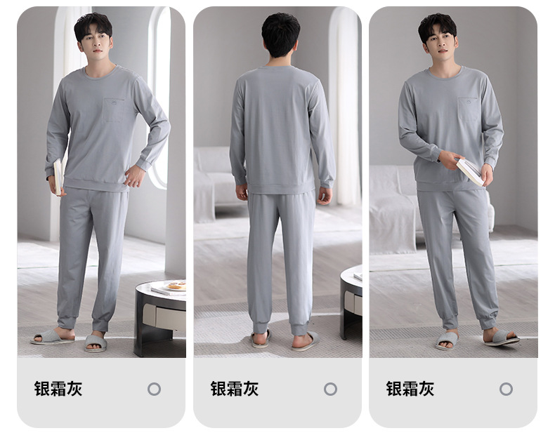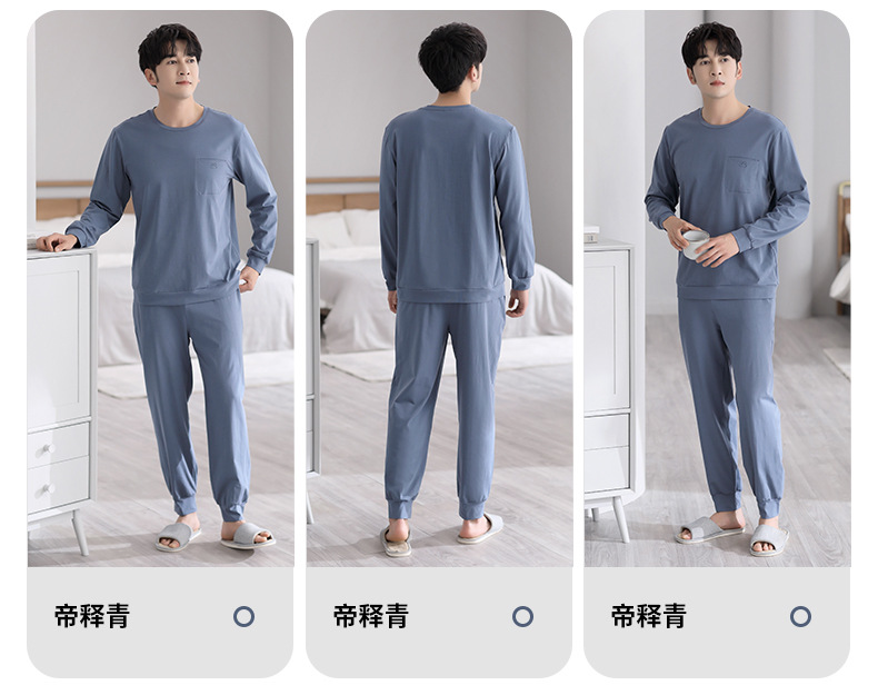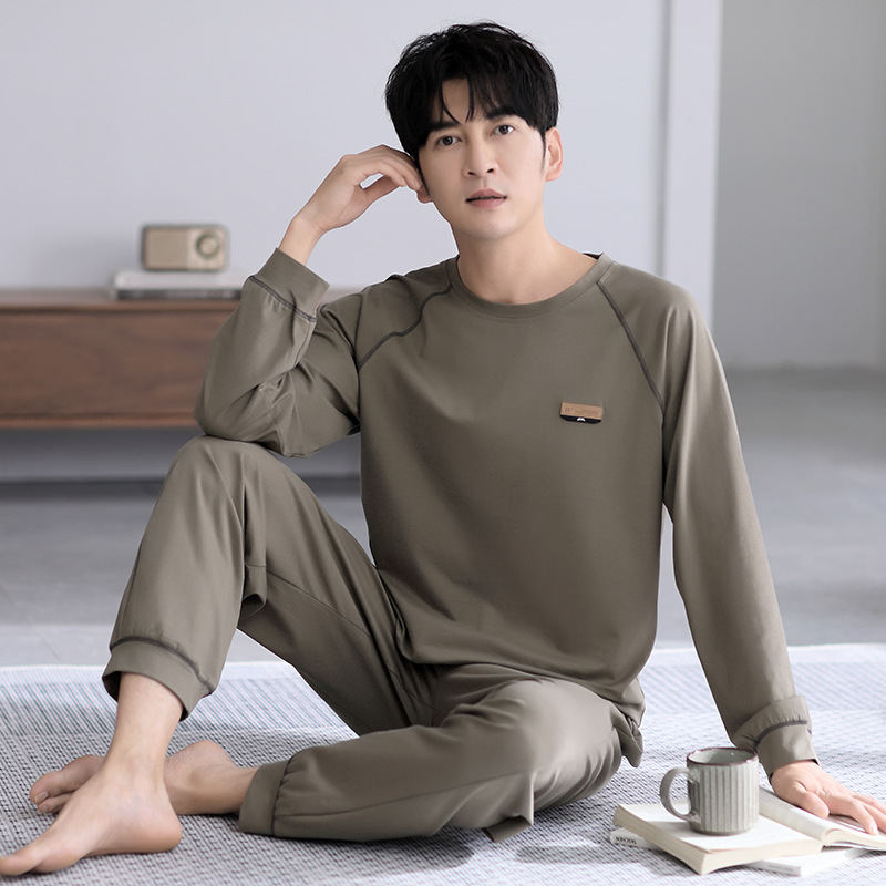 잠옷 남성용 순면 홈 의류 남성용 캐주얼 잠옷 세트 순수한면 단순 캐주얼 봄과 가을 고급 잠옷스토어 가기