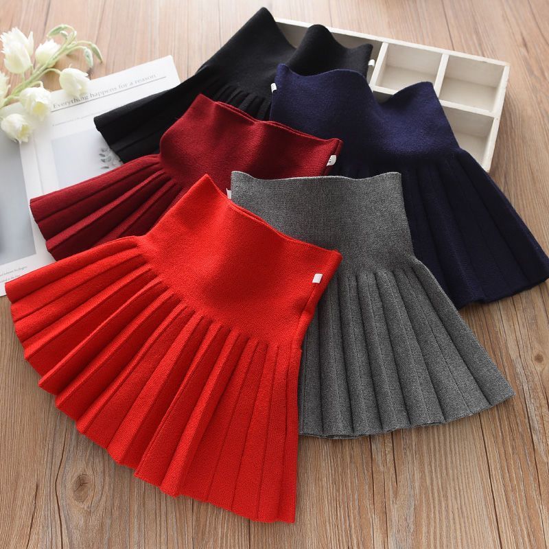 부드러운 소녀의 치마 어린이 짧은 니트 주름 높은 허리 스커트 소녀의 겨울 미니 스커트 검은 겨울 스커트스토어 가기
