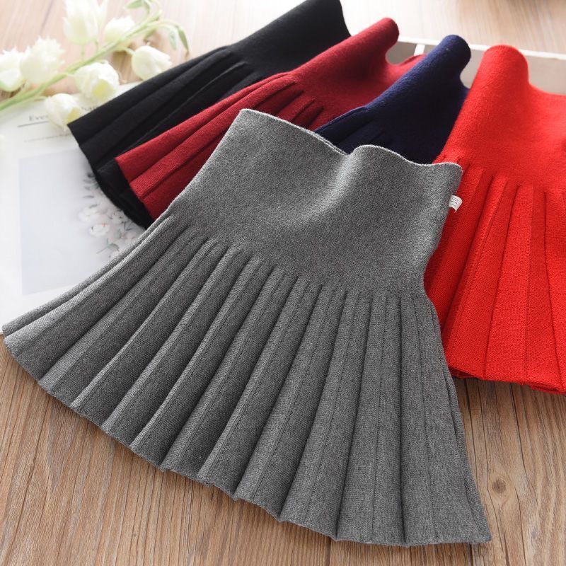 부드러운 소녀의 치마 어린이 짧은 니트 주름 높은 허리 스커트 소녀의 겨울 미니 스커트 검은 겨울 스커트
