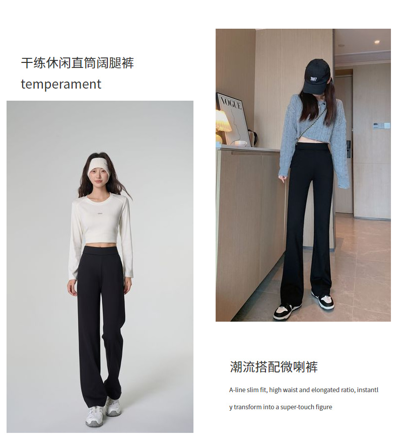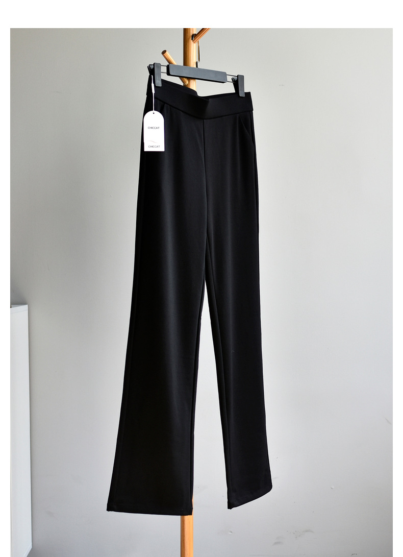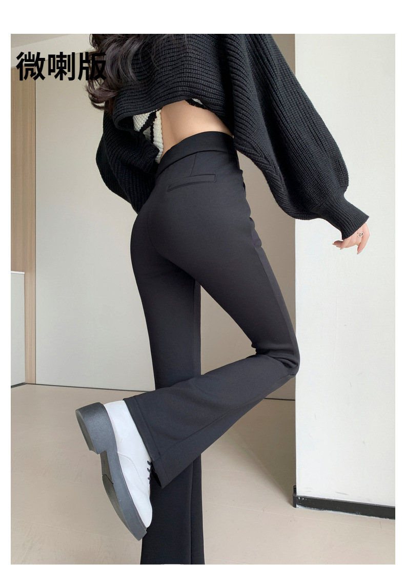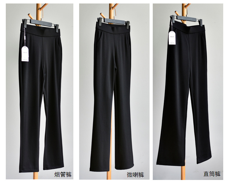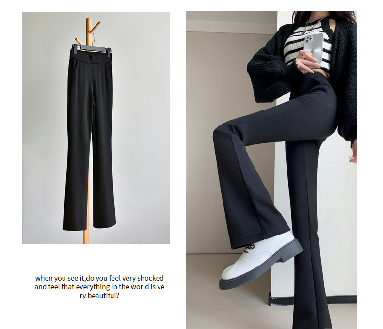 【봄 슈퍼모델 팬츠】크로스보더 인기 봄 신상 코튼 블랙 와이드 레그 스모크 파이프 캐주얼 신축성 마이크로 플레어 롱 팬츠스토어 가기