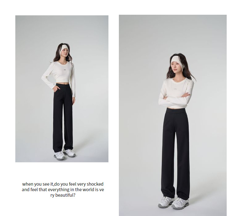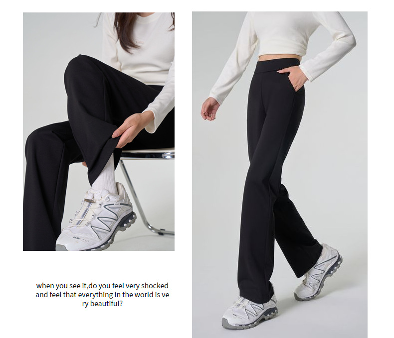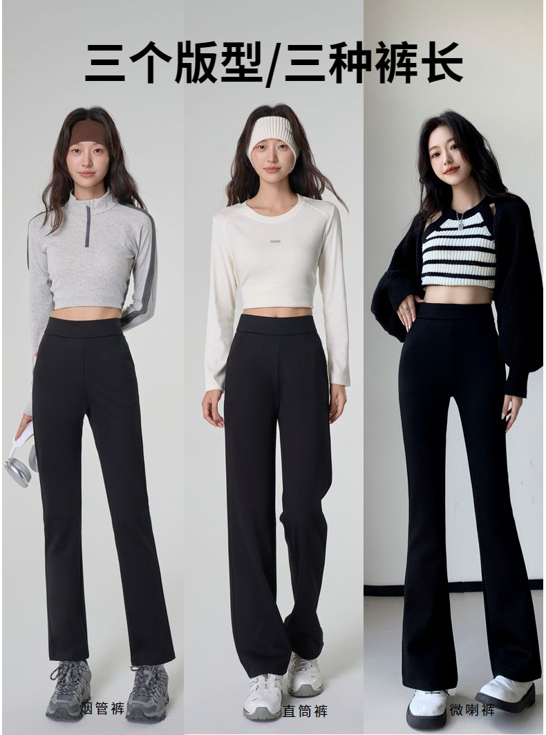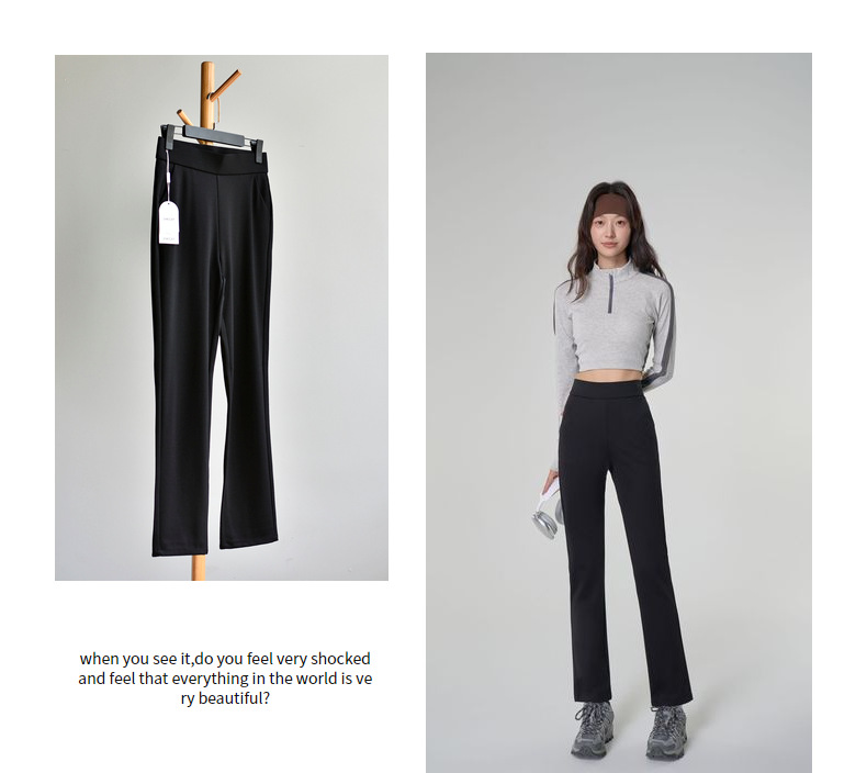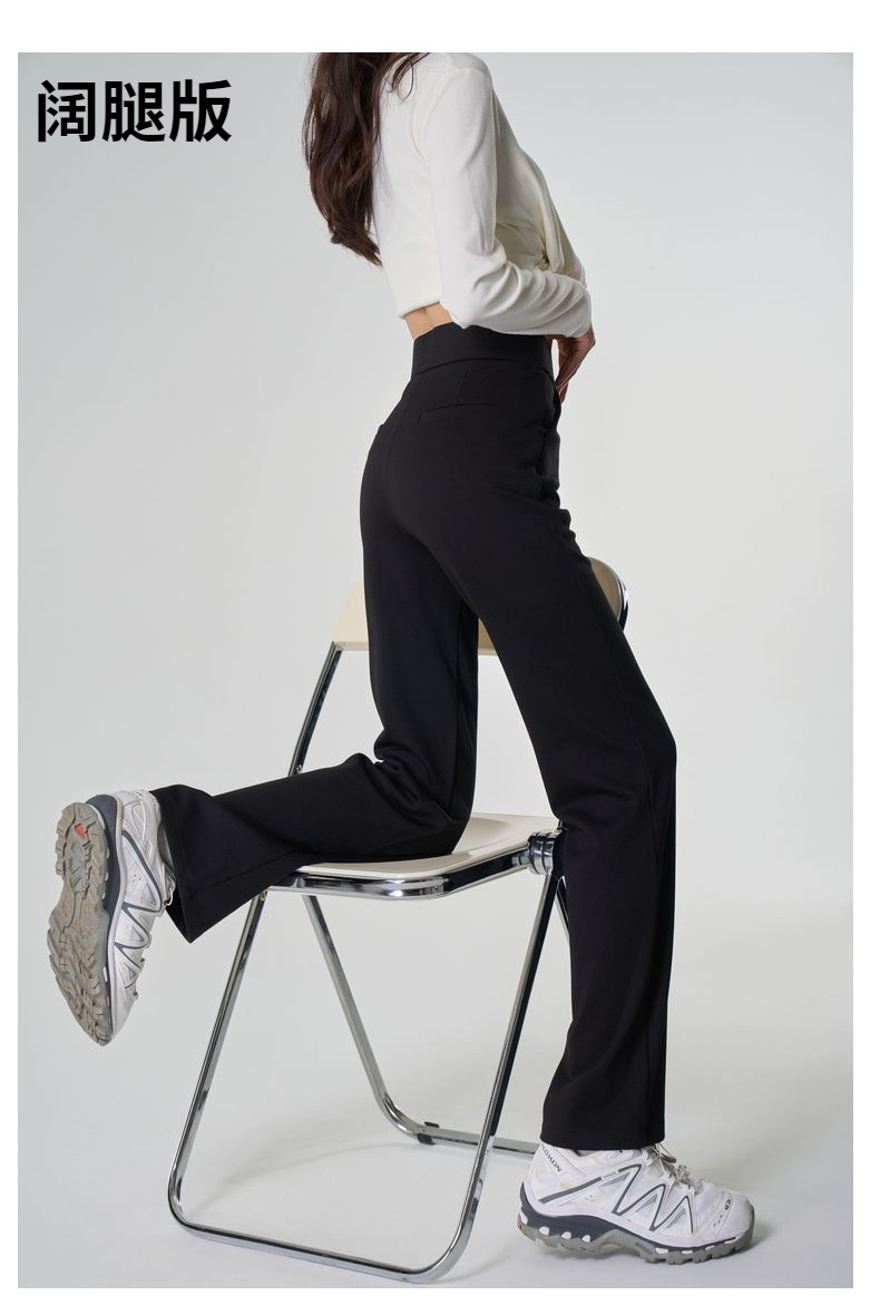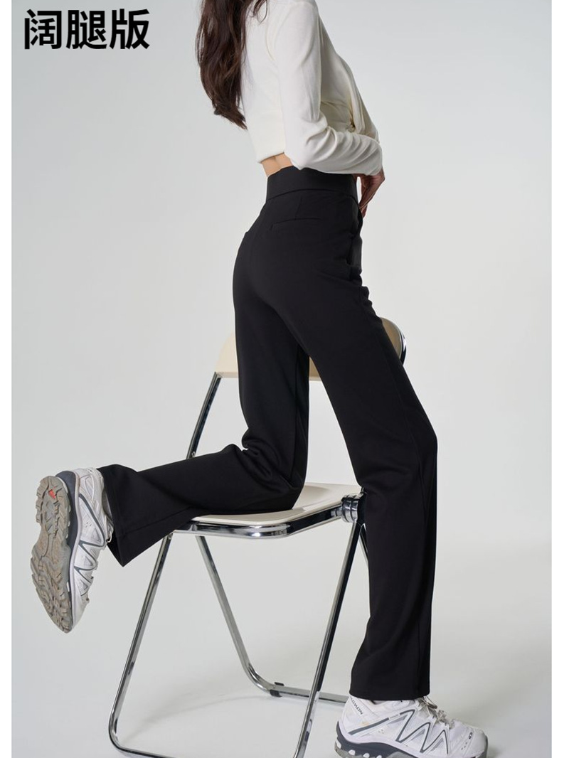 【봄 슈퍼모델 팬츠】크로스보더 인기 봄 신상 코튼 블랙 와이드 레그 스모크 파이프 캐주얼 신축성 마이크로 플레어 롱 팬츠스토어 가기