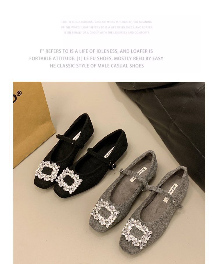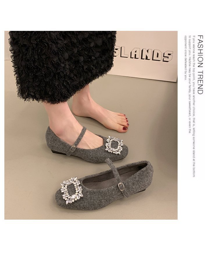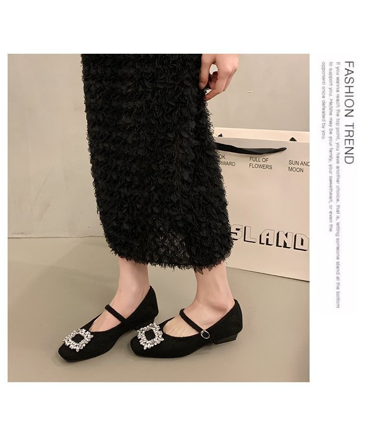 프랑스 스타일 스퀘어 헤드 라인스톤 모피 신발 기모 코튼 슈즈 (Cotton Shoes)스토어 가기