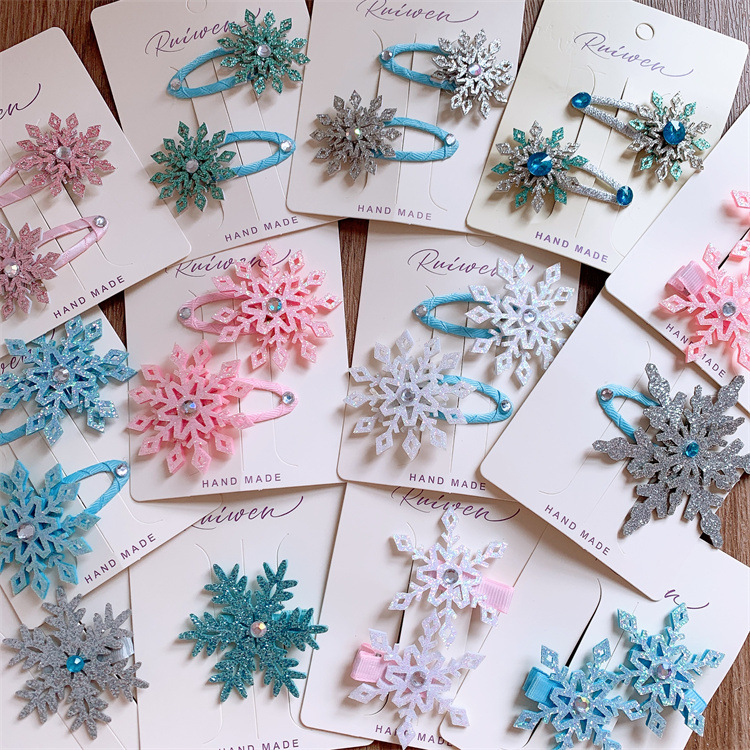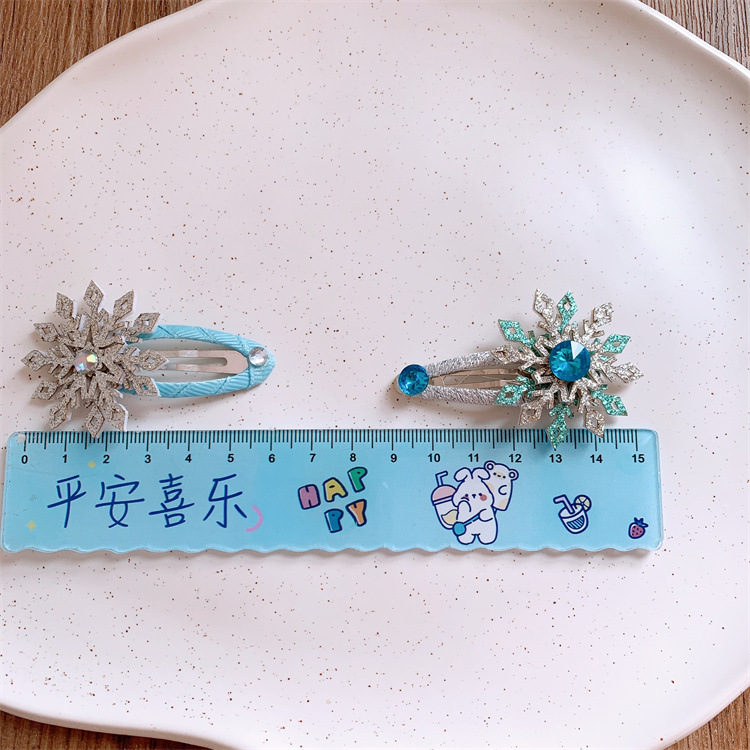 어린이 만화 라인석 눈송이 냉동 공주 시리즈 헤어핀 걸스 사이드 뱅 깨진 머리 BB 클립 헤어핀스토어 가기