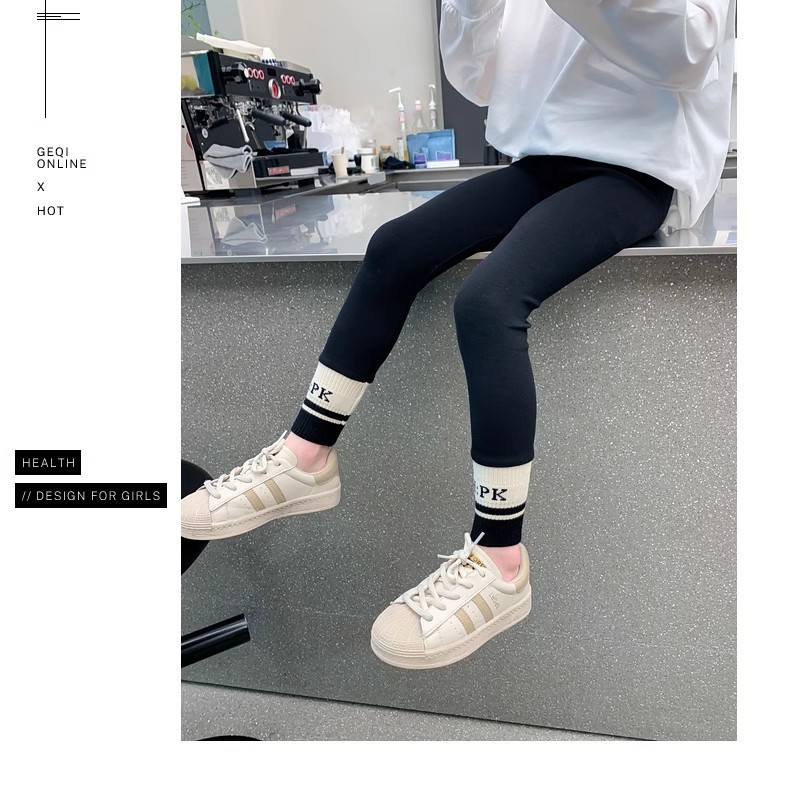 소녀 레깅스 가을 겨울 기모 2024 새로운 어린이 바지 겨울 착용 어린 소녀의 가을과 겨울 캐주얼 바지 외부 착용