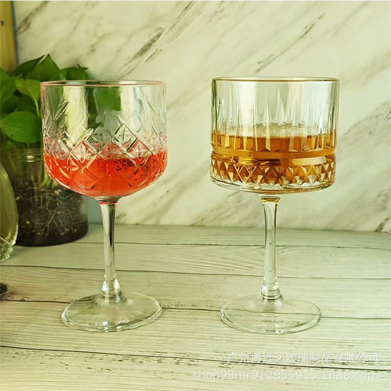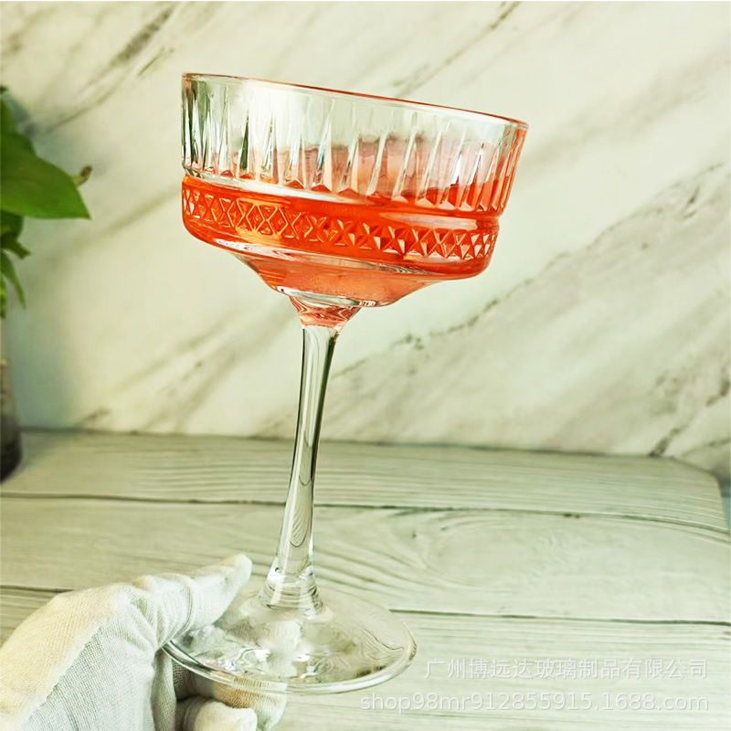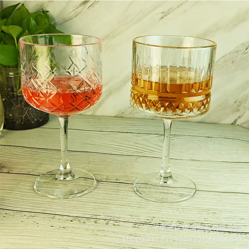조각 된 칵테일 유리 잔 잔 그물 레드 디저트 컵 아이스크림 컵 요구르트 컵 와인 시음 컵 칵테일 컵