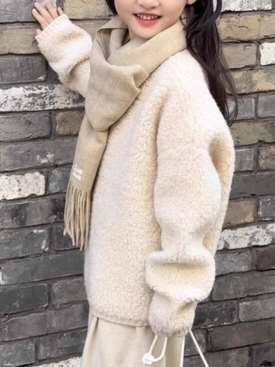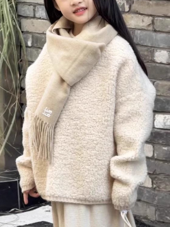 소녀 스웨터 세트 가을과 겨울 2024 새로운 어린이 두꺼운 과립 스웨터 탑 세련된 반쪽 치마