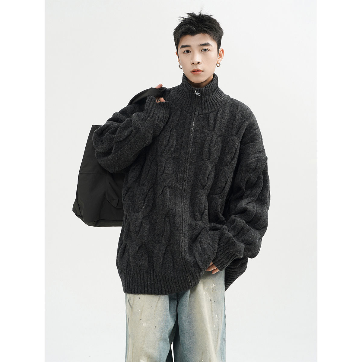 빈티지 트위스트 카디건 스웨터 남자 겨울 아메리칸 스타일 하이 스트리트 게으른 스타일 커플의 캐주얼 올 매치 스웨터