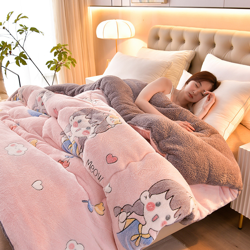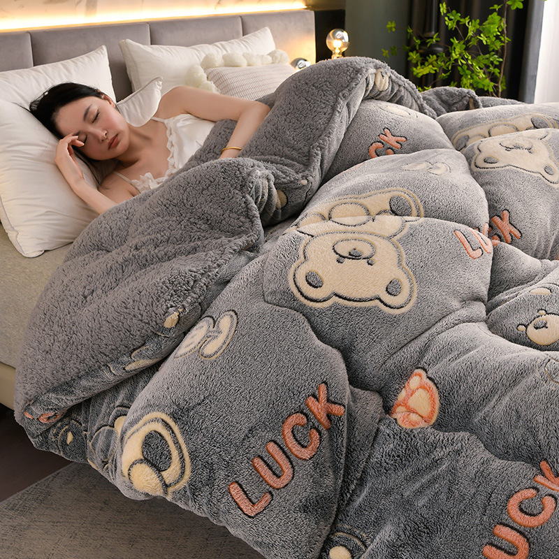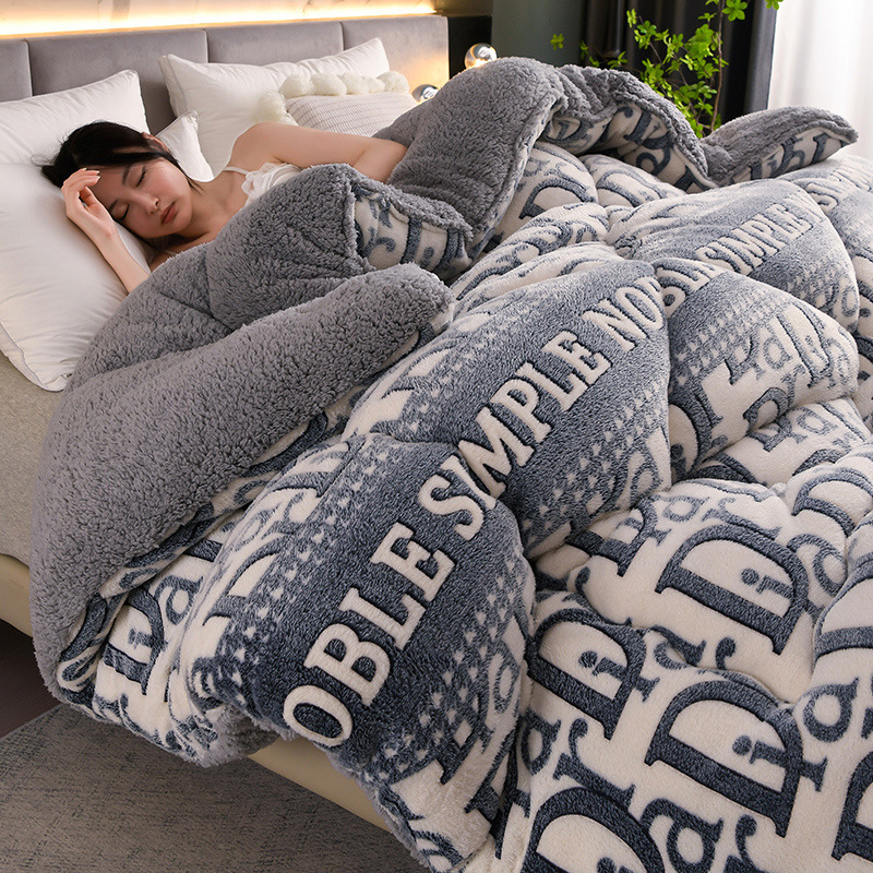국경을 넘는 새로운 양고기 양털 이불 두꺼운 눈 양털 겨울 이불 AB 표면 따뜻한 면화 학생 기숙사 인쇄 퀼트 코어스토어 가기
