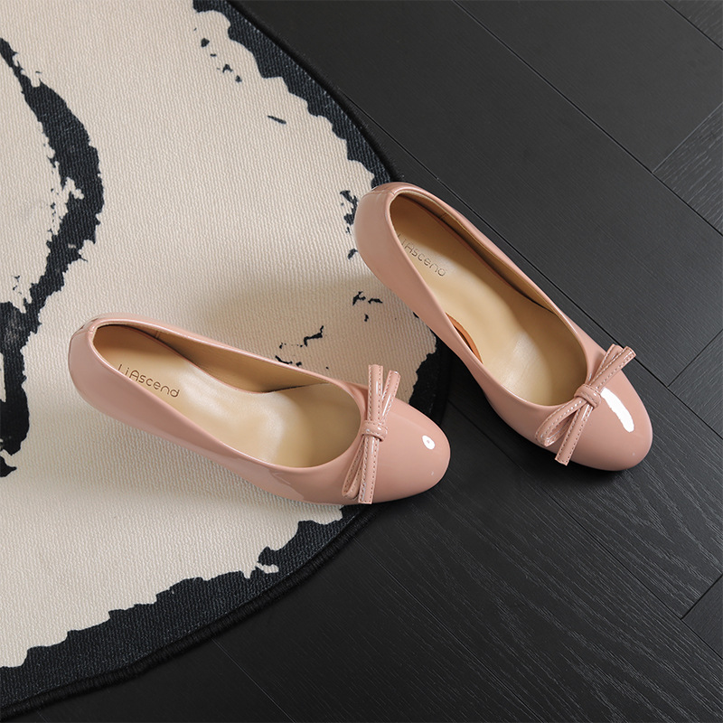 2025 봄 신상 라운드 토 웨지 힐 페이턴트 가죽 보우 메리 제인 슈즈 중고 하이힐 여성용 달콤하고 다재다능한 싱글 슈즈