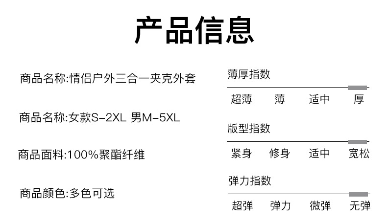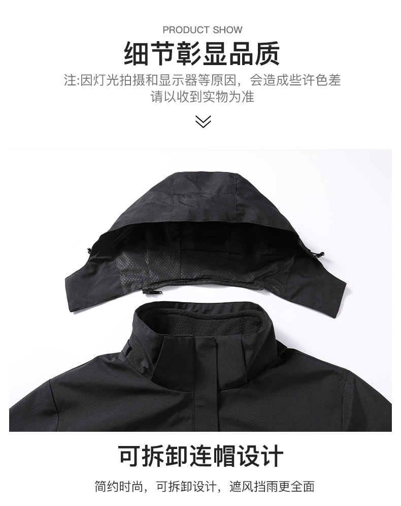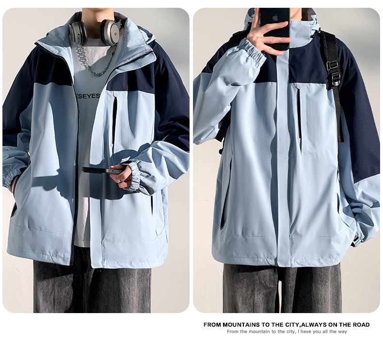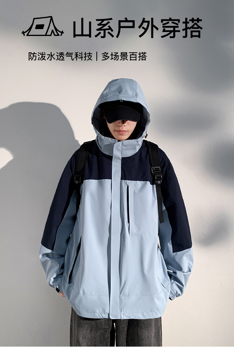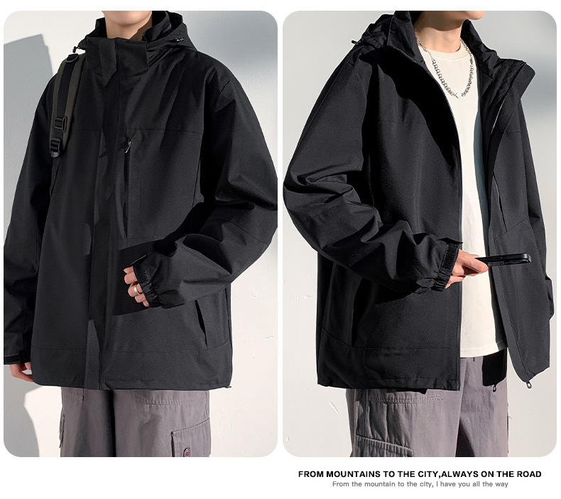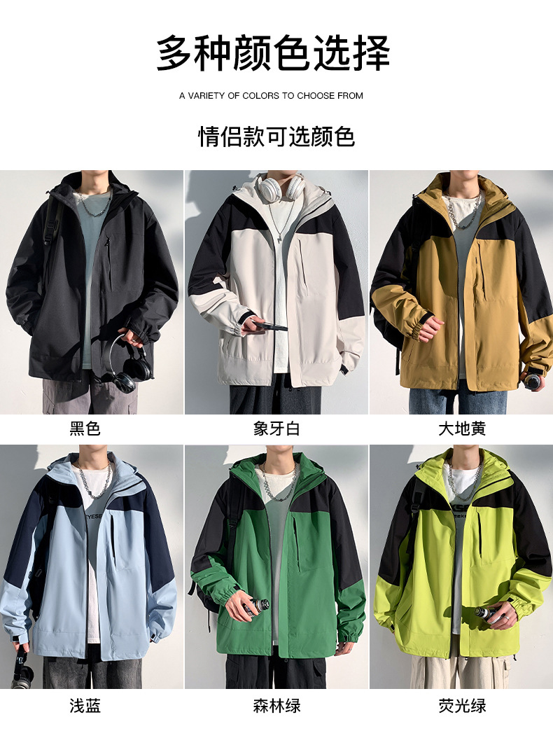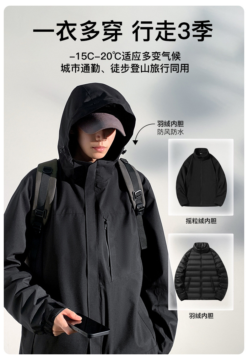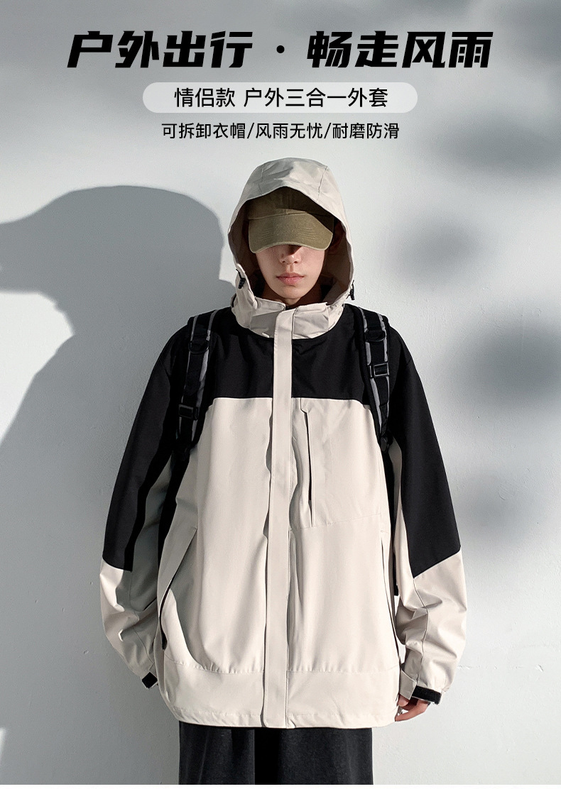 남성과 여성을위한 고무 프레스 야외 등산 자켓 봄 및 가을 남성용 새로운 3 가지 방수 방수 재킷