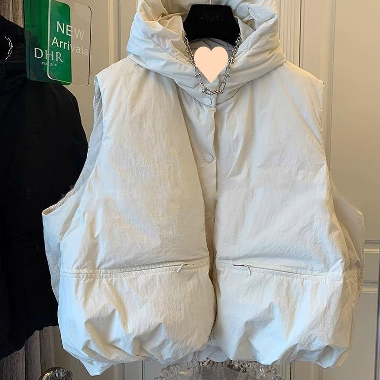 슈퍼 잘 생긴 틈새 후드 다운 코튼 패딩 재킷 조끼 여성의 겨울 새로운 폭발 두꺼운 후드 코트