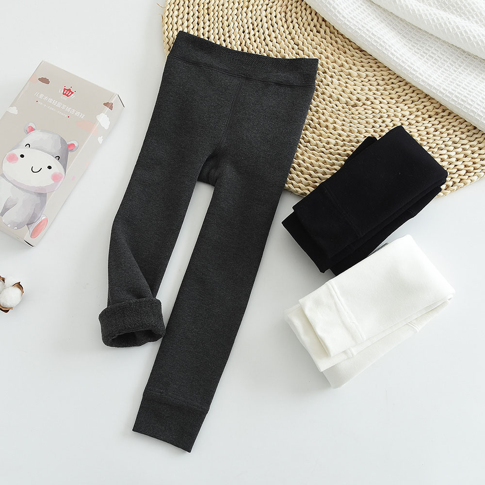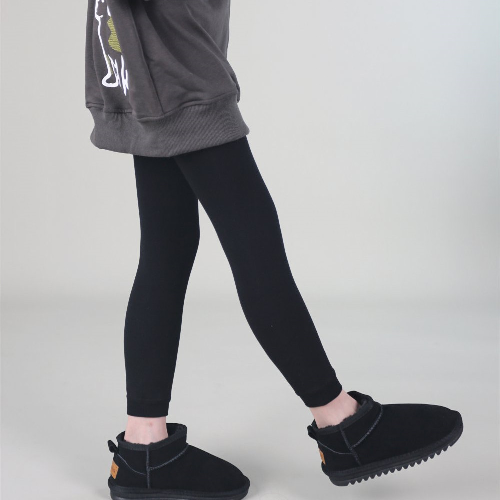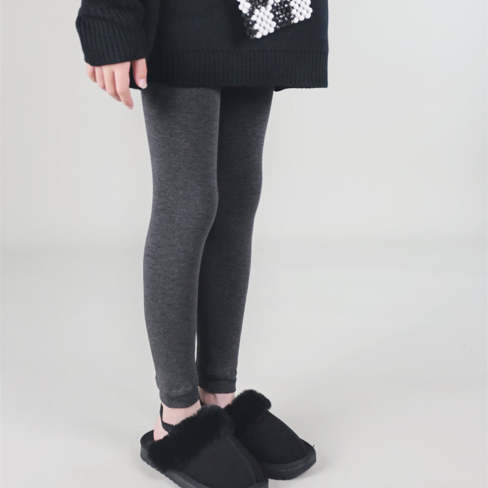 겨울 어린이 기모 두꺼운 레깅스 한국식 소녀 원피스 솔리드 컬러 슬림핏 발목 길이 바지 중간 길이 바지스토어 가기