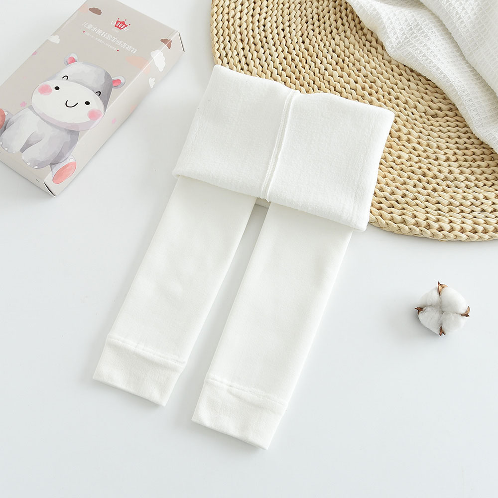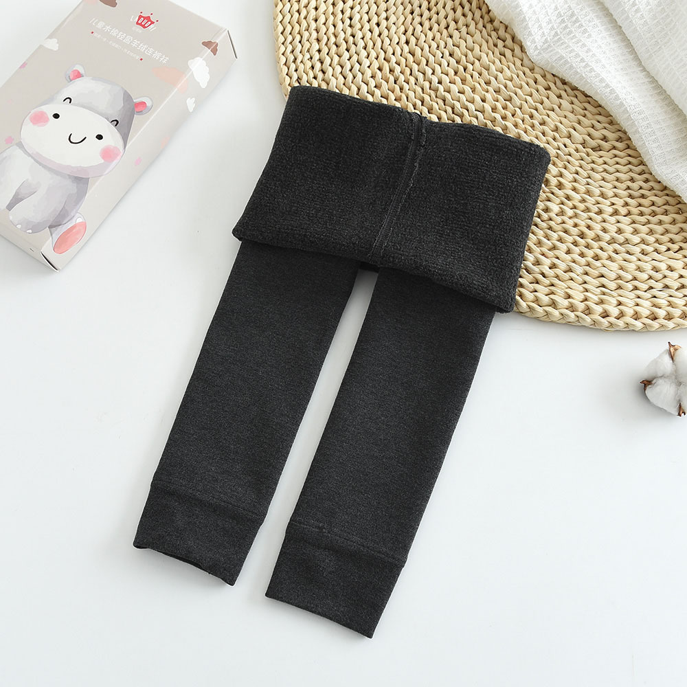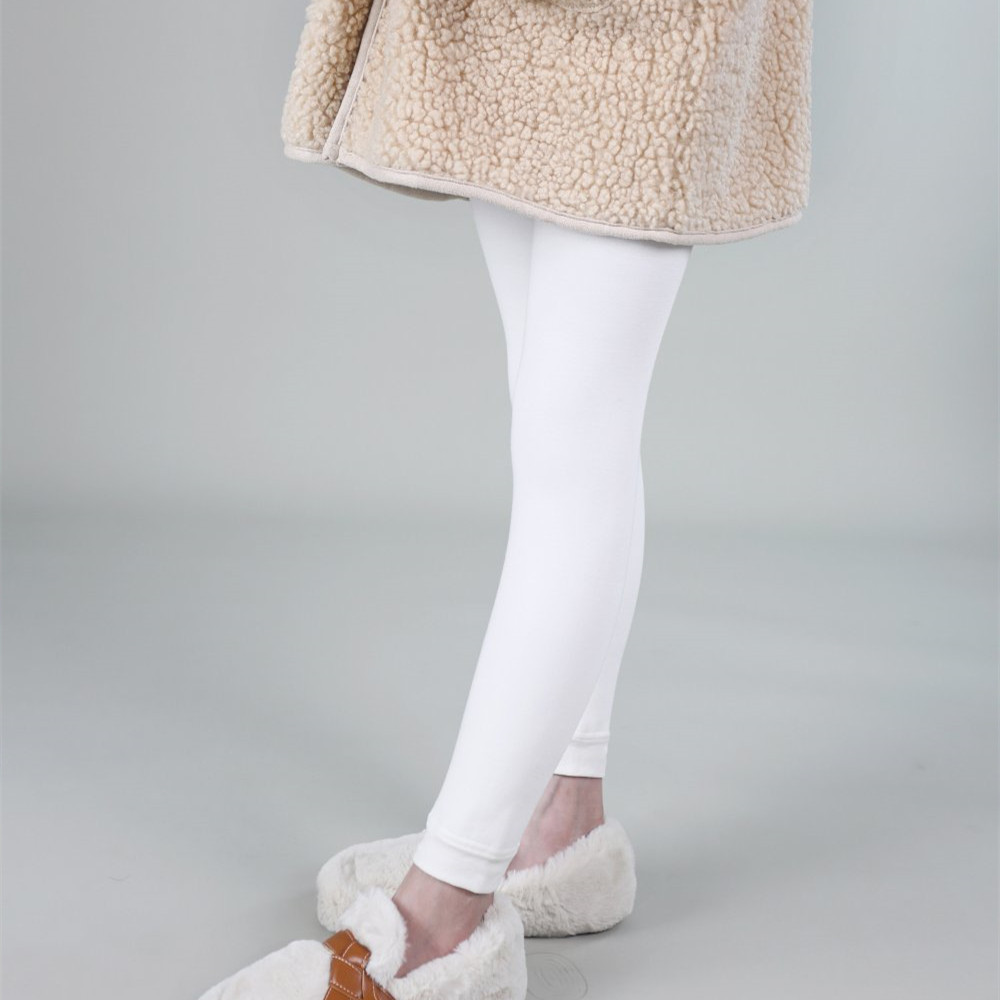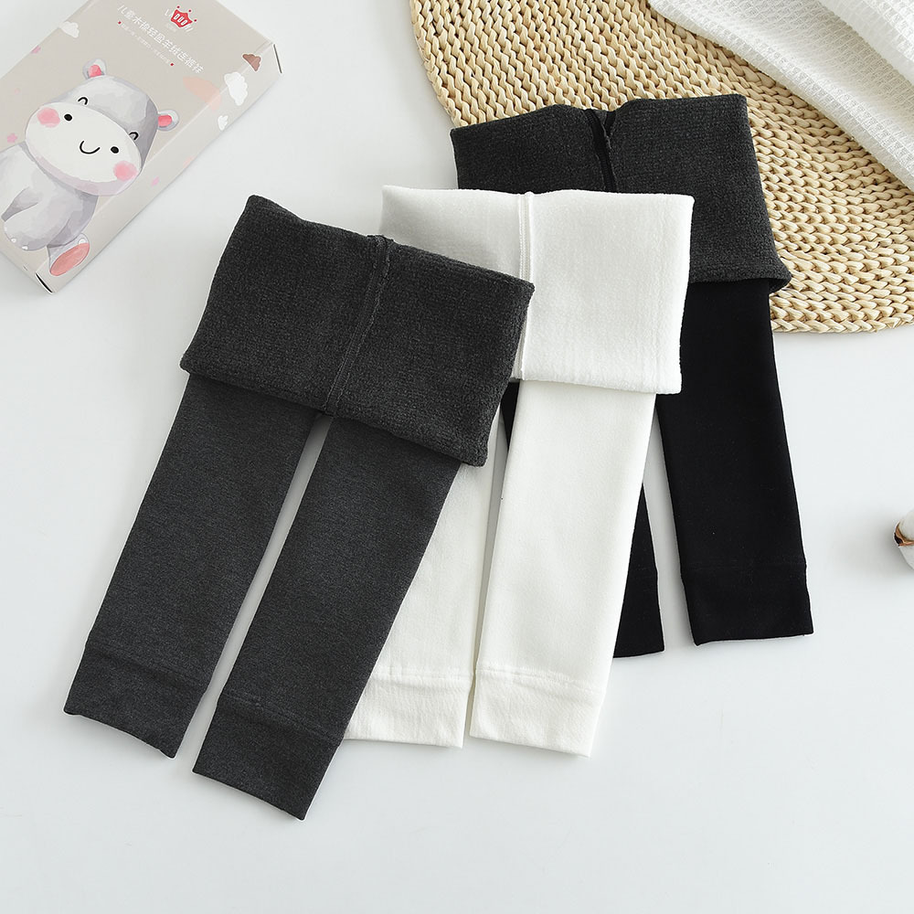 겨울 어린이 기모 두꺼운 레깅스 한국식 소녀 원피스 솔리드 컬러 슬림핏 발목 길이 바지 중간 길이 바지스토어 가기
