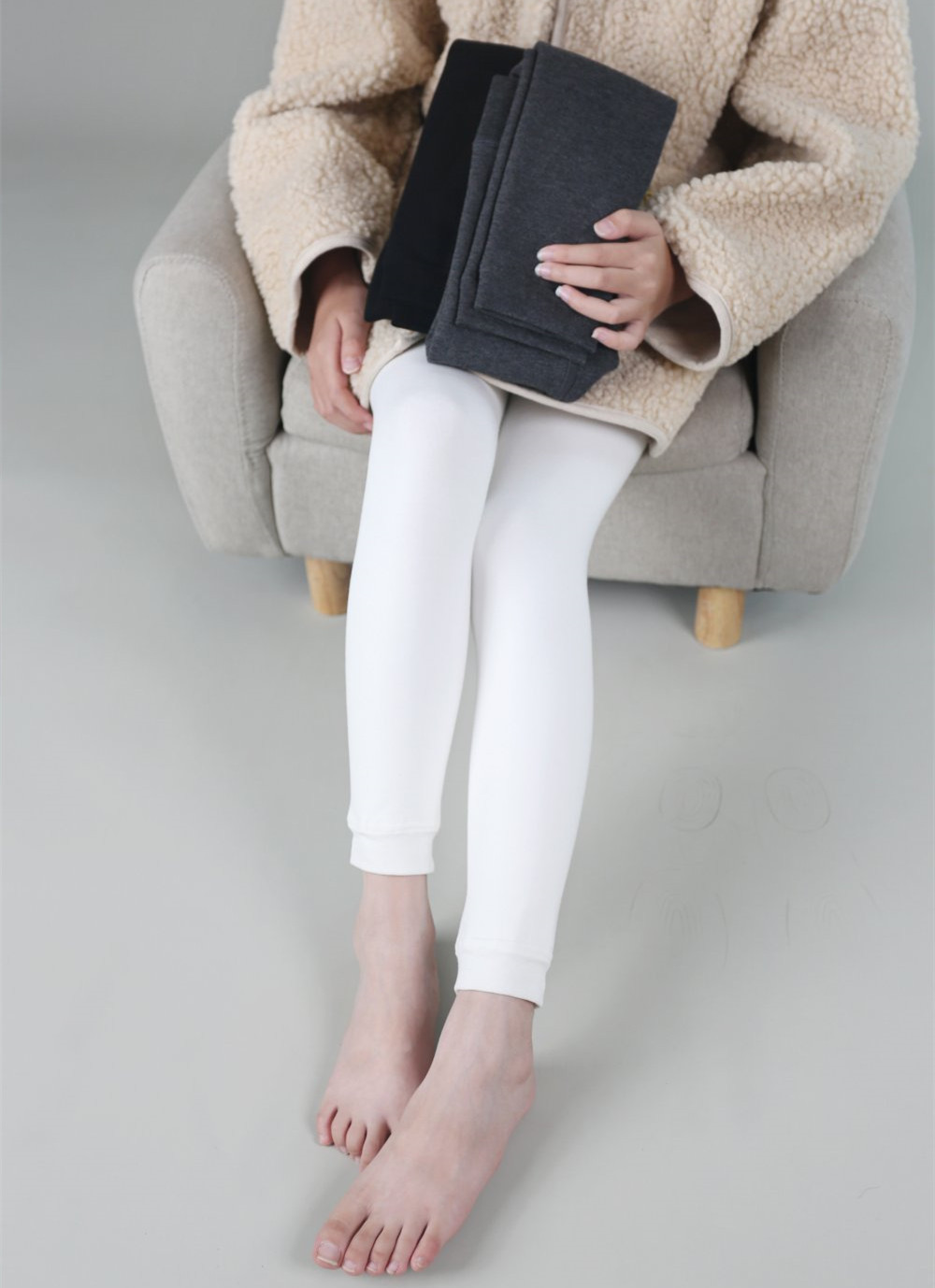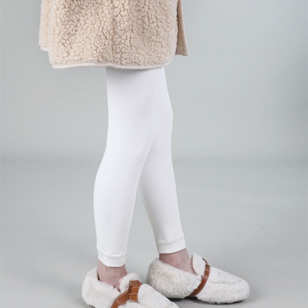 겨울 어린이 기모 두꺼운 레깅스 한국식 소녀 원피스 솔리드 컬러 슬림핏 발목 길이 바지 중간 길이 바지