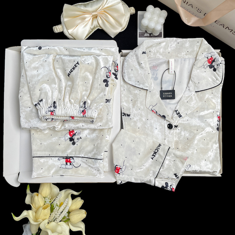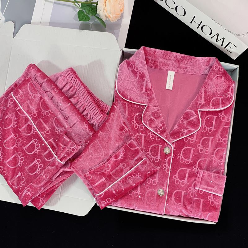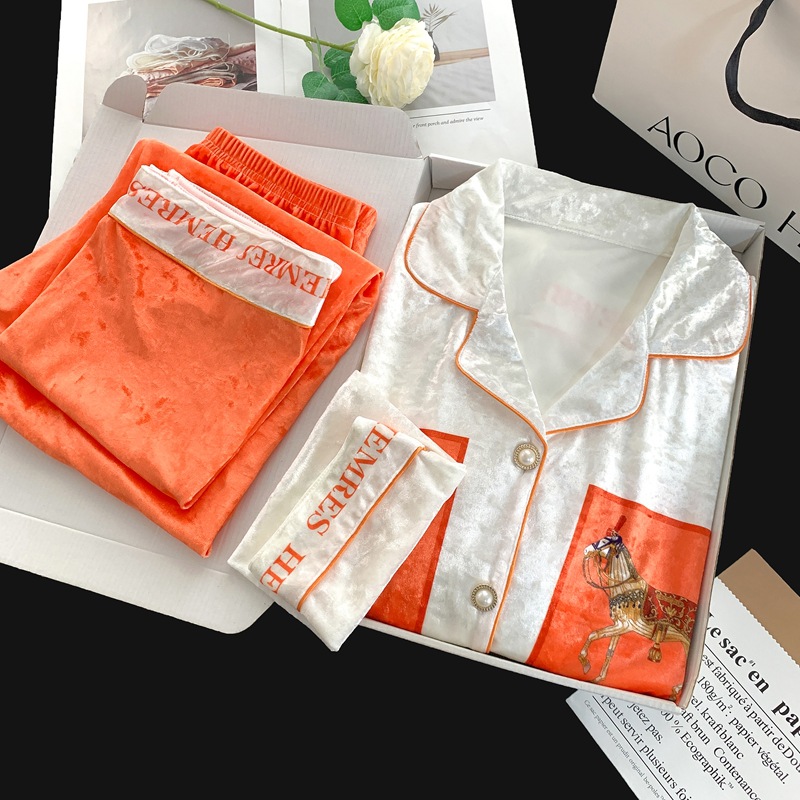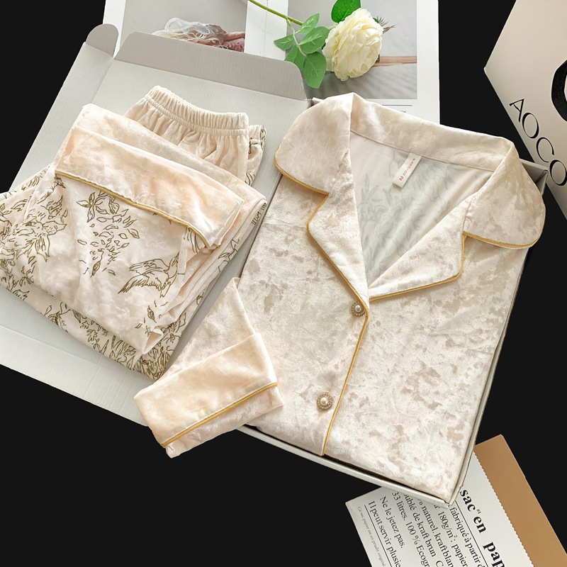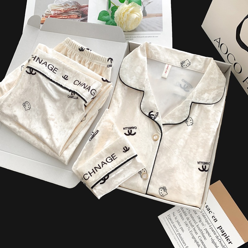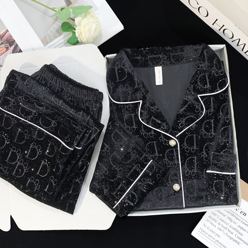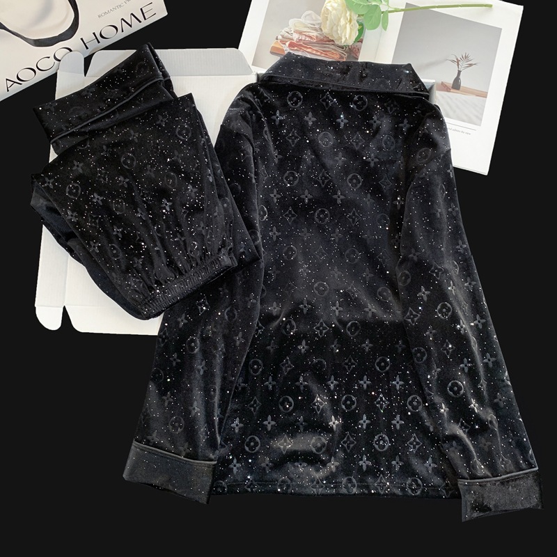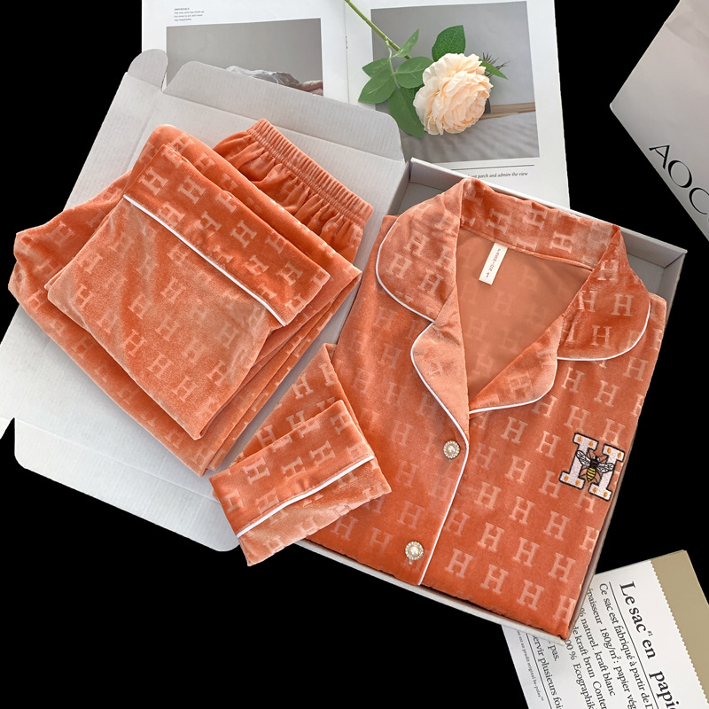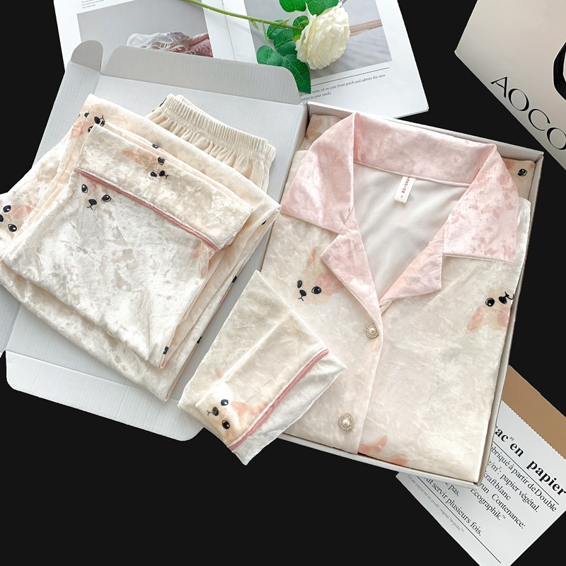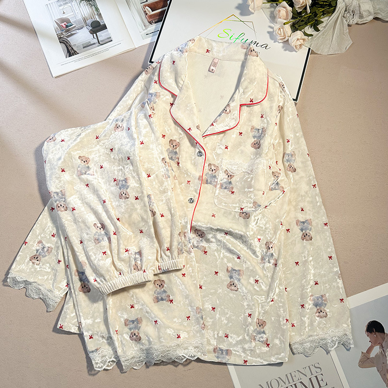 골든 벨벳 만화 곰 잠옷 여성의 새로운 도착 골드 다이아몬드 벨벳 긴팔 바지 홈 의류 잠옷 세트 겨울에 착용 가능
