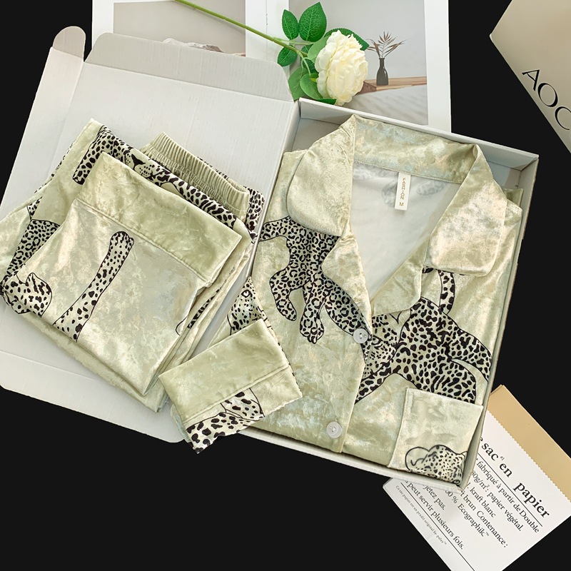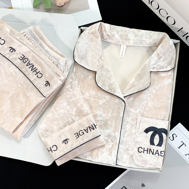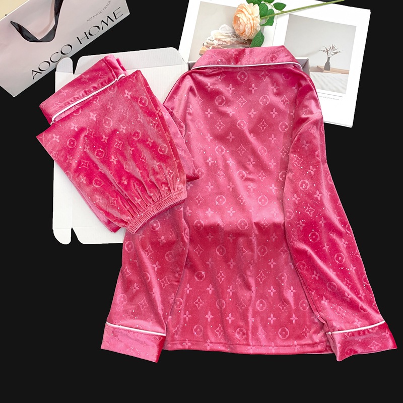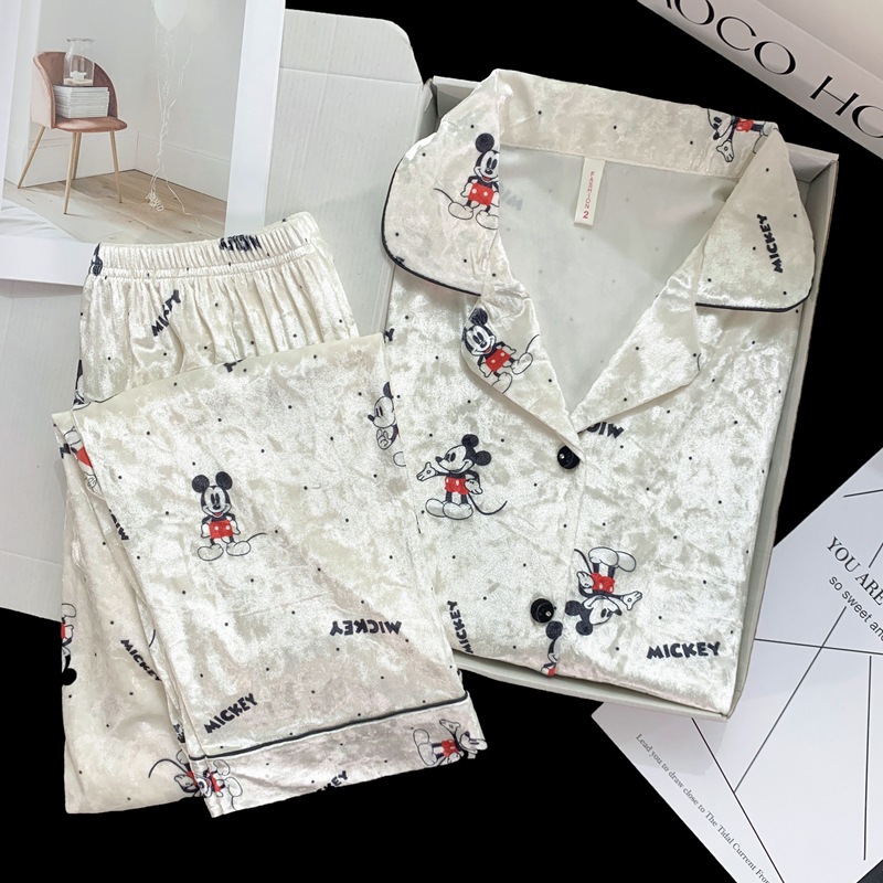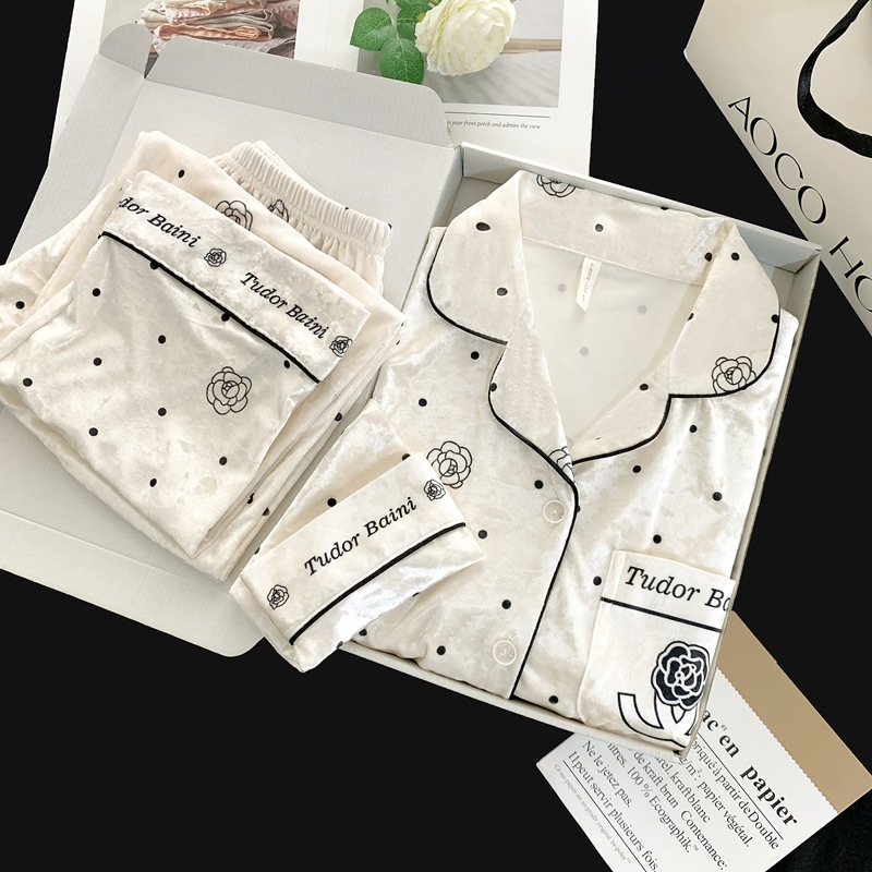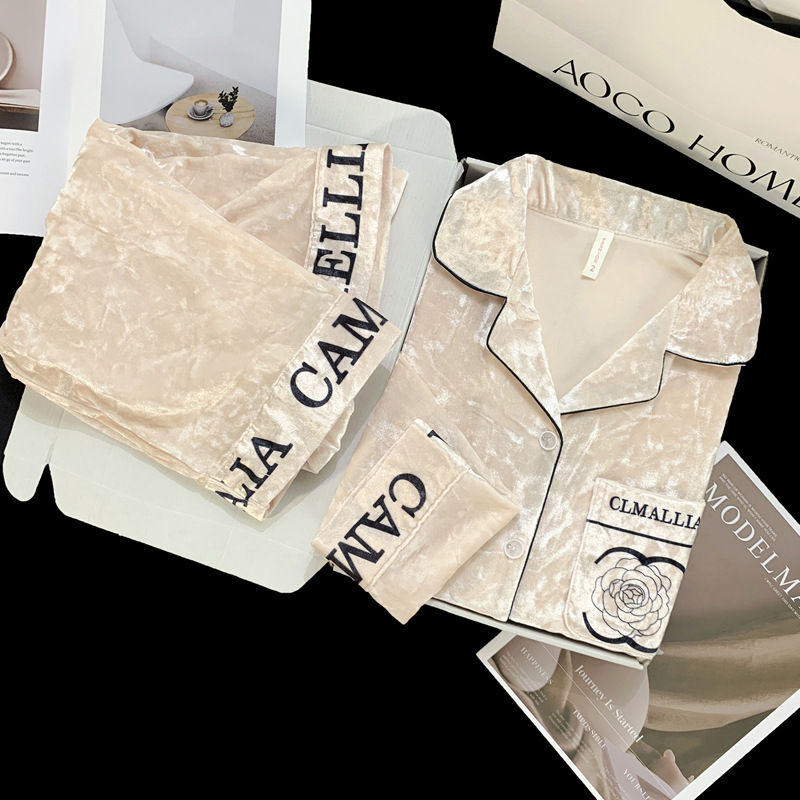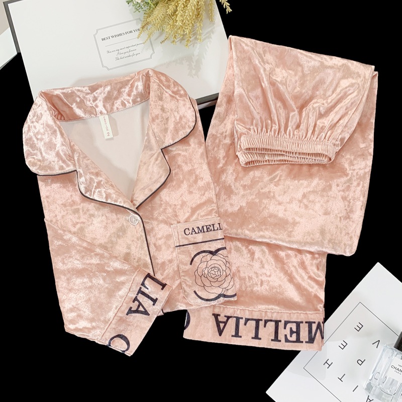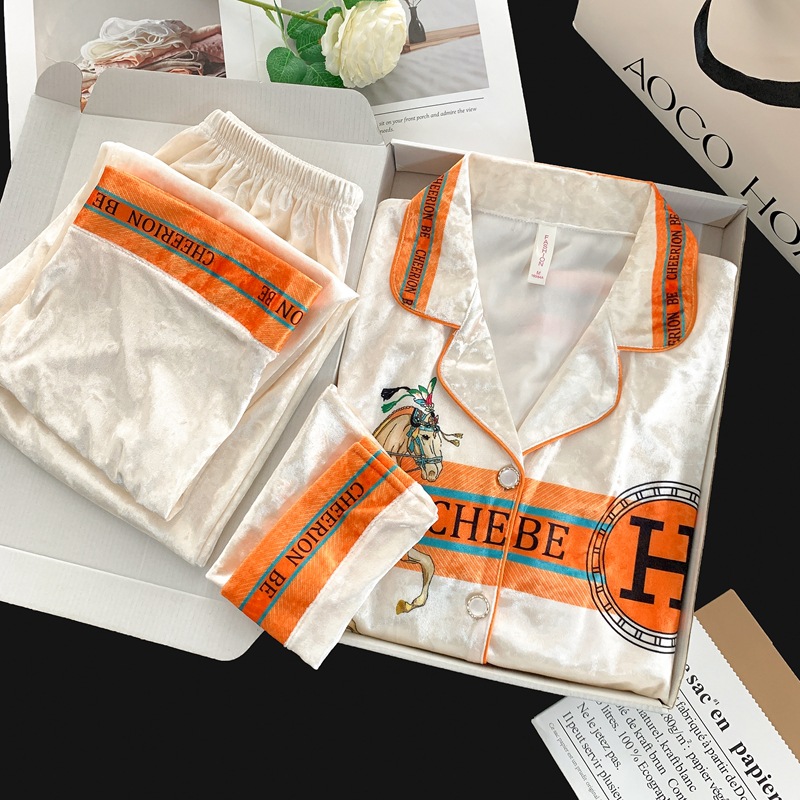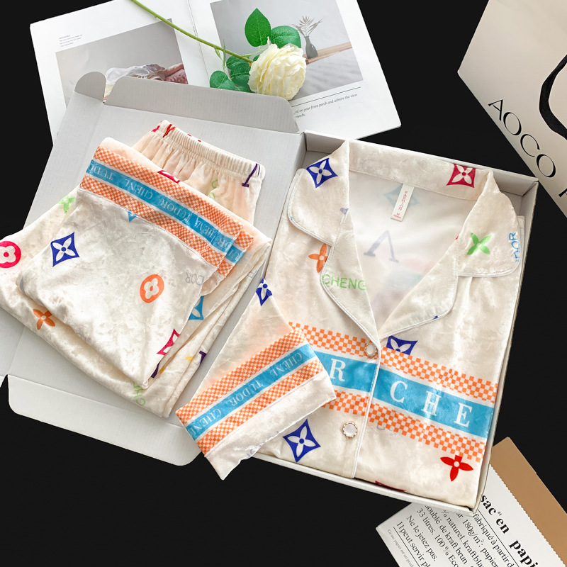 골든 벨벳 만화 곰 잠옷 여성의 새로운 도착 골드 다이아몬드 벨벳 긴팔 바지 홈 의류 잠옷 세트 겨울에 착용 가능