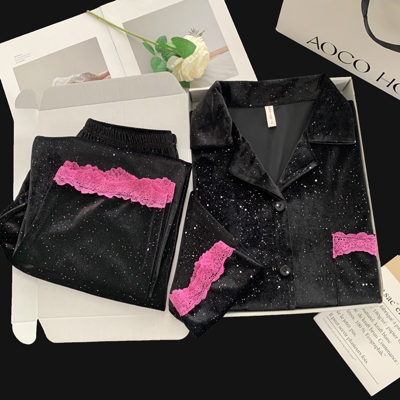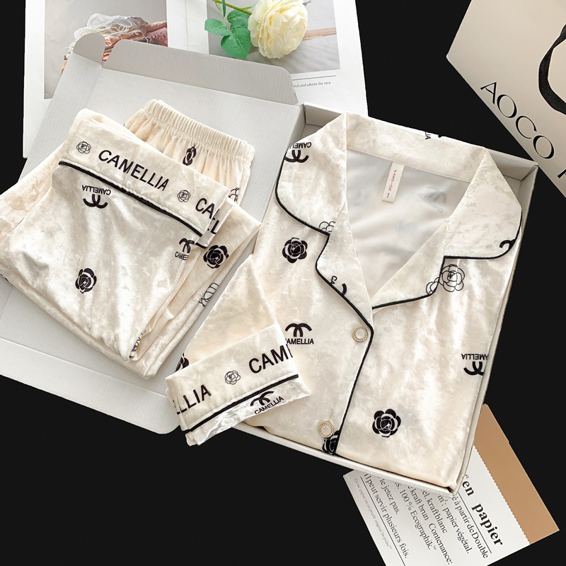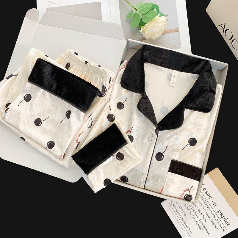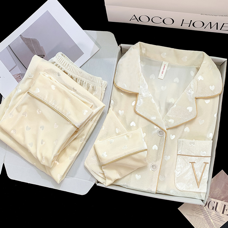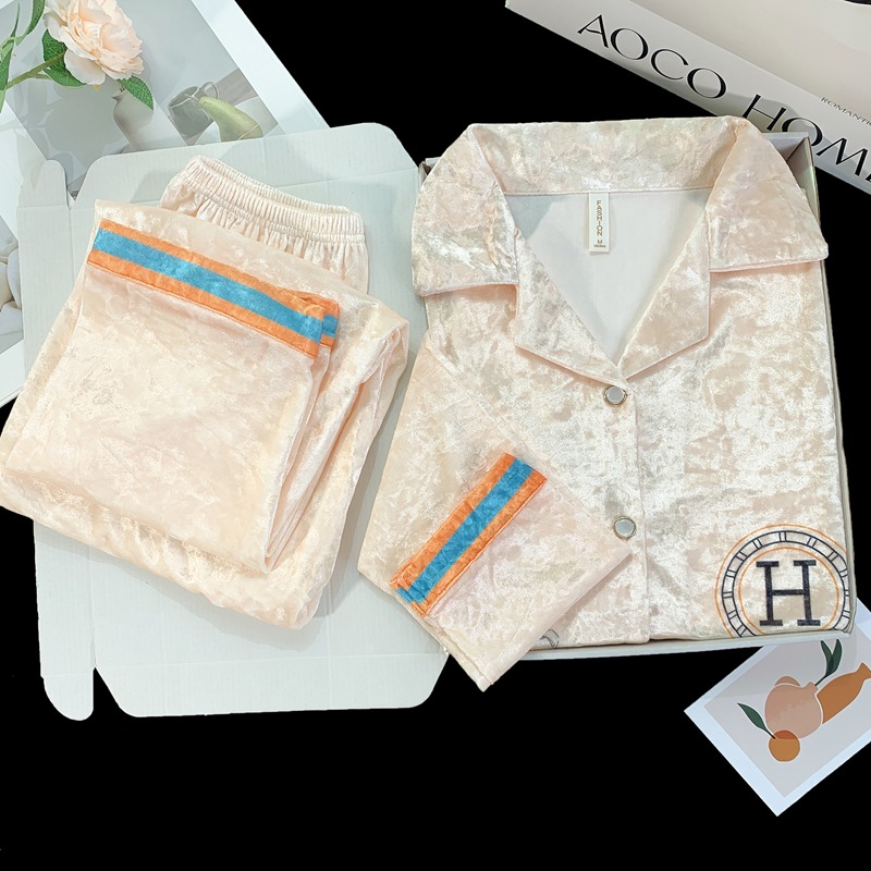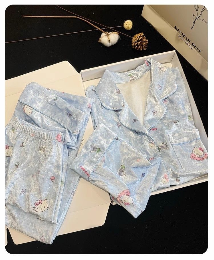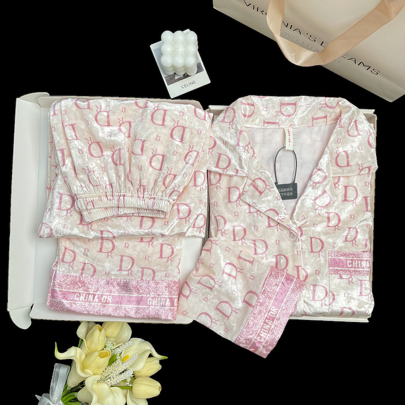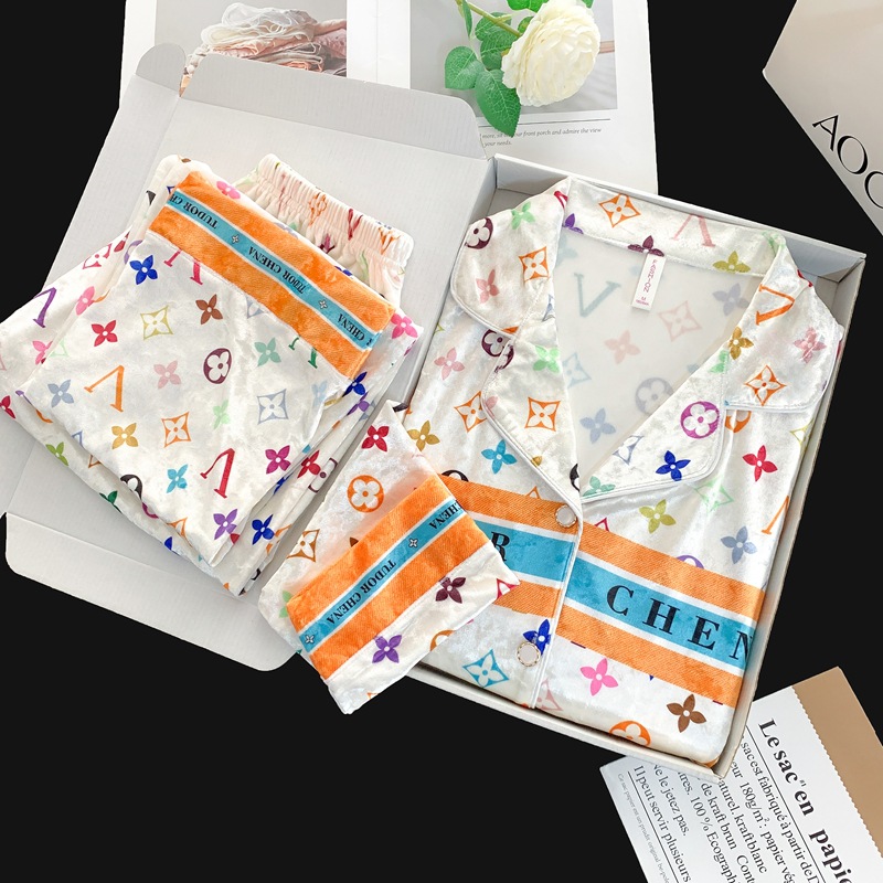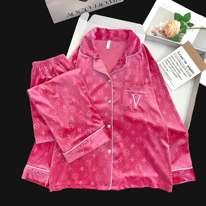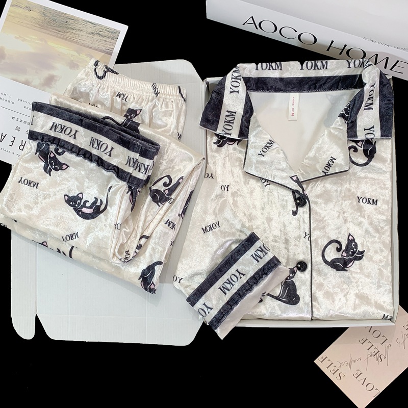 골든 벨벳 만화 곰 잠옷 여성의 새로운 도착 골드 다이아몬드 벨벳 긴팔 바지 홈 의류 잠옷 세트 겨울에 착용 가능