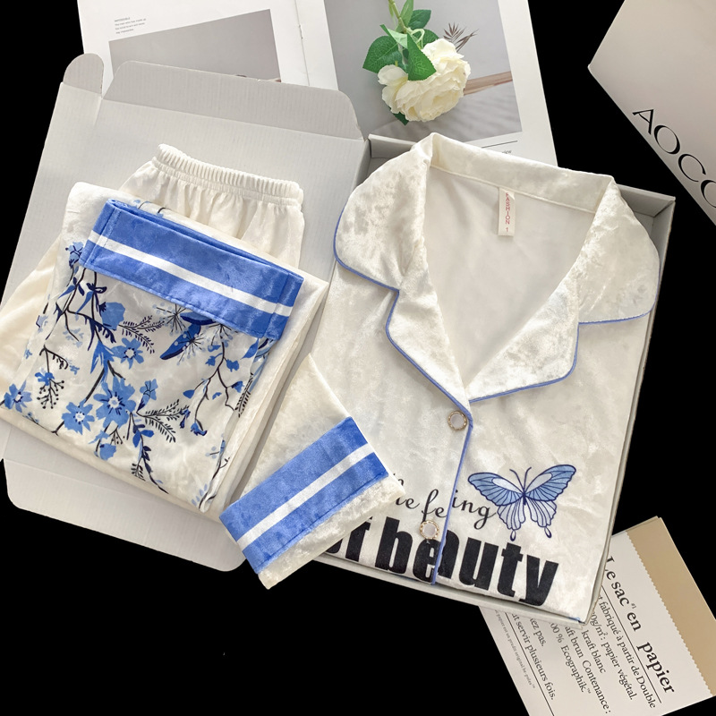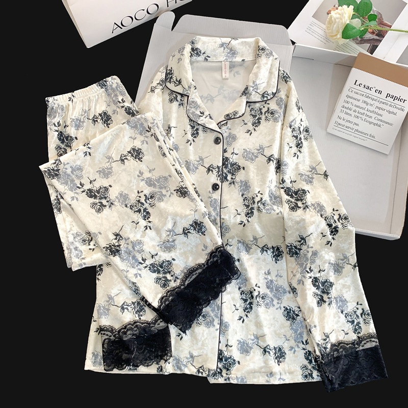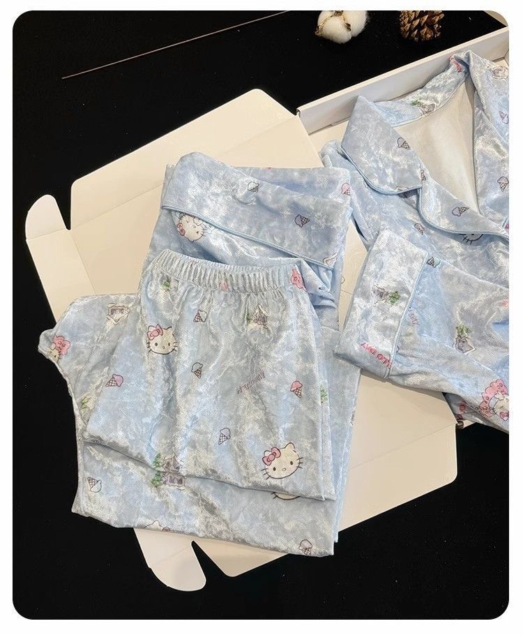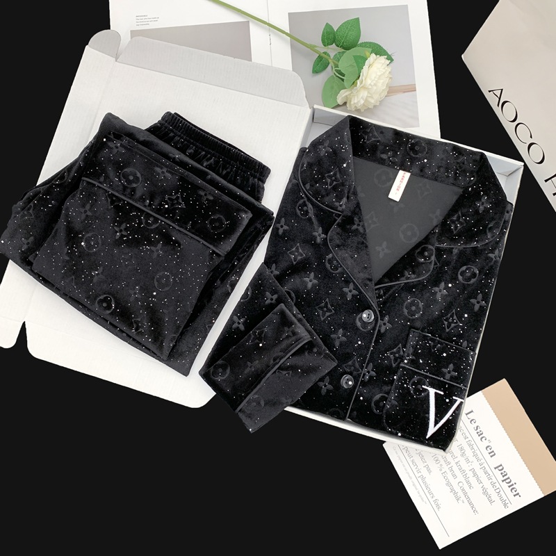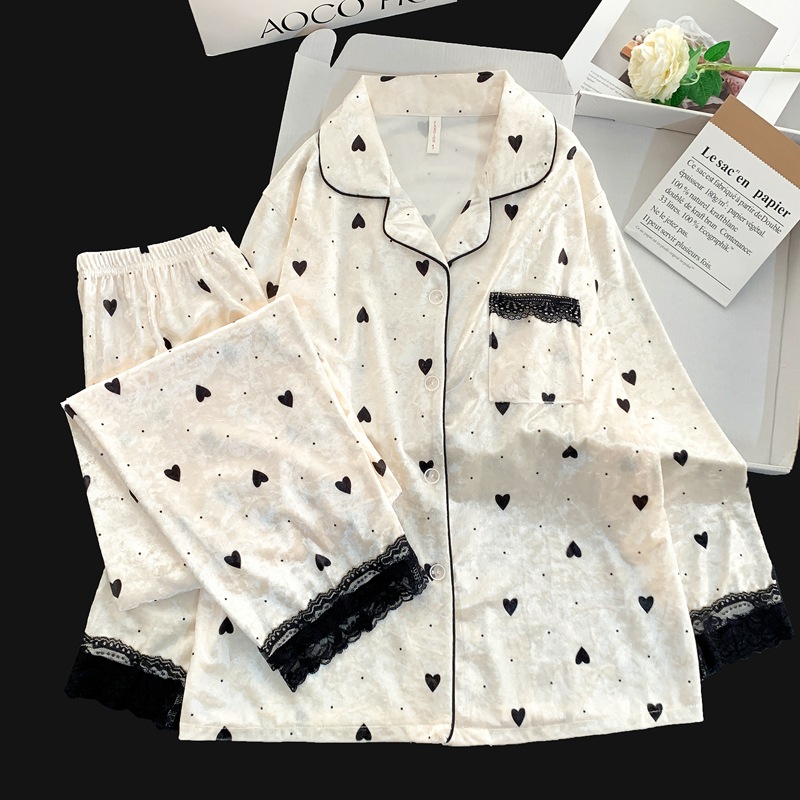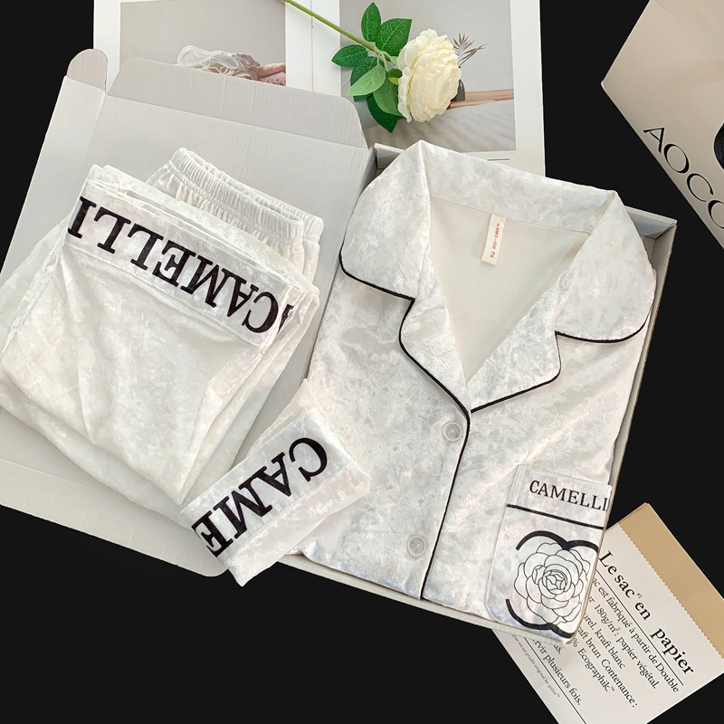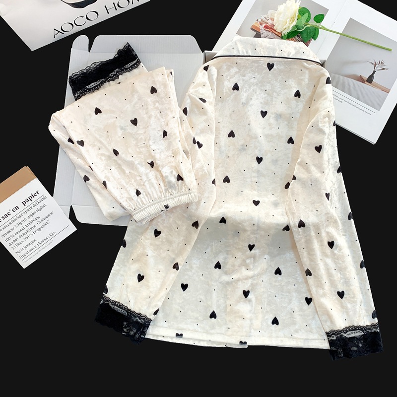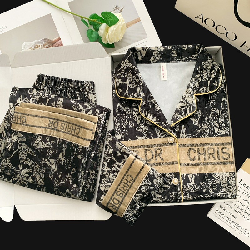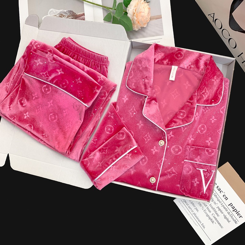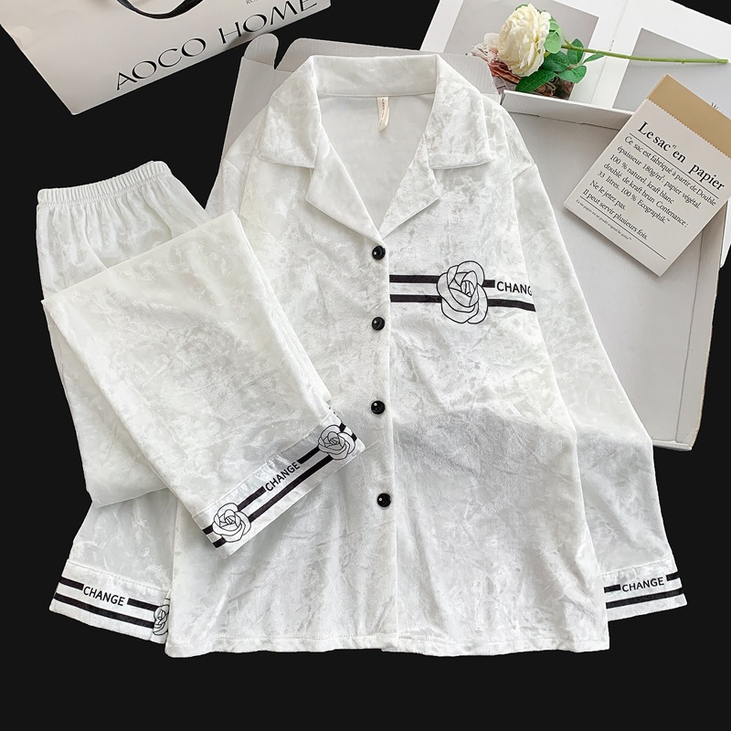 골든 벨벳 만화 곰 잠옷 여성의 새로운 도착 골드 다이아몬드 벨벳 긴팔 바지 홈 의류 잠옷 세트 겨울에 착용 가능