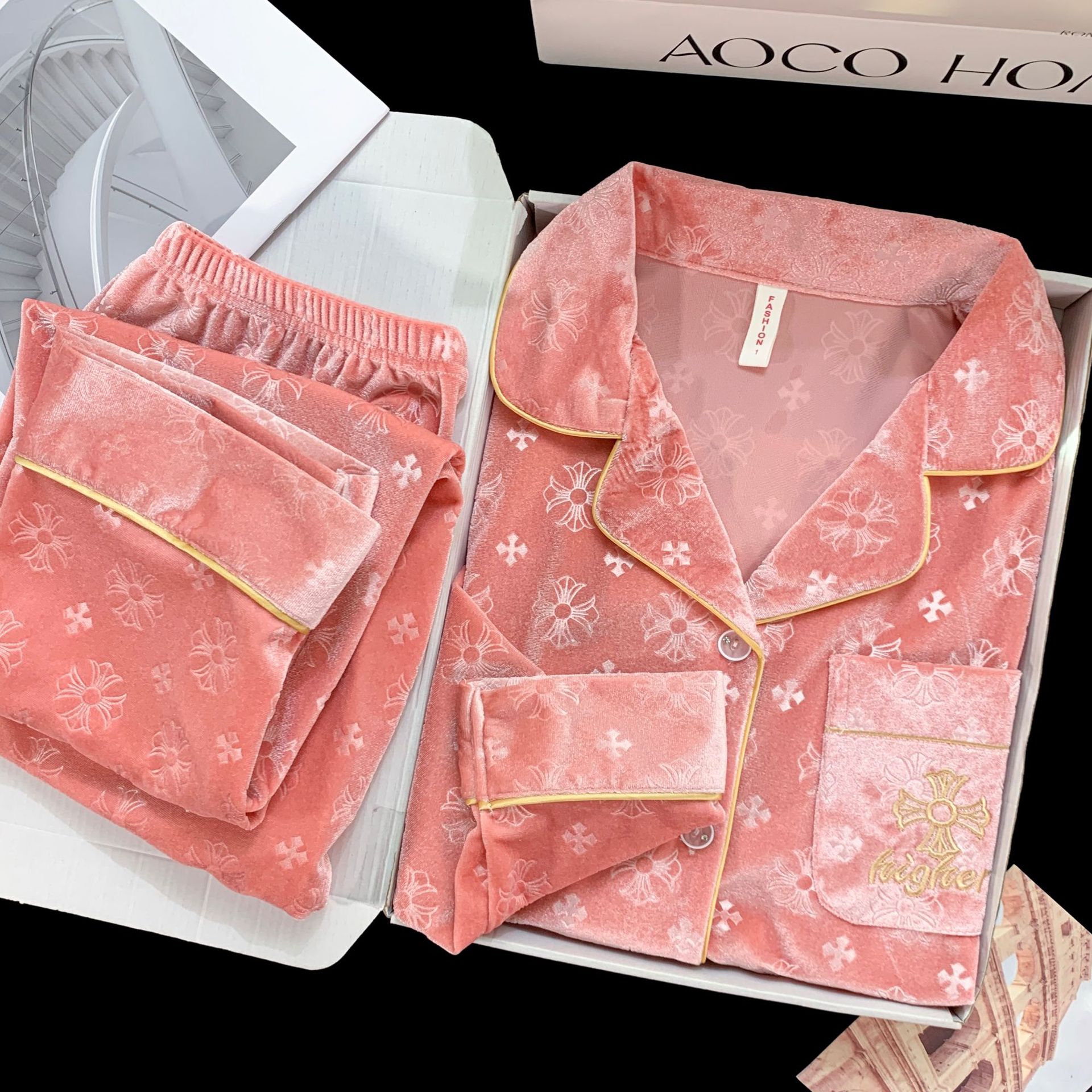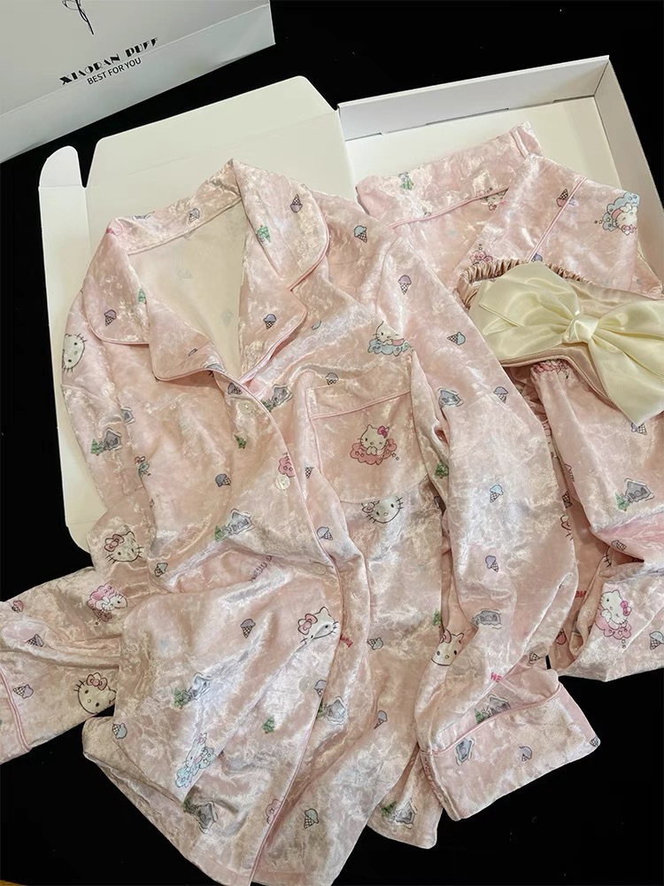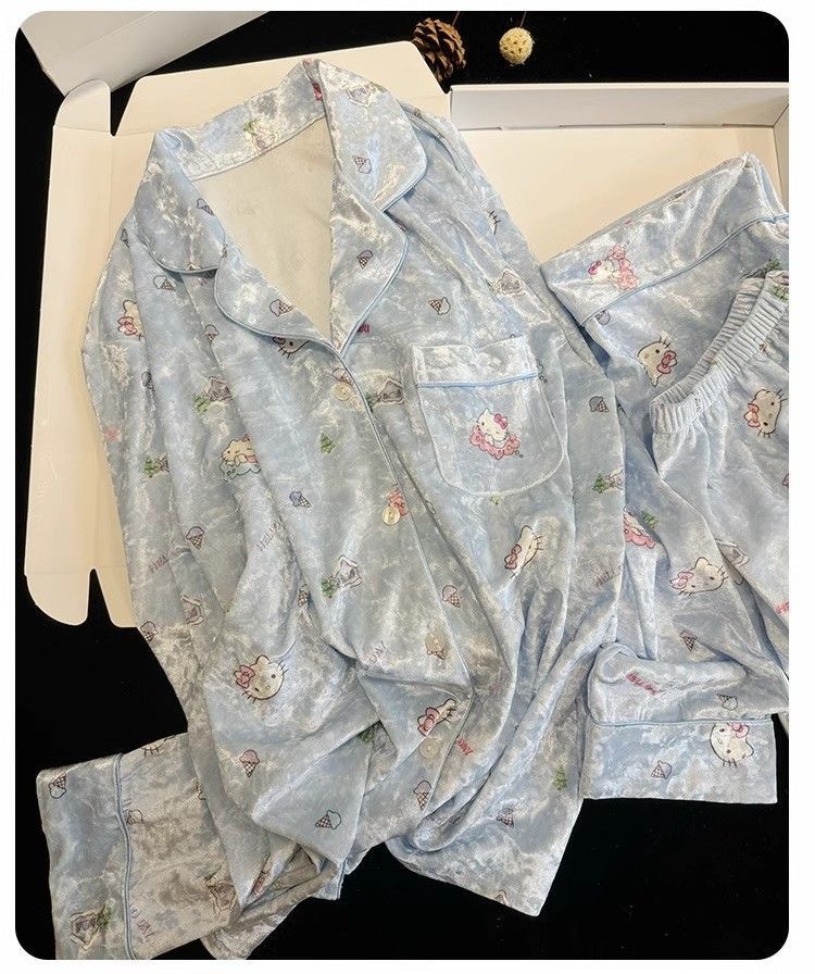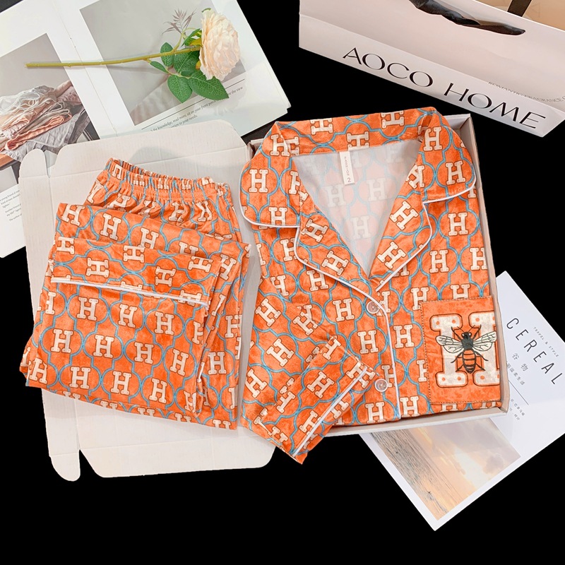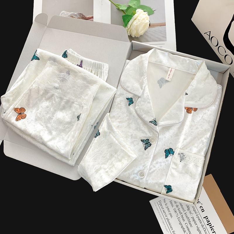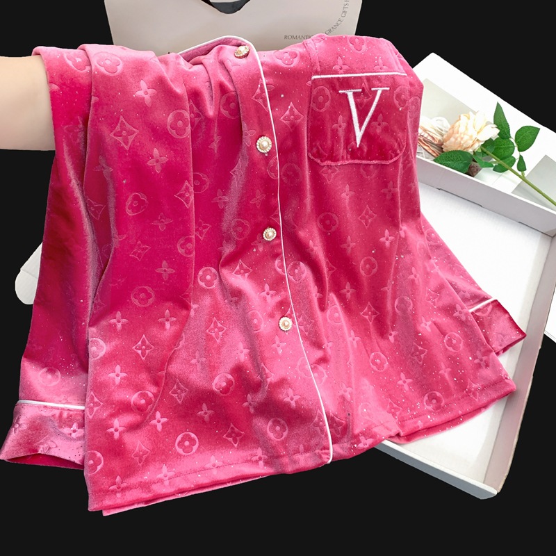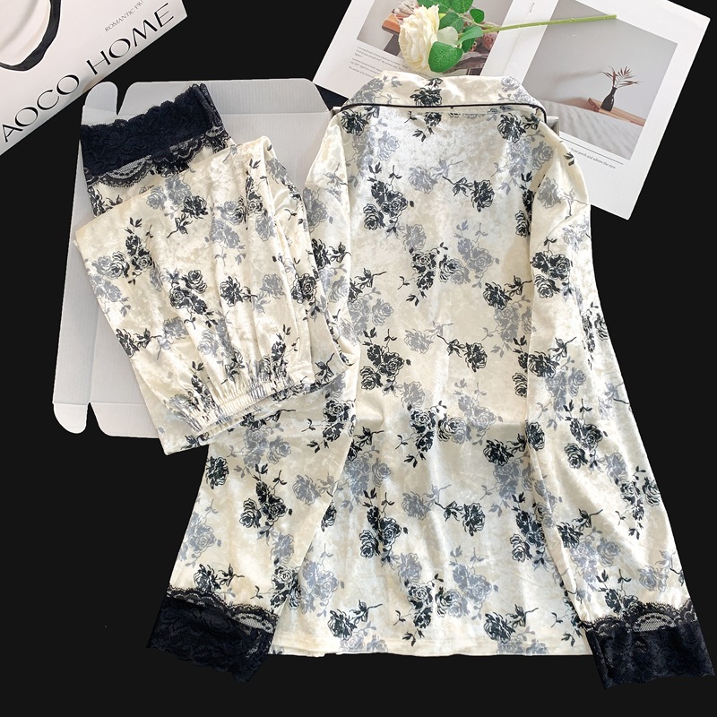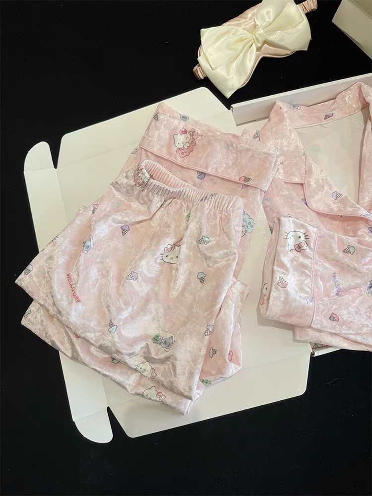 골든 벨벳 만화 곰 잠옷 여성의 새로운 도착 골드 다이아몬드 벨벳 긴팔 바지 홈 의류 잠옷 세트 겨울에 착용 가능