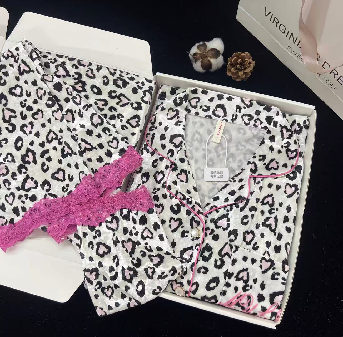 • 5075#고양이 핑크 레오파드 세트 - 여성용