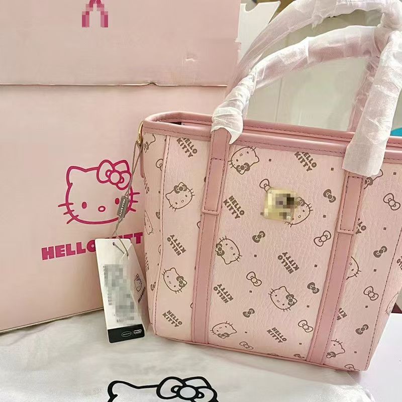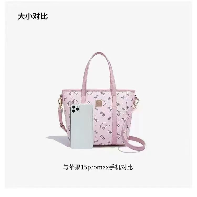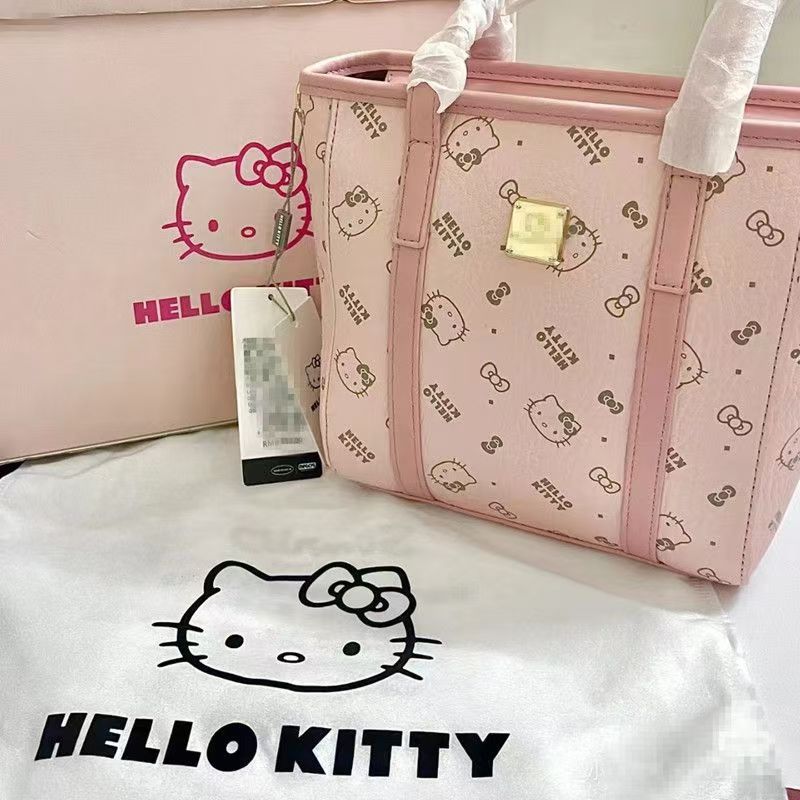 헬로 키티 헬로 키티 버킷 백 올 매치 클래식 프린트 텍스처 보스턴 가방 대용량 여성용 틈새 가방스토어 가기