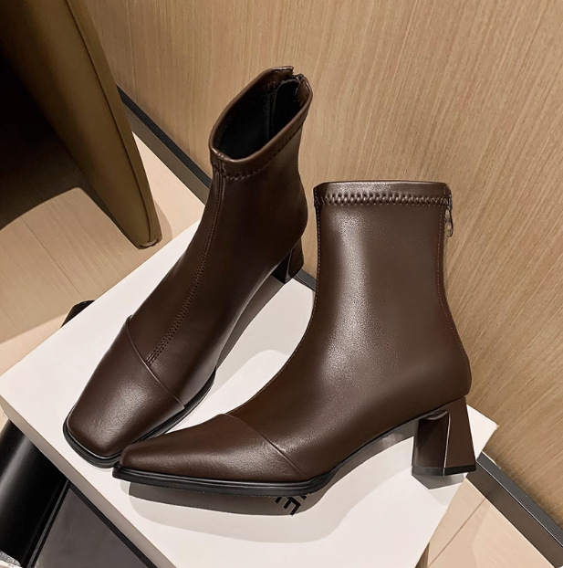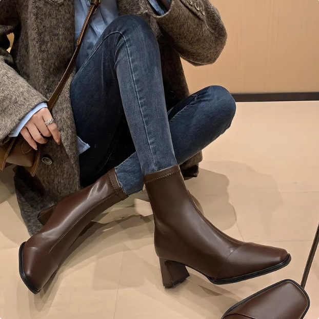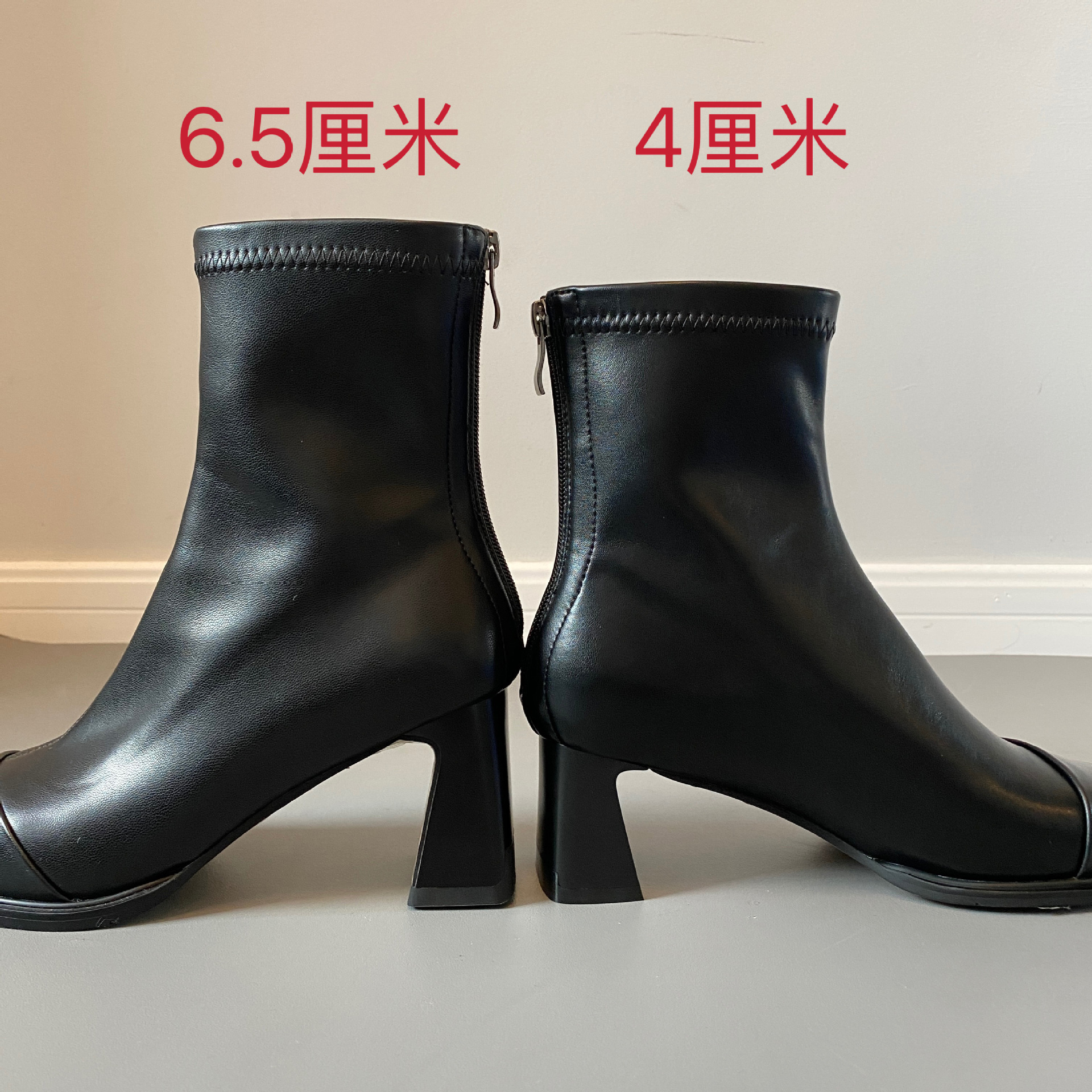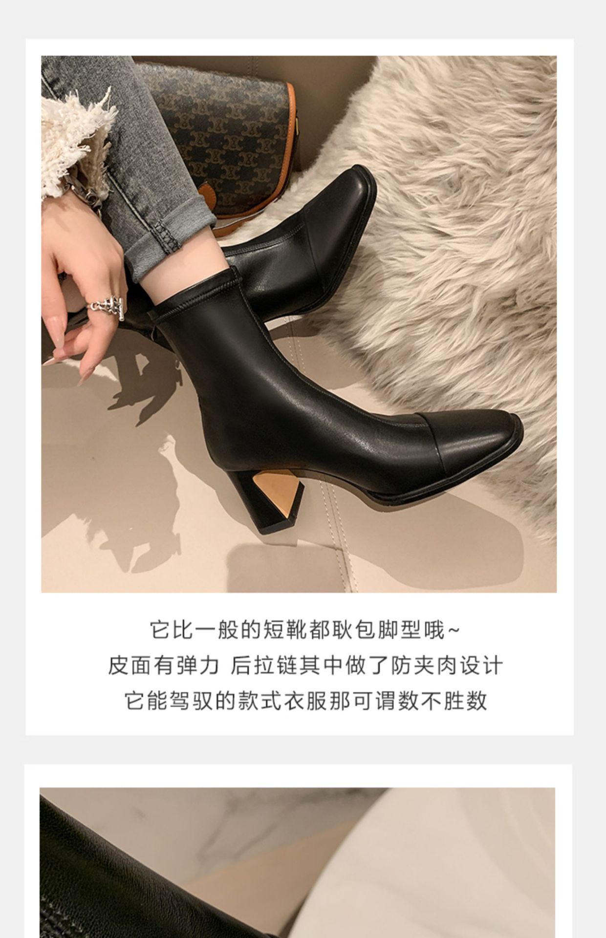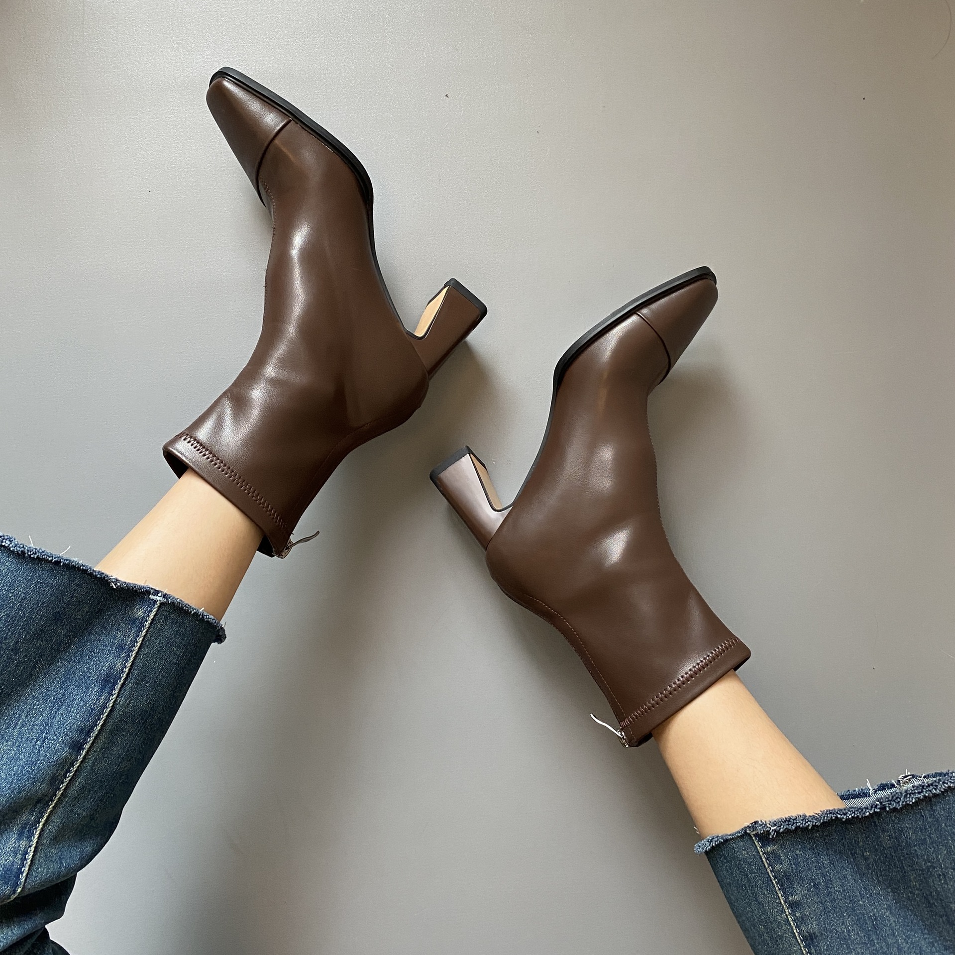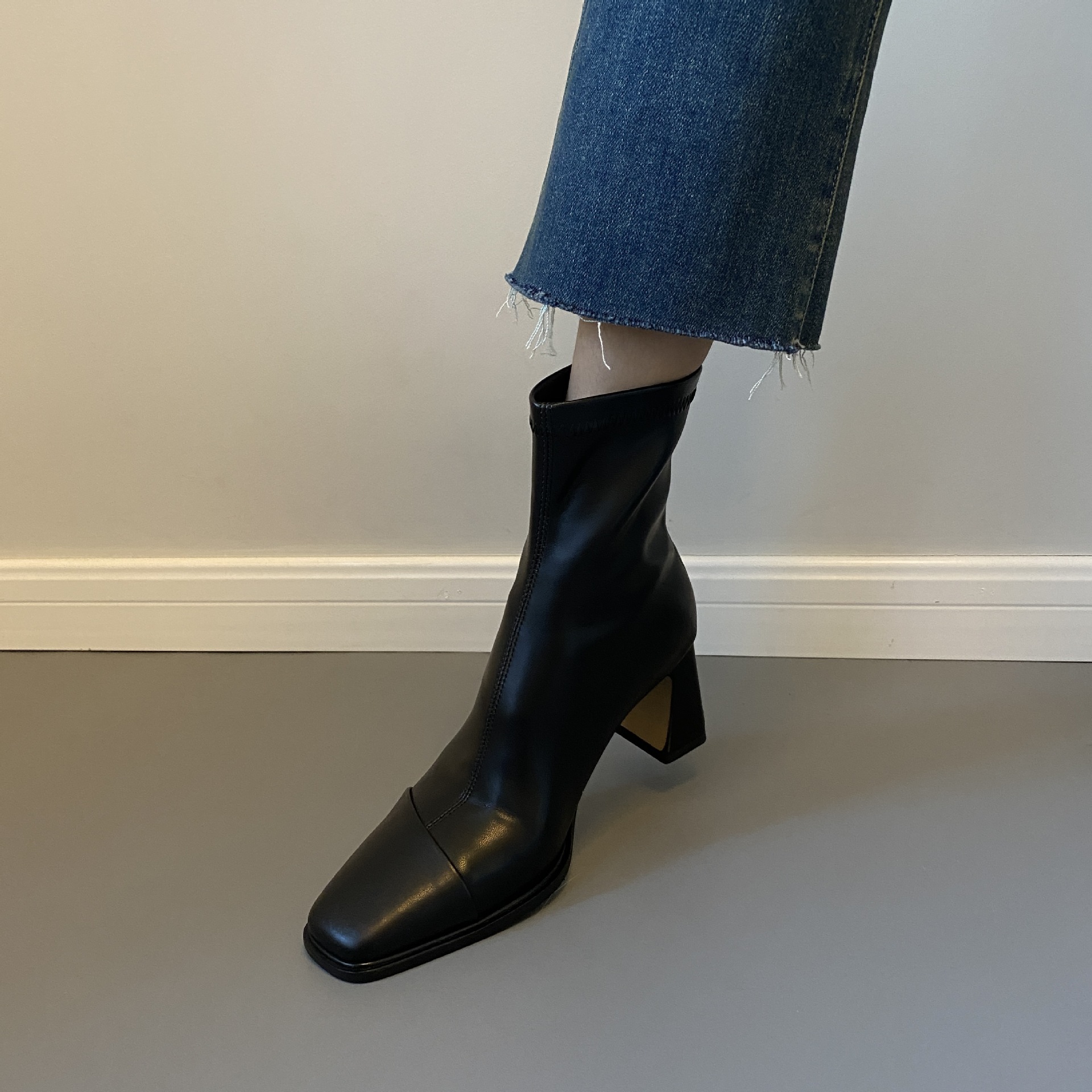 재고! Cowhide 프렌치 레트로 씬 부츠 여성용 마틴 부츠 가을 겨울 기모 하이힐 짧은 부츠 두꺼운 힐스토어 가기