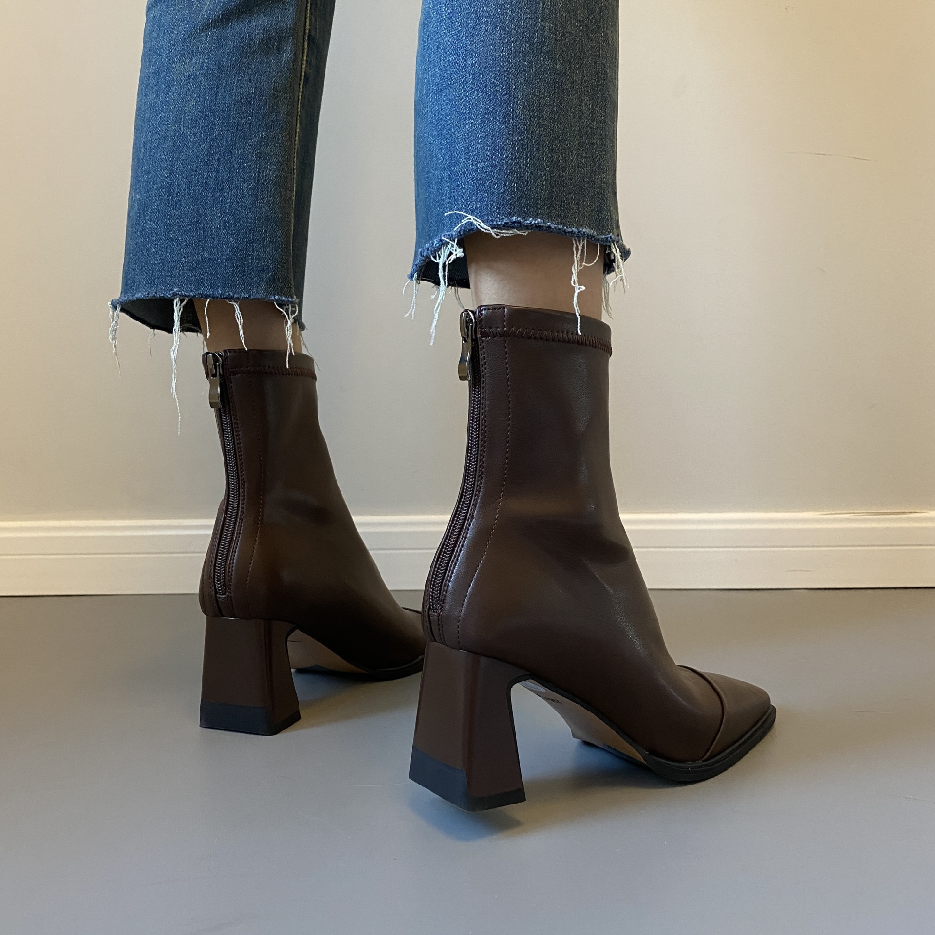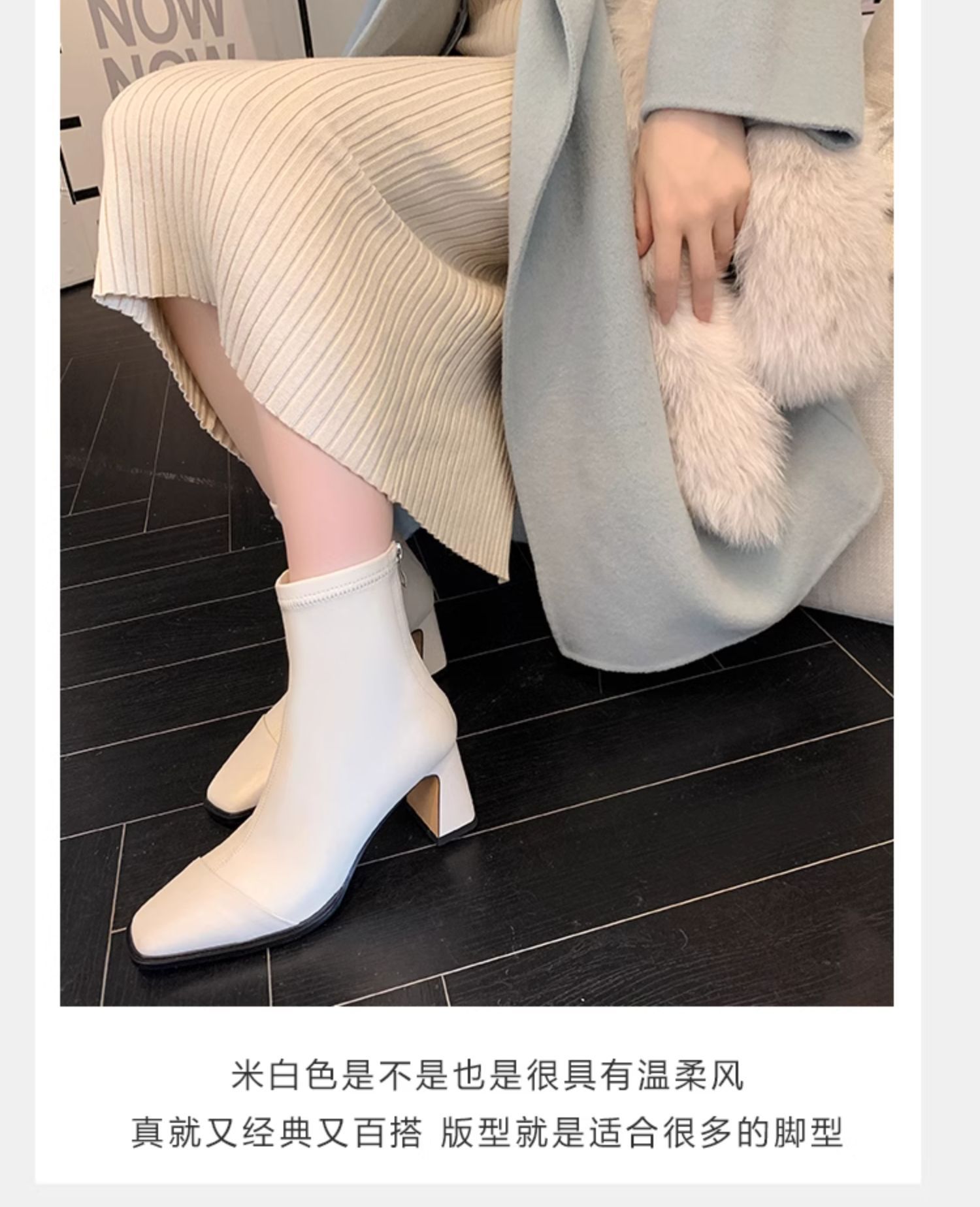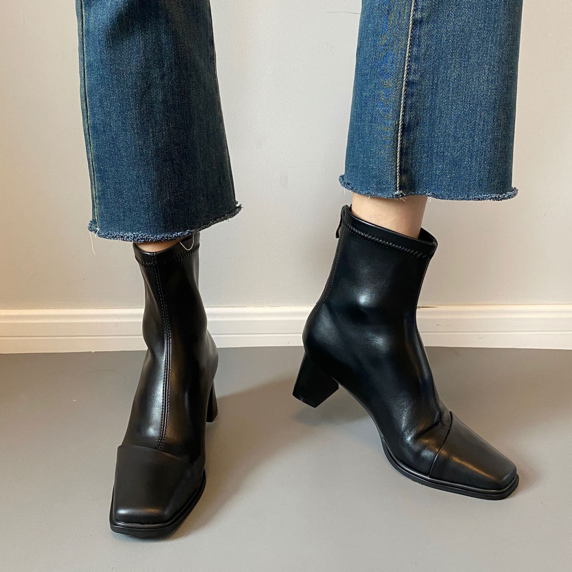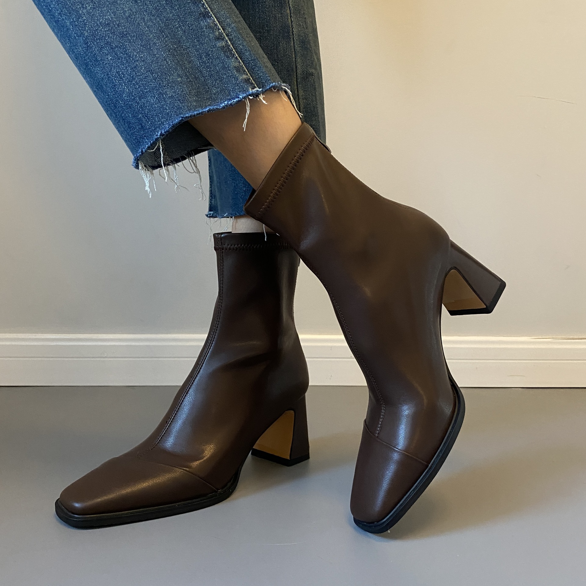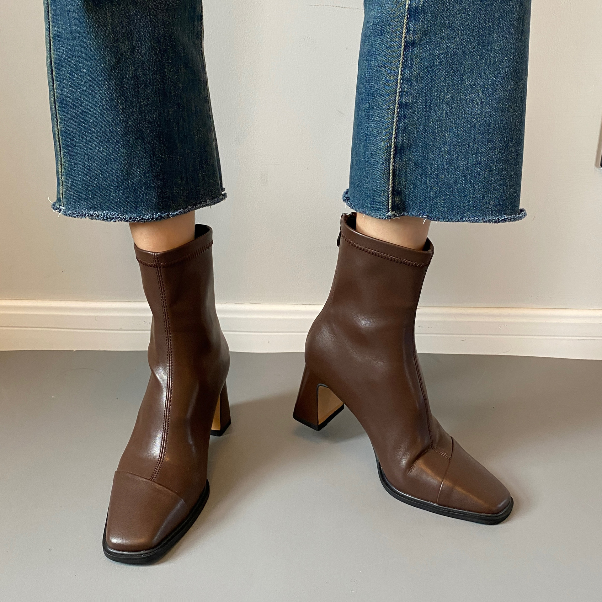 재고! Cowhide 프렌치 레트로 씬 부츠 여성용 마틴 부츠 가을 겨울 기모 하이힐 짧은 부츠 두꺼운 힐스토어 가기
